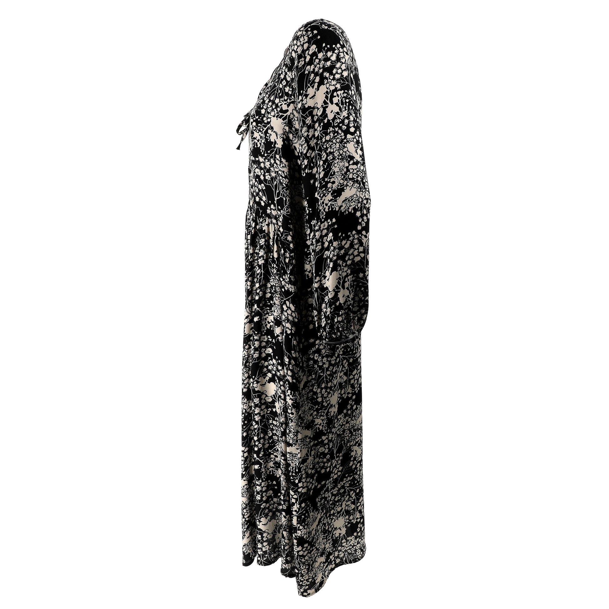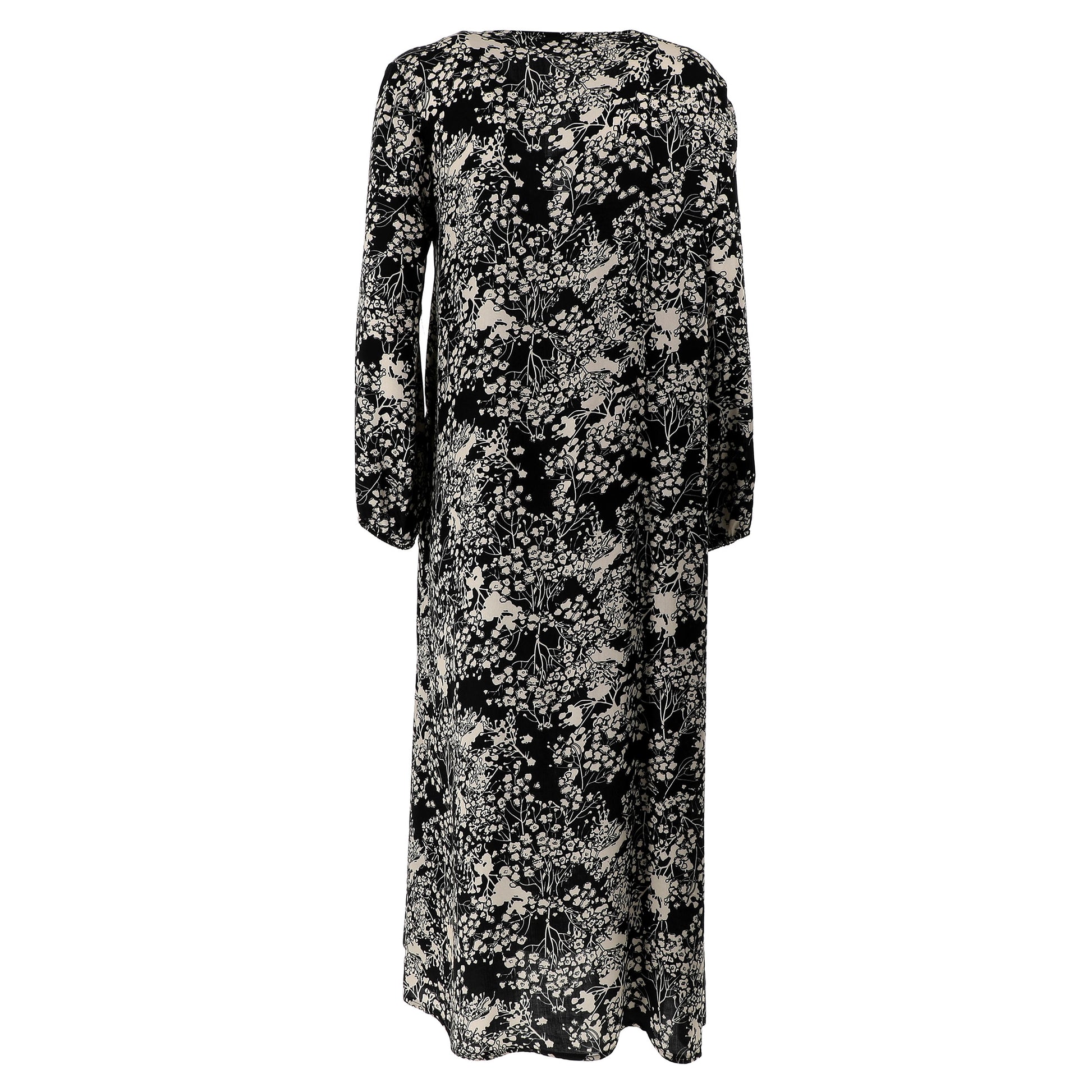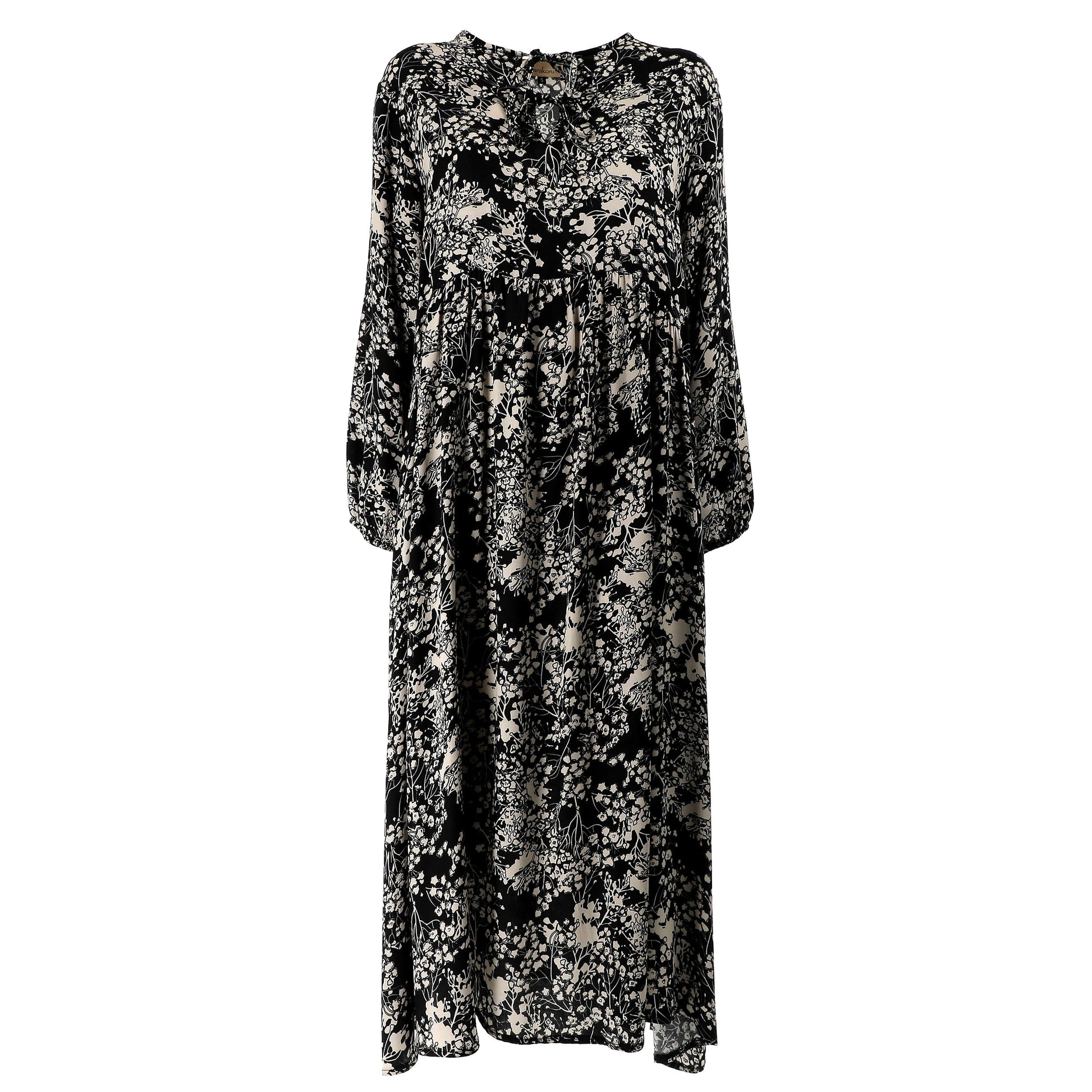 Vestito lungo in viscosa stampata con maniche lunghe leggermente a sbuffo ed elastisco finale sul polso.