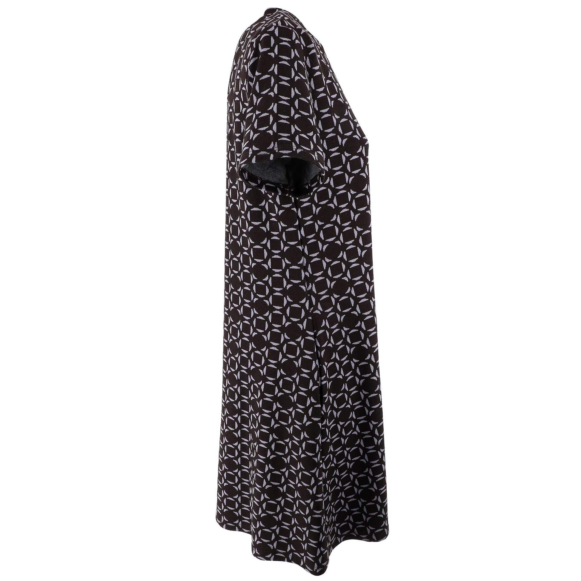 Vestito corto in morbido tessuto jacquard, con maniche corte.