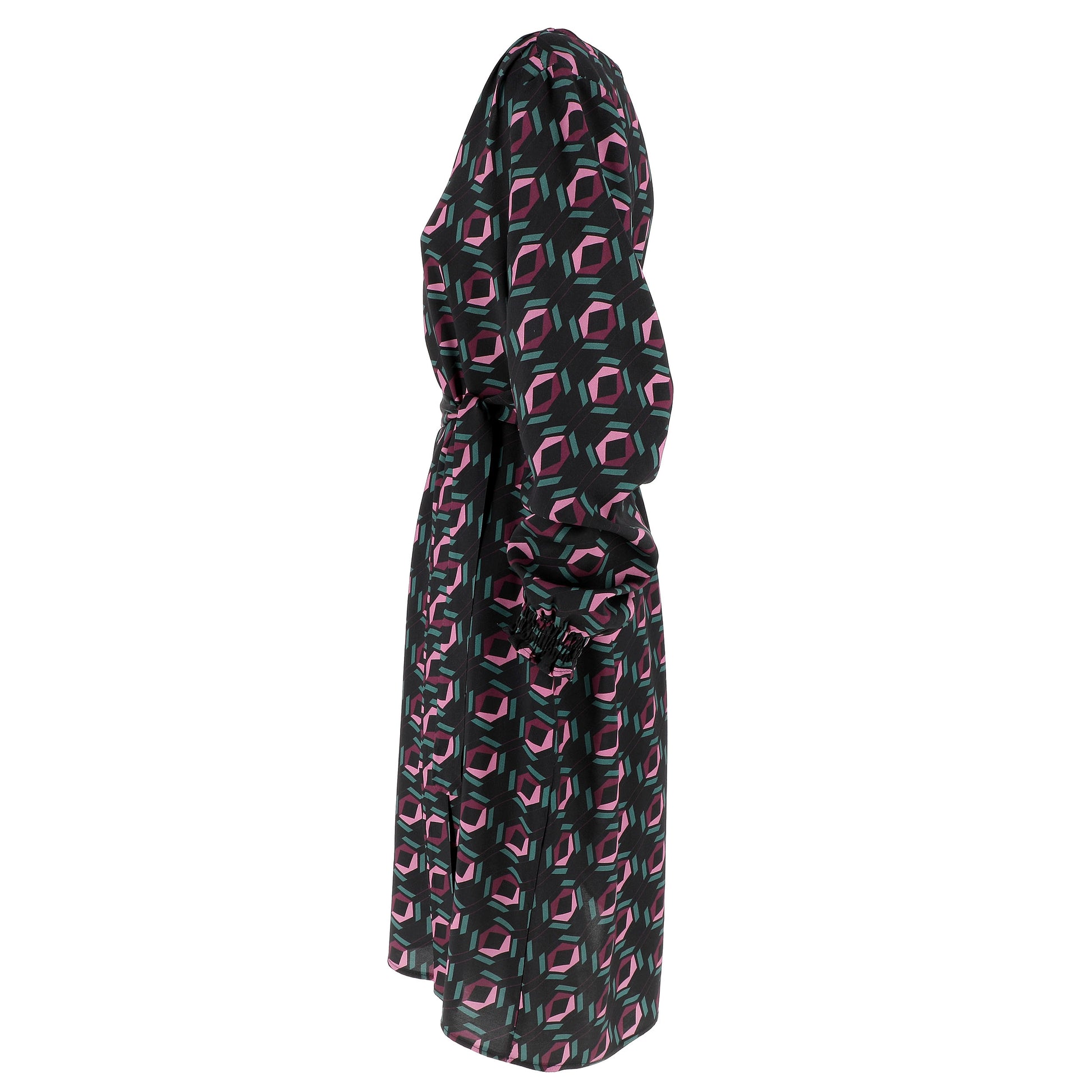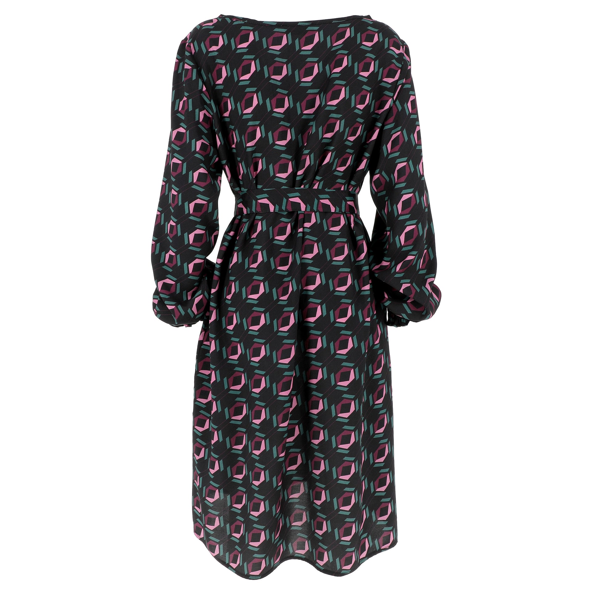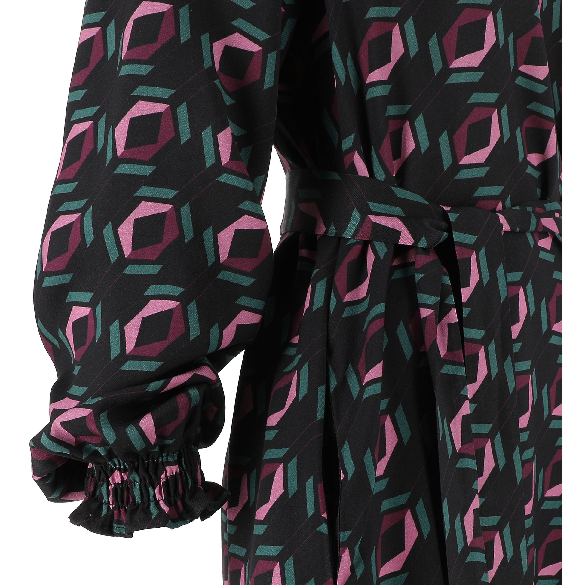 Maniche lunghe leggermente a sbuffo e polsino arricciato. Scollo a V e piccole pences su entrambe le spalle.