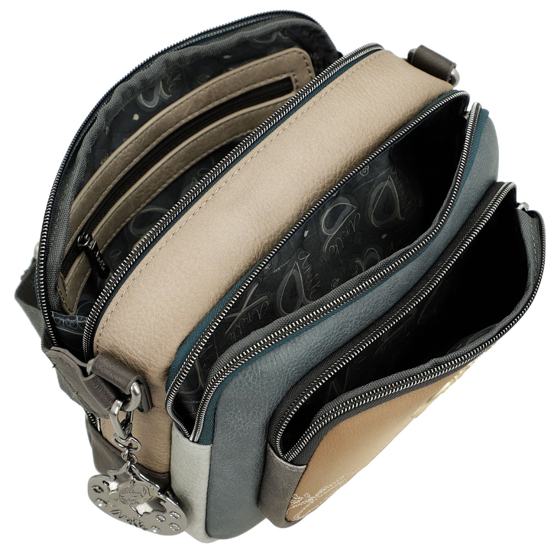 Tasche: 2 scomparti, 1 tasca posteriore, 1 tasca per cellulare e 1 tasca color crema.