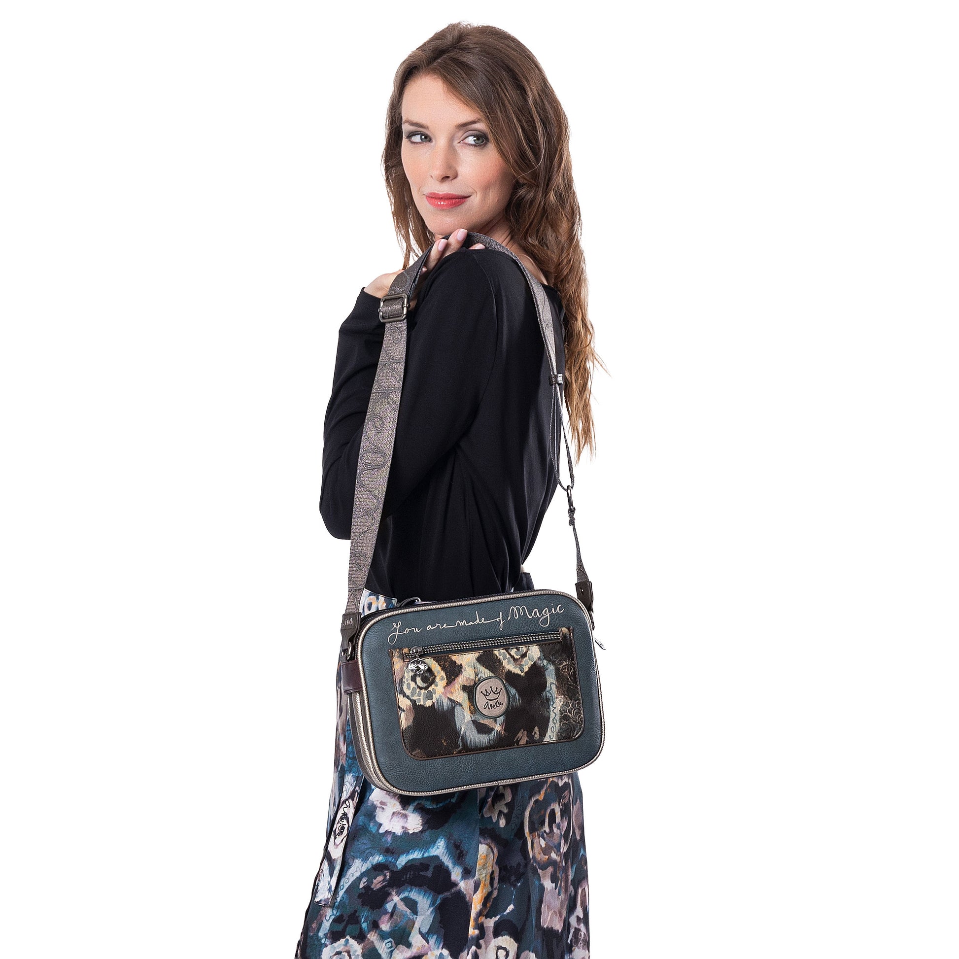Tasche: 3 scomparti, 1 tasca posteriore, 1 tasca per cellulare e 1 portafoglio.