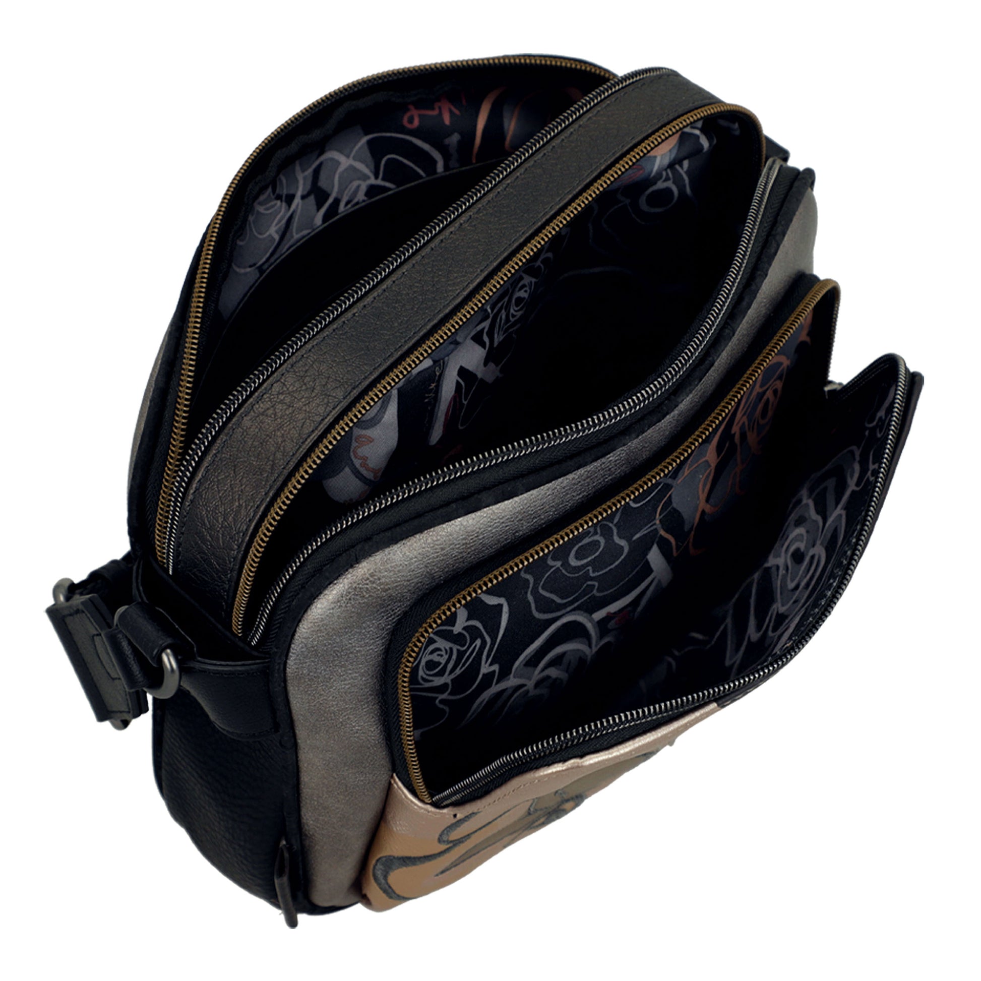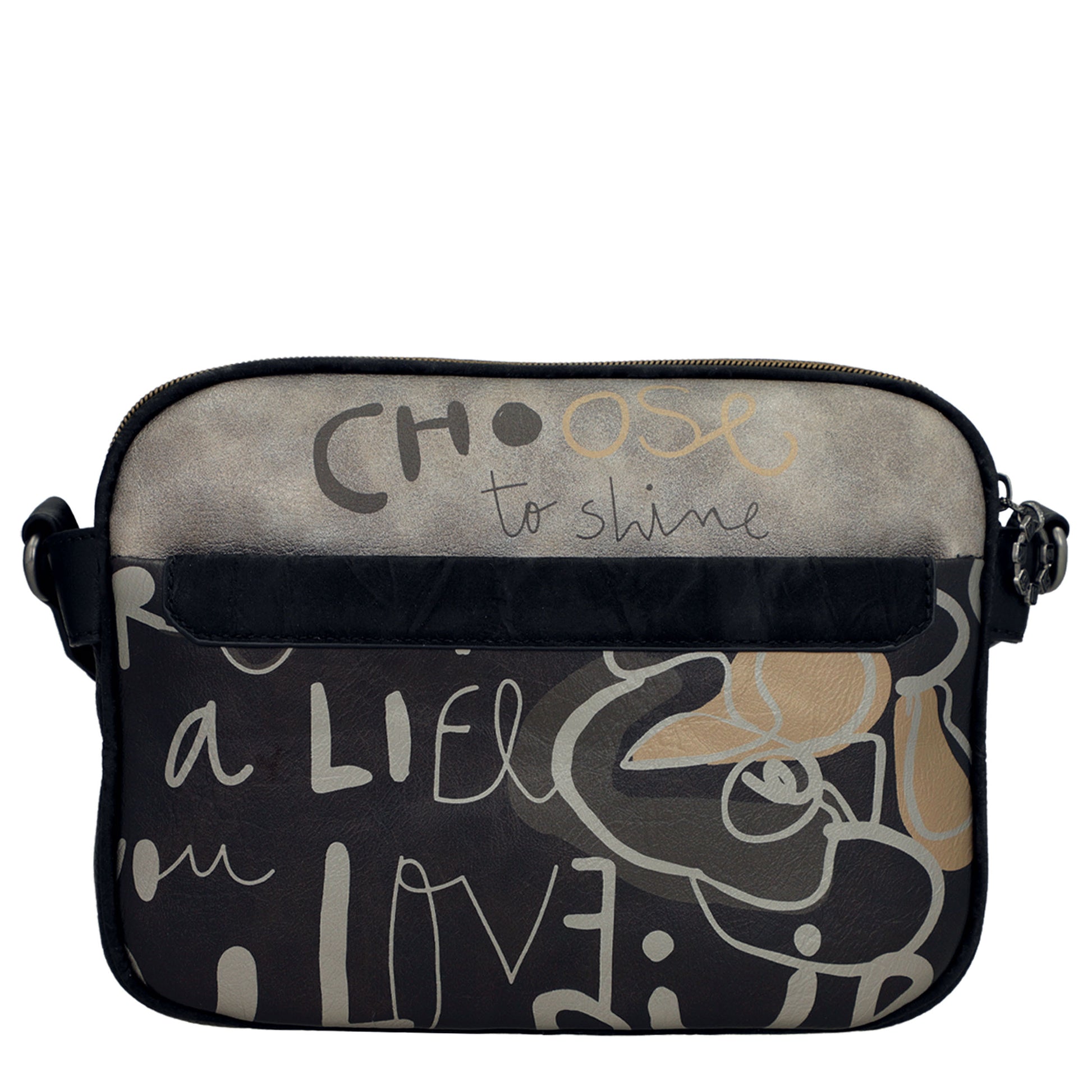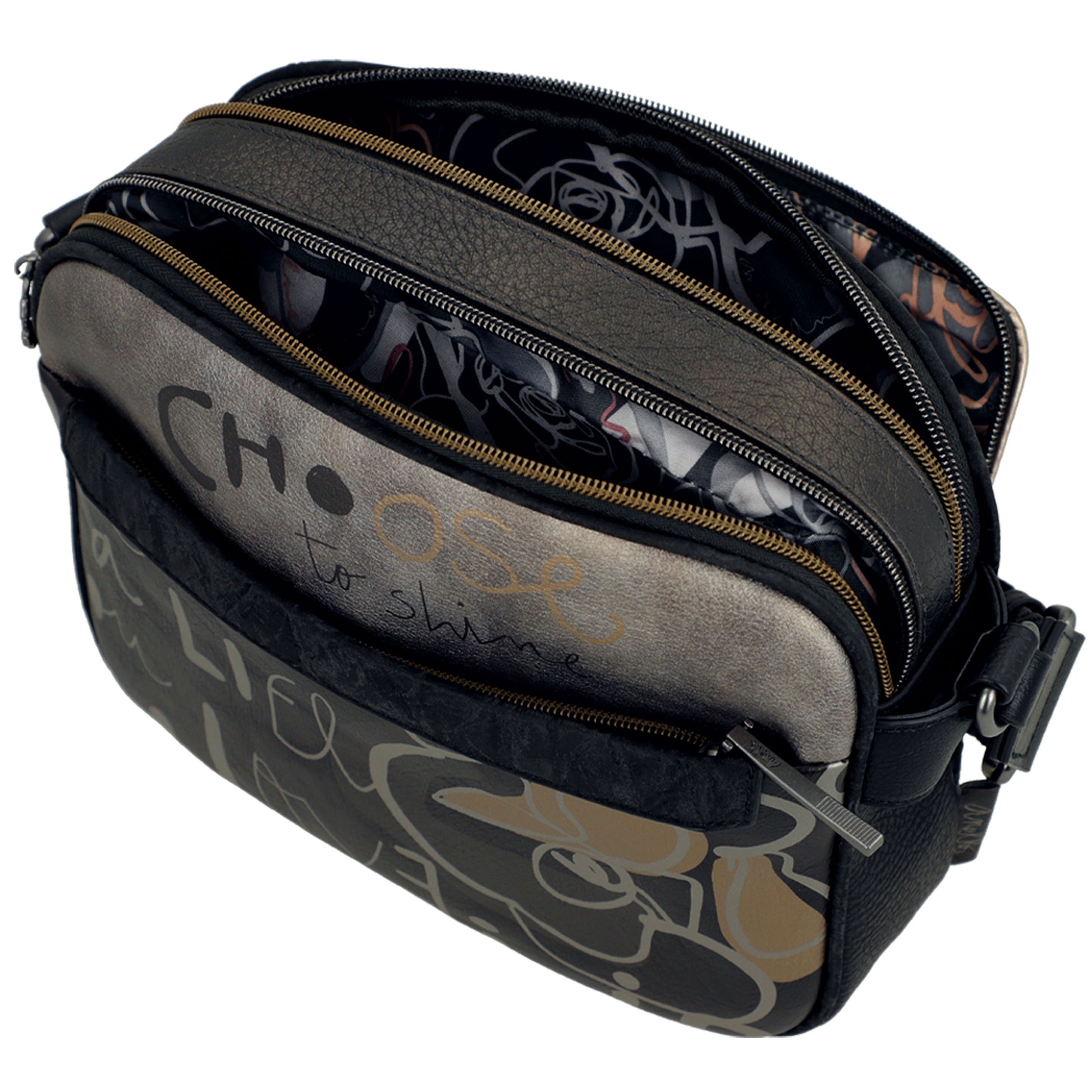Tasche: 3 scomparti, 1 tasca posteriore, 1 tasca per cellulare e 1 portafoglio.