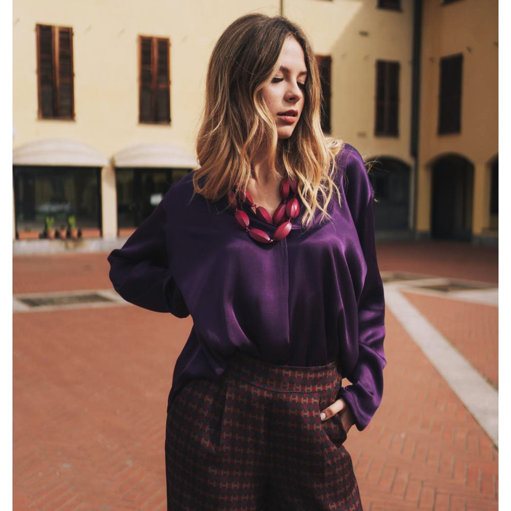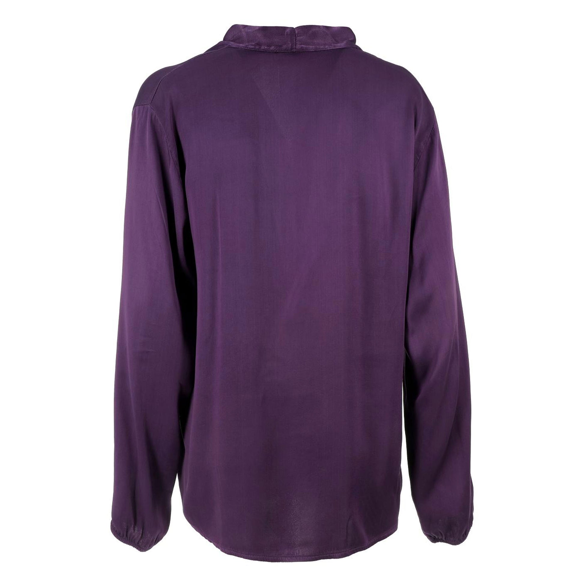 Blusa in raso di viscosa con maniche lunghe, elastico al polso e scollo a V.