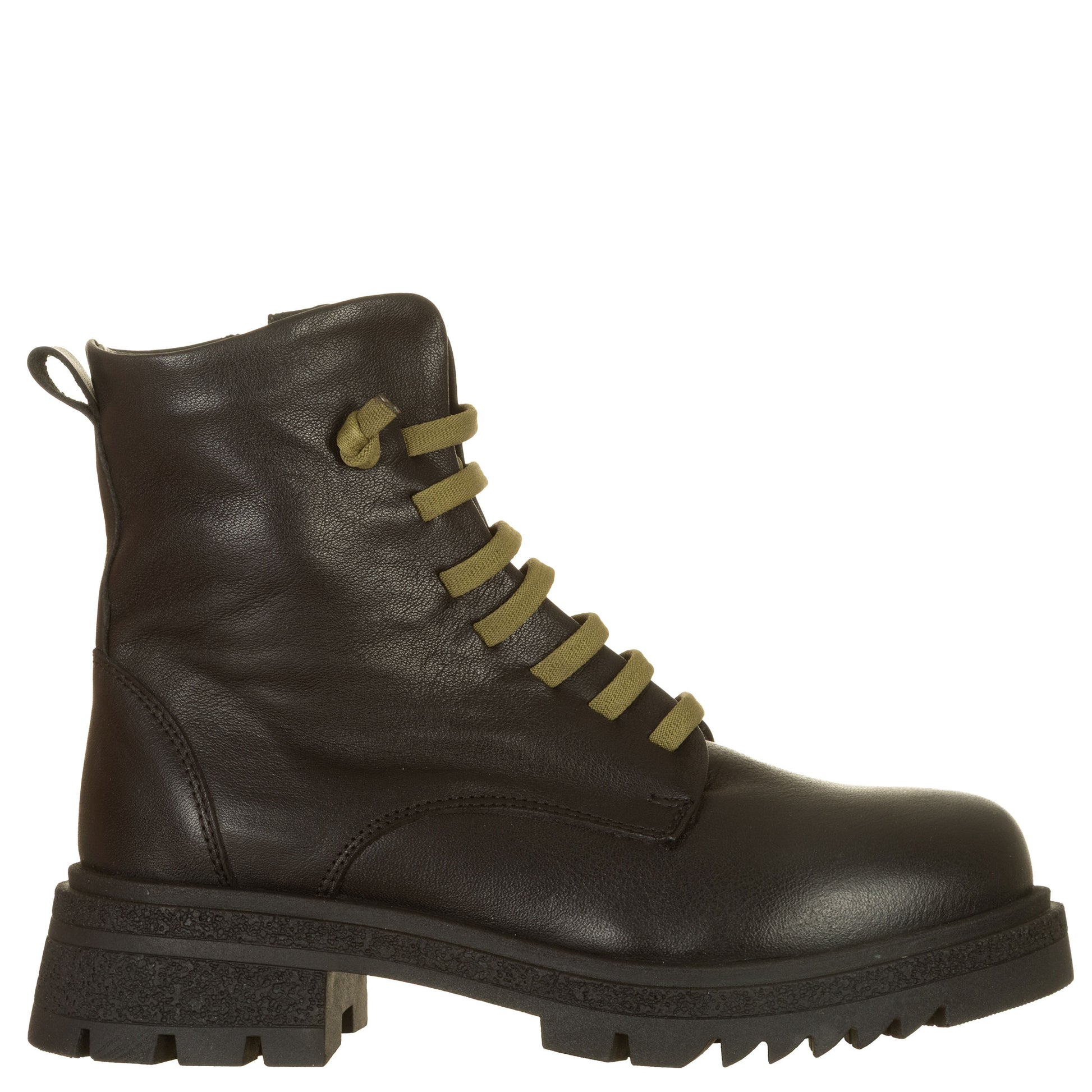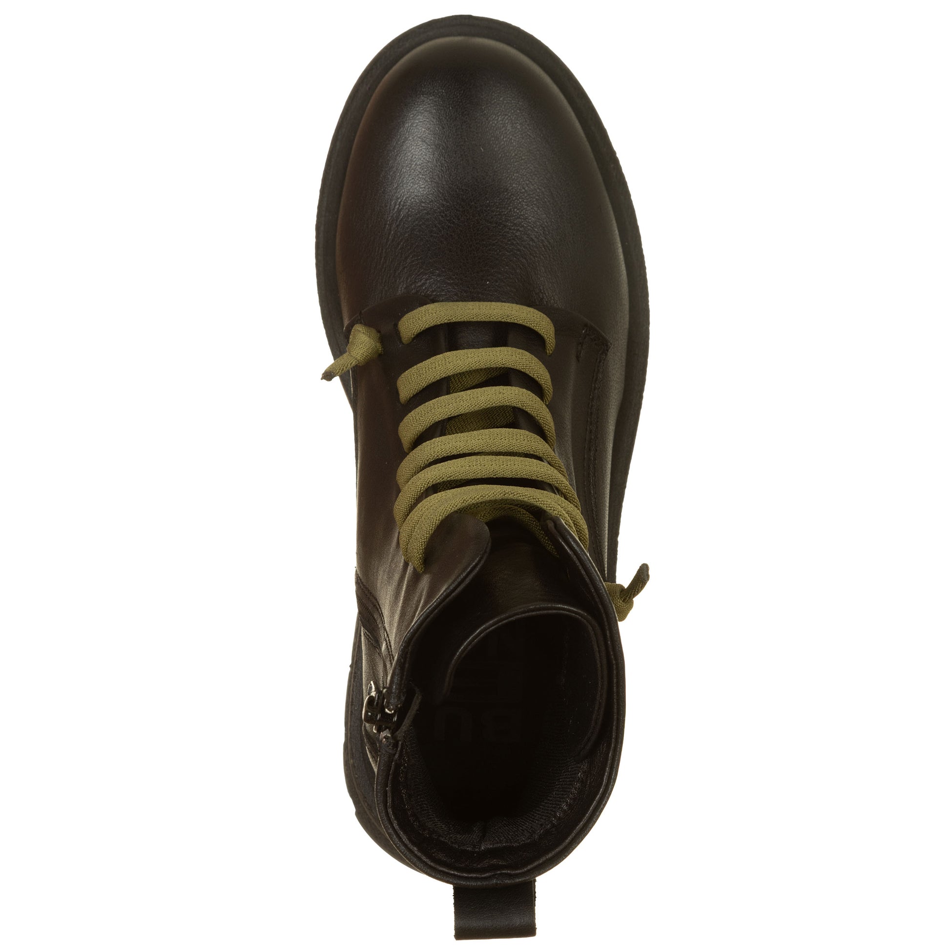 Anfibi Bueno, con lacci elastici verdi, zip laterale