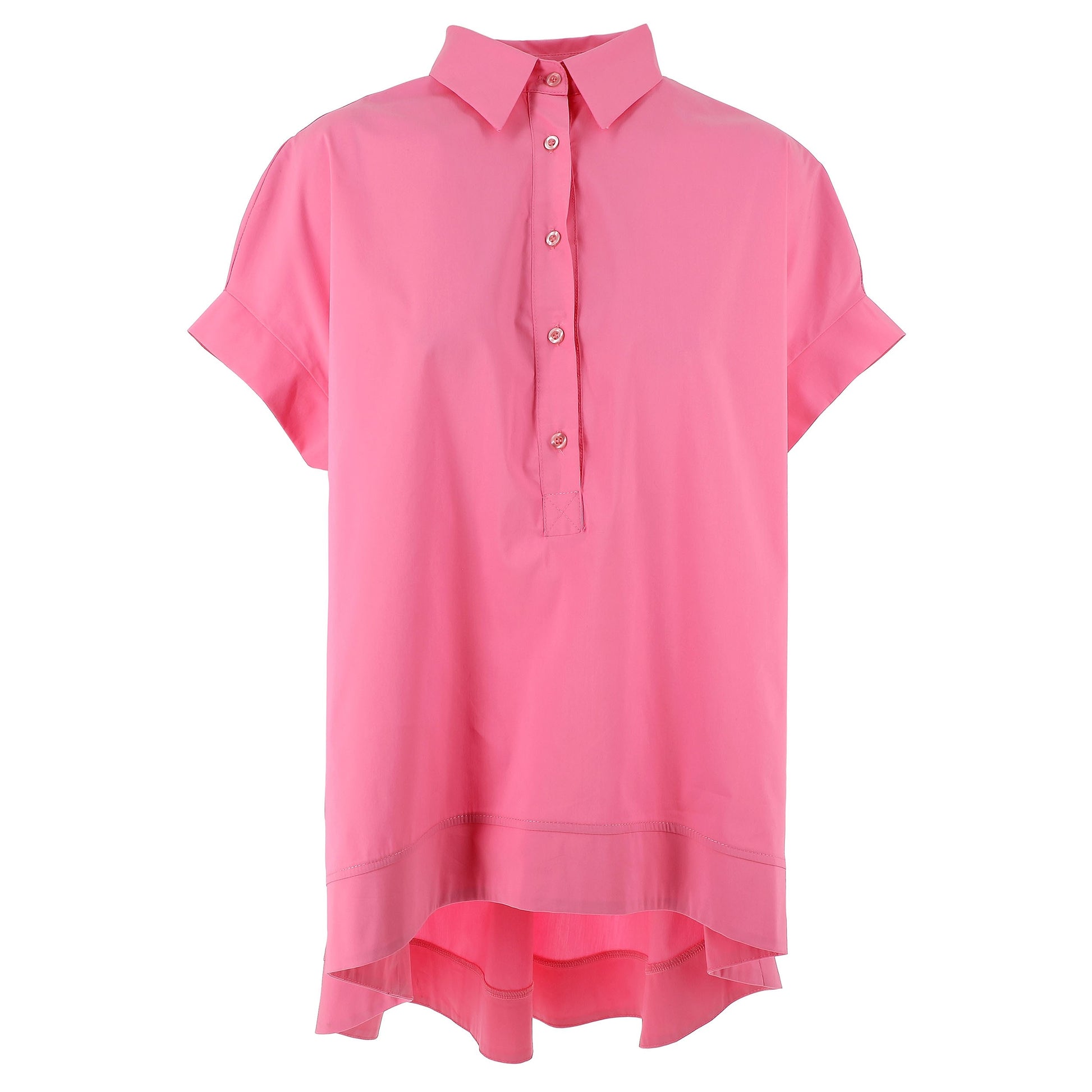 Camicia Karakorum Amanda Rosa. Camicia in popeline di cotone con maniche corte e ampie. Classico colletto a punta con cinque bottoni. Carre posteriore con pieghe. Composizione: 71% cotone 25% poliammide 4% elastan. Provenienza: Italia. Lavaggio: lavare a 30°. Lunghezza davanti: cm 70 circa. Lunghezza dietro: cm 88 circa