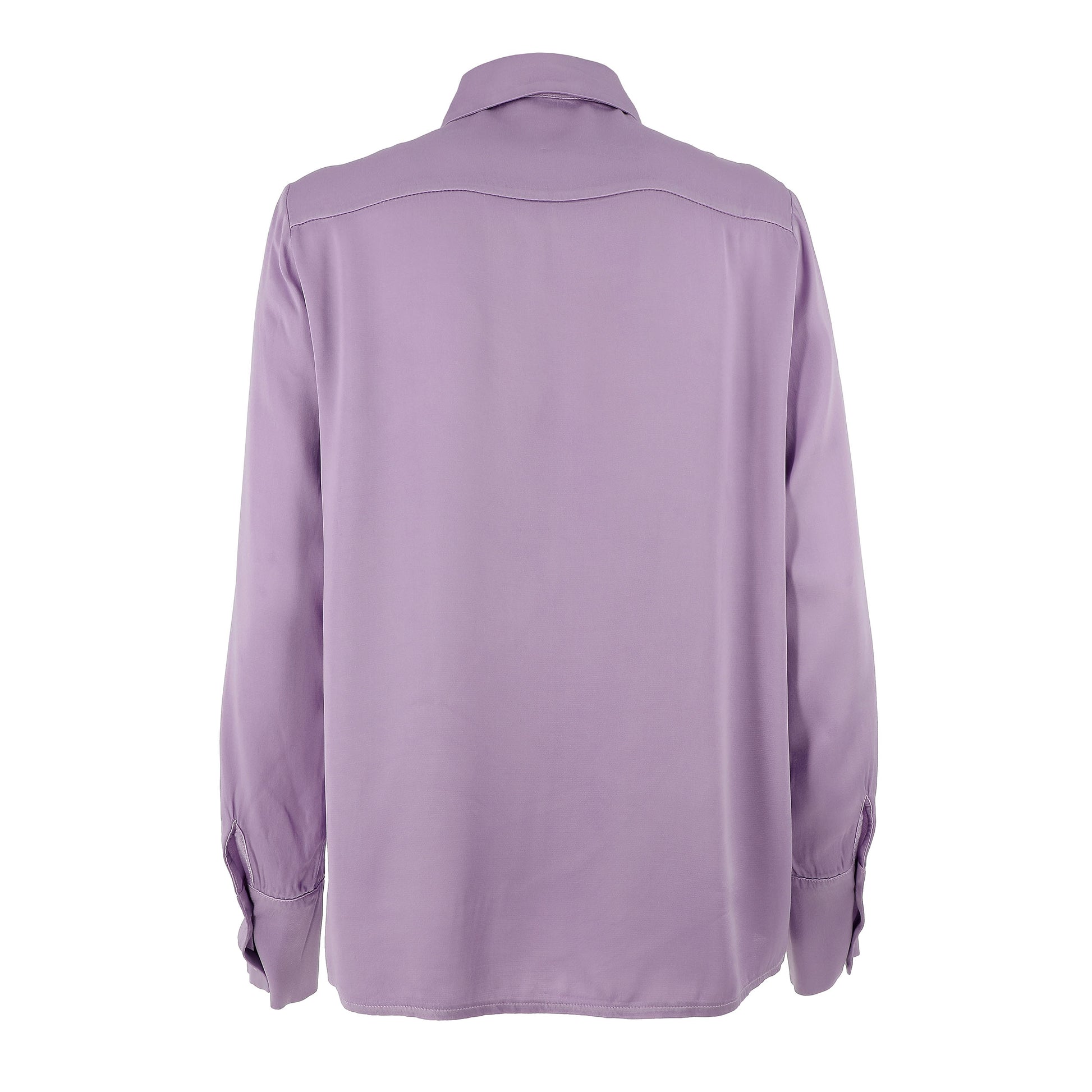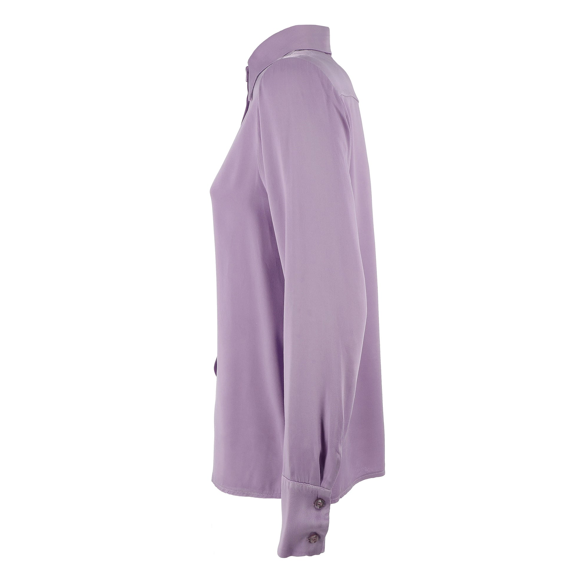 Camicia in raso di viscosa con colletto a punta e chiusura davanti con bottoni. Carré con piega e cannoncino dietro. Maniche lunghe con polsino e bottoni sul fondo. Linea dritta e piccoli spacchi ai lati.