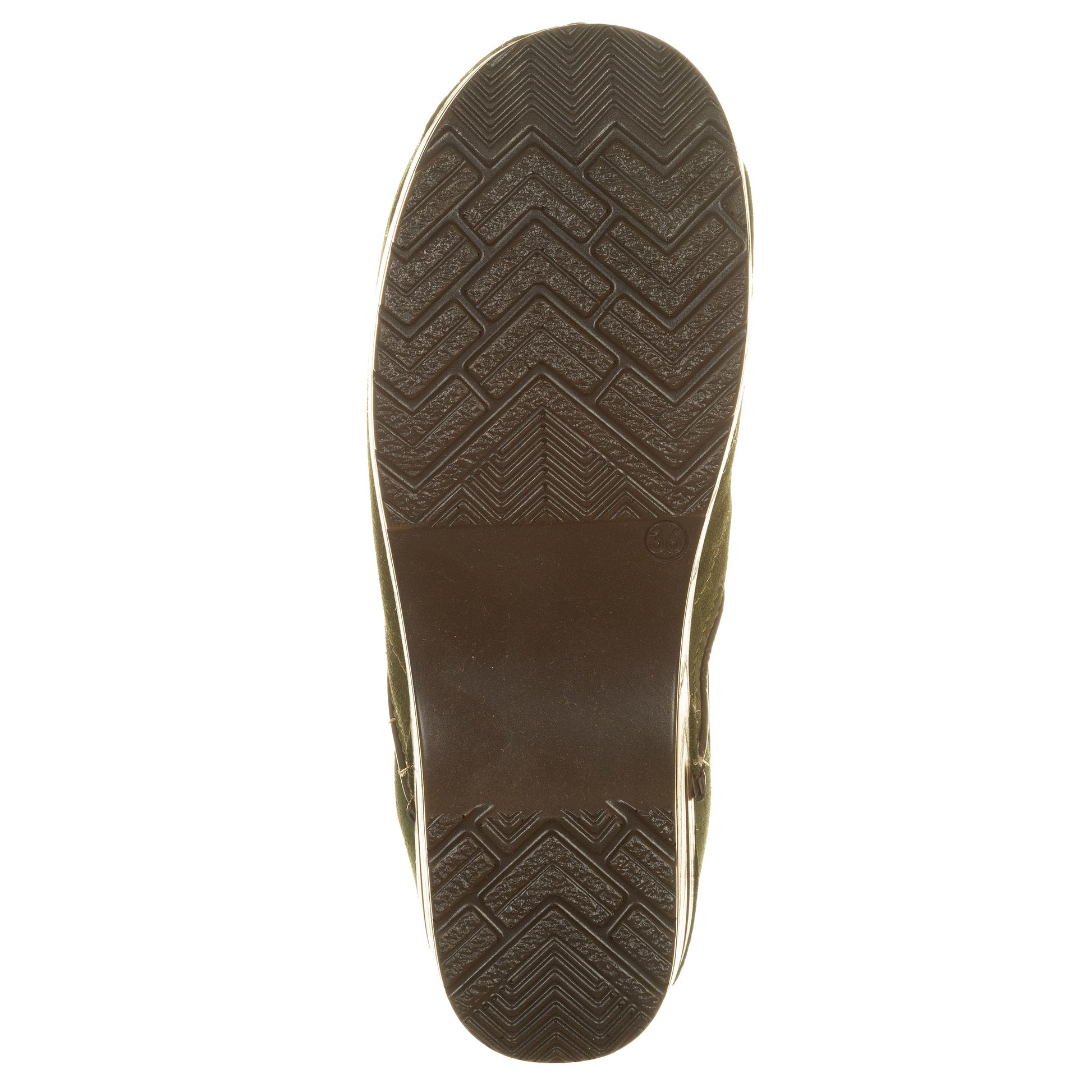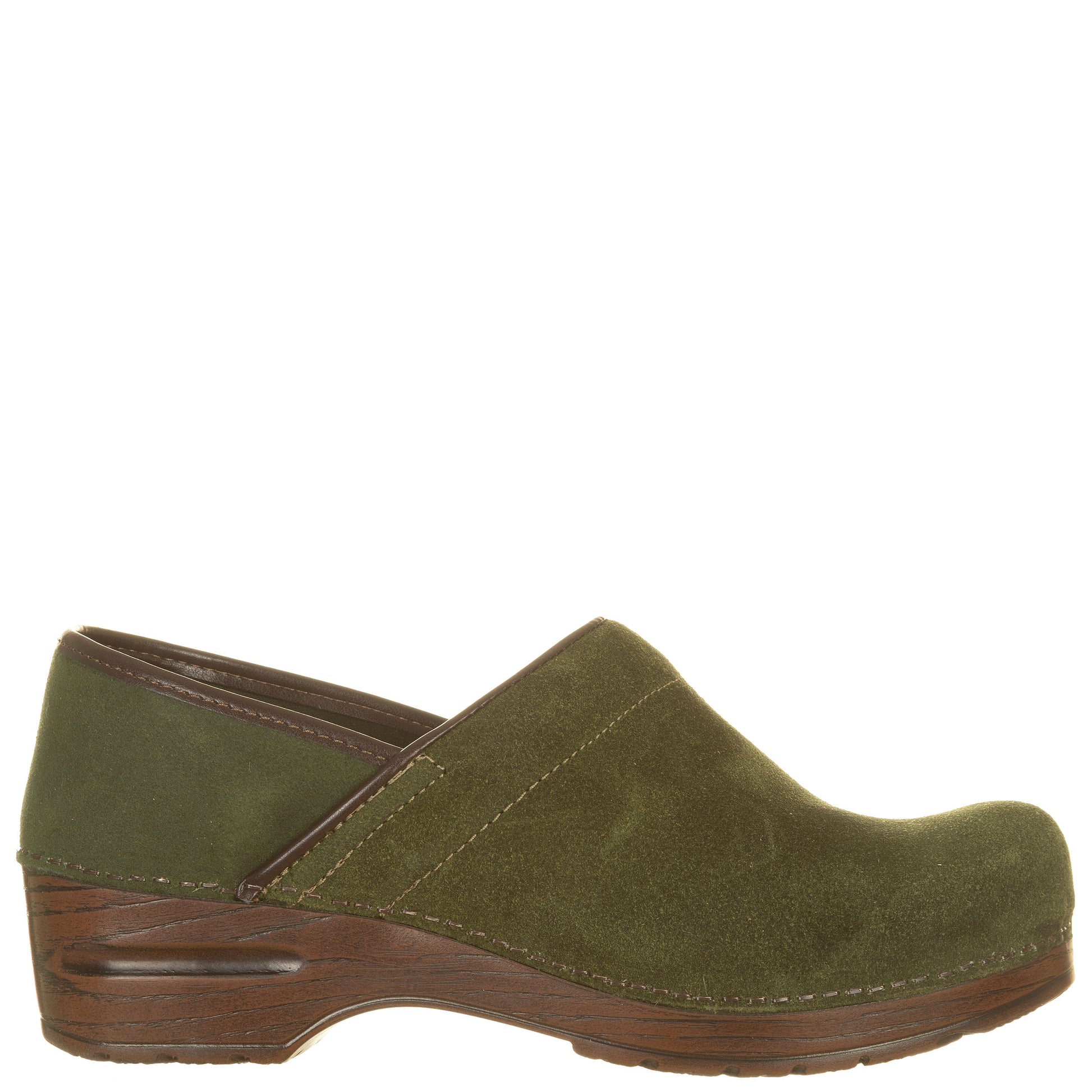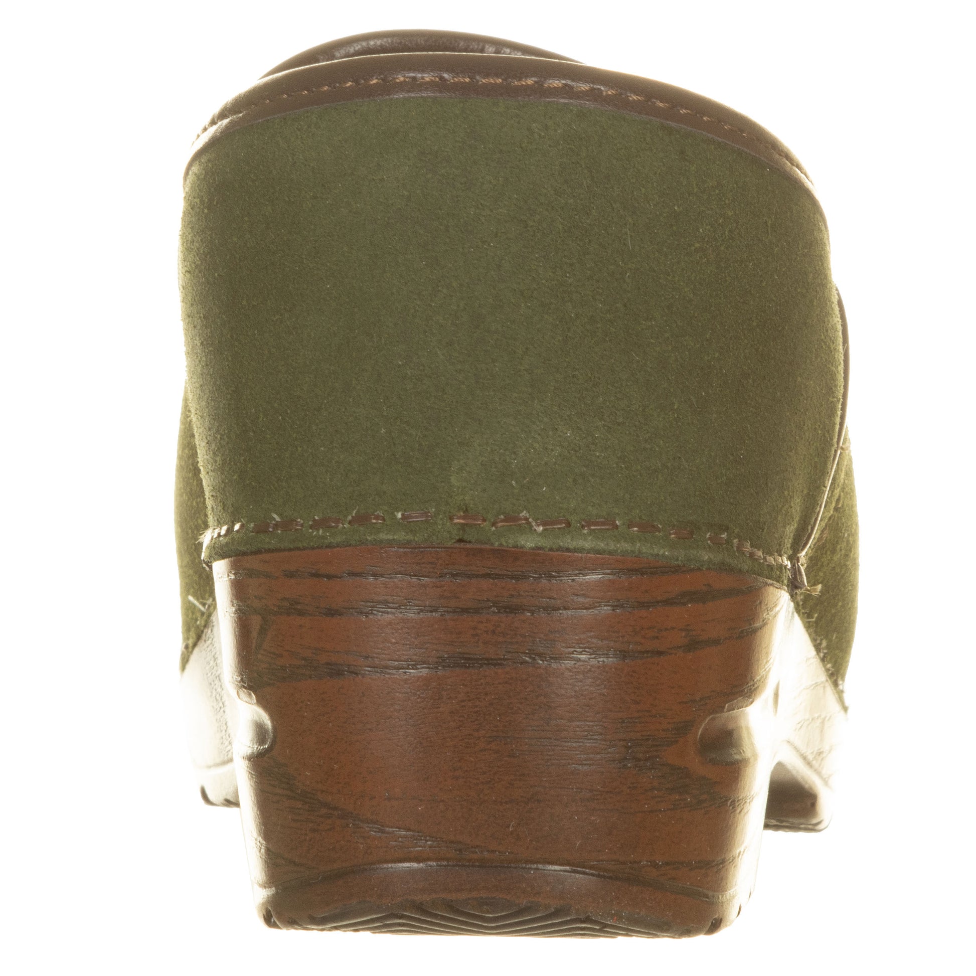 Clogs in pelle scamosciata, profilo pelle in contrasto.