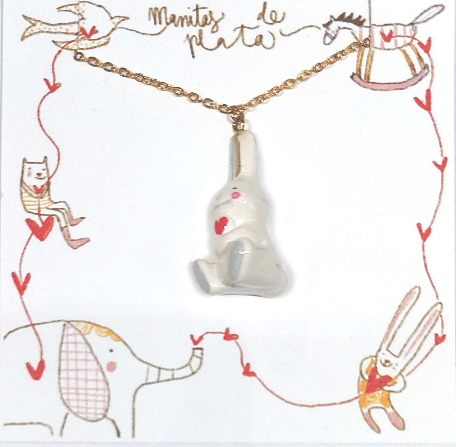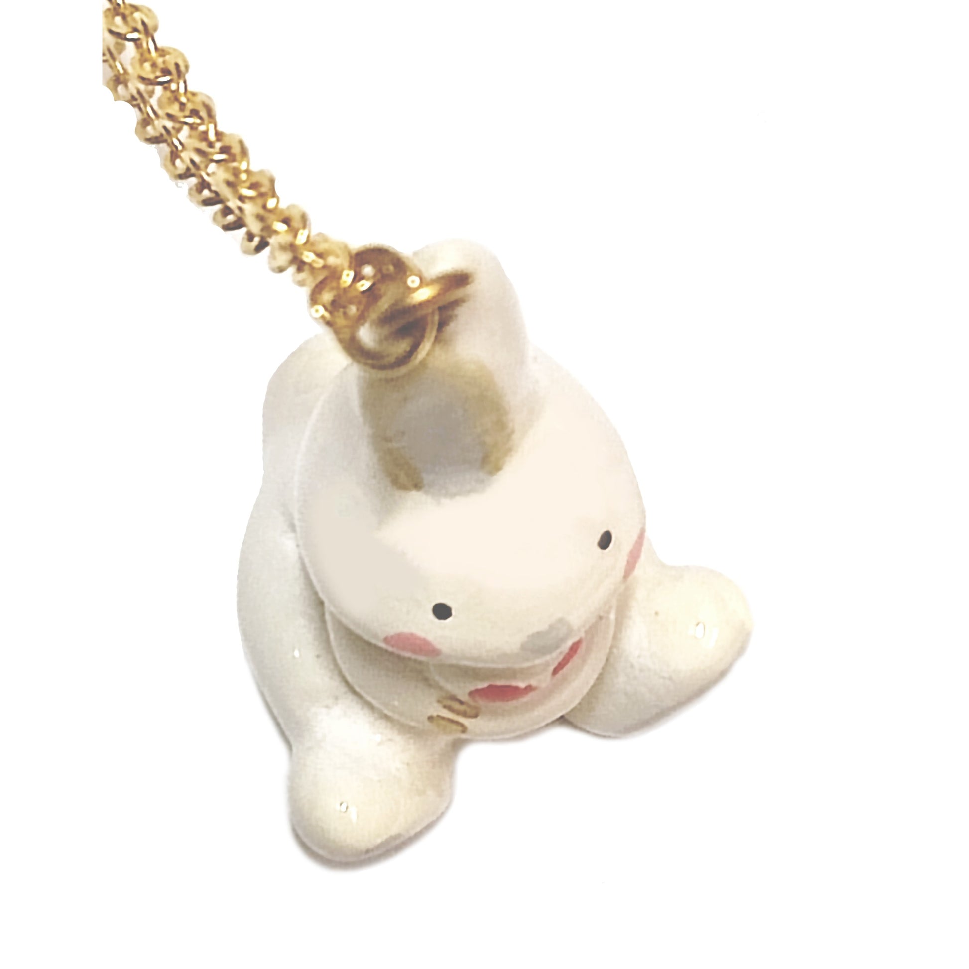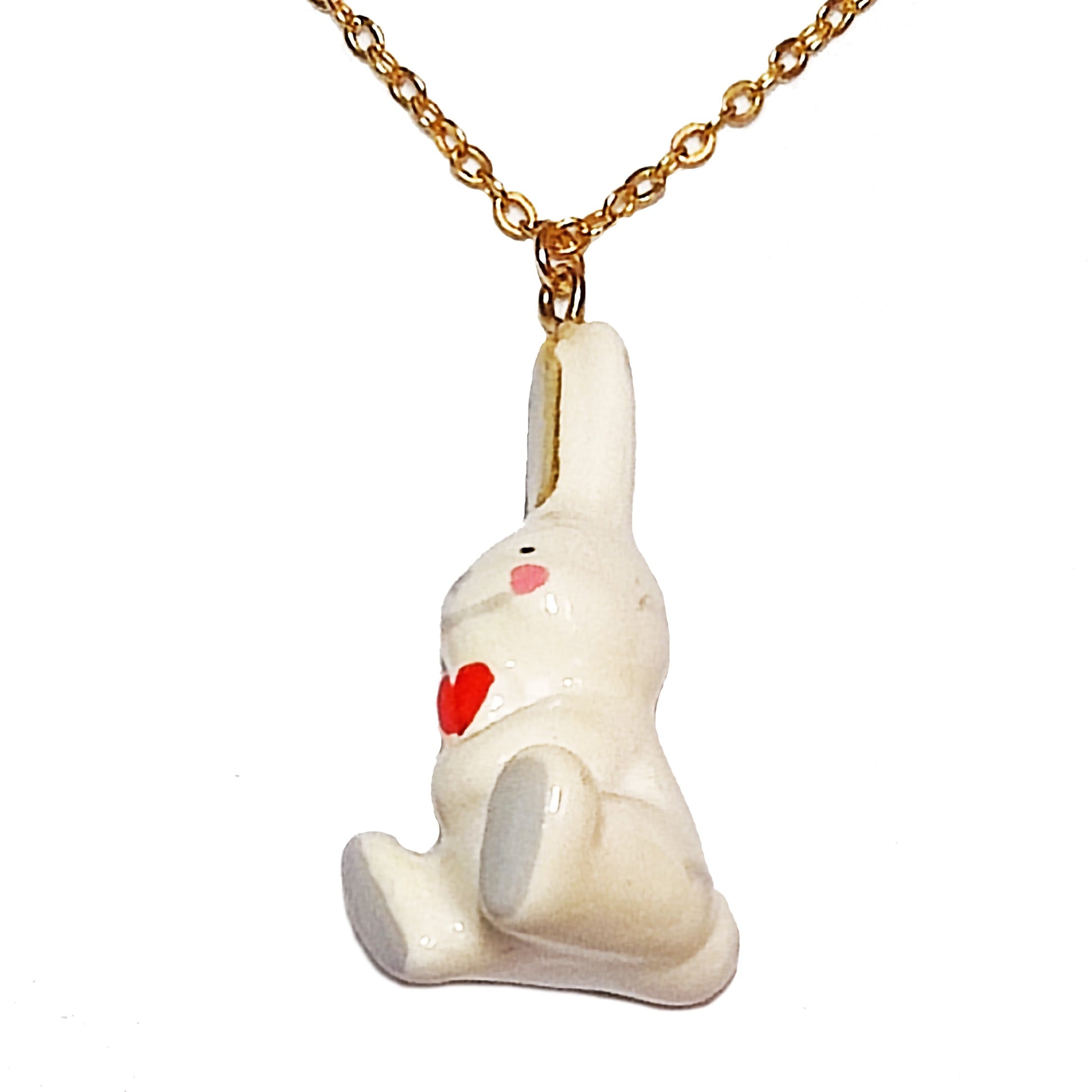 Collana Coniglio 3D. Ceramica fredda[LF]Amorevole coniglio bianco, morbido come il borotalco. Dipinto a mano. Dimensioni: 3,5 cm x 1,5 cm. Catena placcata oro anallergica. 72 cm di lunghezza. Peso: 6,3 grammi. Questo ciondolo ti arriverà in una scatola illustrata.