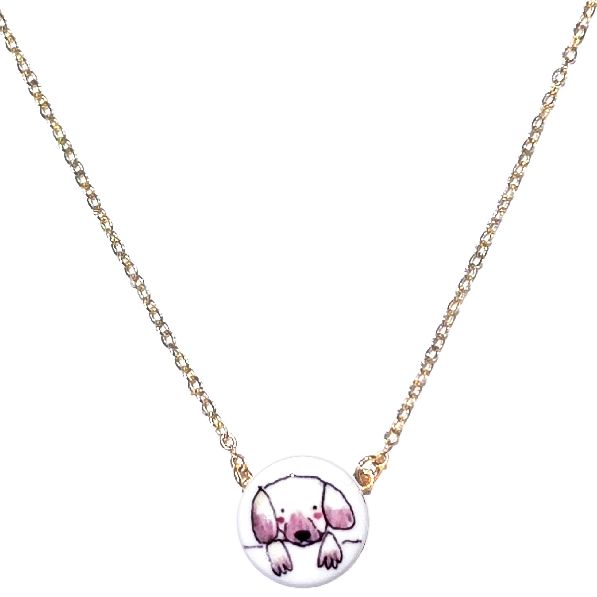 Girocollo MANITAS DE PLATA con disegno Cucciolo, dipinto a mano. Si chiama Alf e gli piace guardare fuori dalla finestra. Piccolo ciondolo da indossare tutti i giorni, per i più piccoli e per i meno piccoli. [LF]Catena placcato oro, anallergica, con piastra realizzata in ceramica fredda. Dimensioni 1.2 cm x 1.2 cm. Lunghezza catena cm. 36. [LF]Cura: togli la collana per fare il bagno o la doccia, durerà molto più a lungo in perfette condizioni. 100% Hand Made in Spain