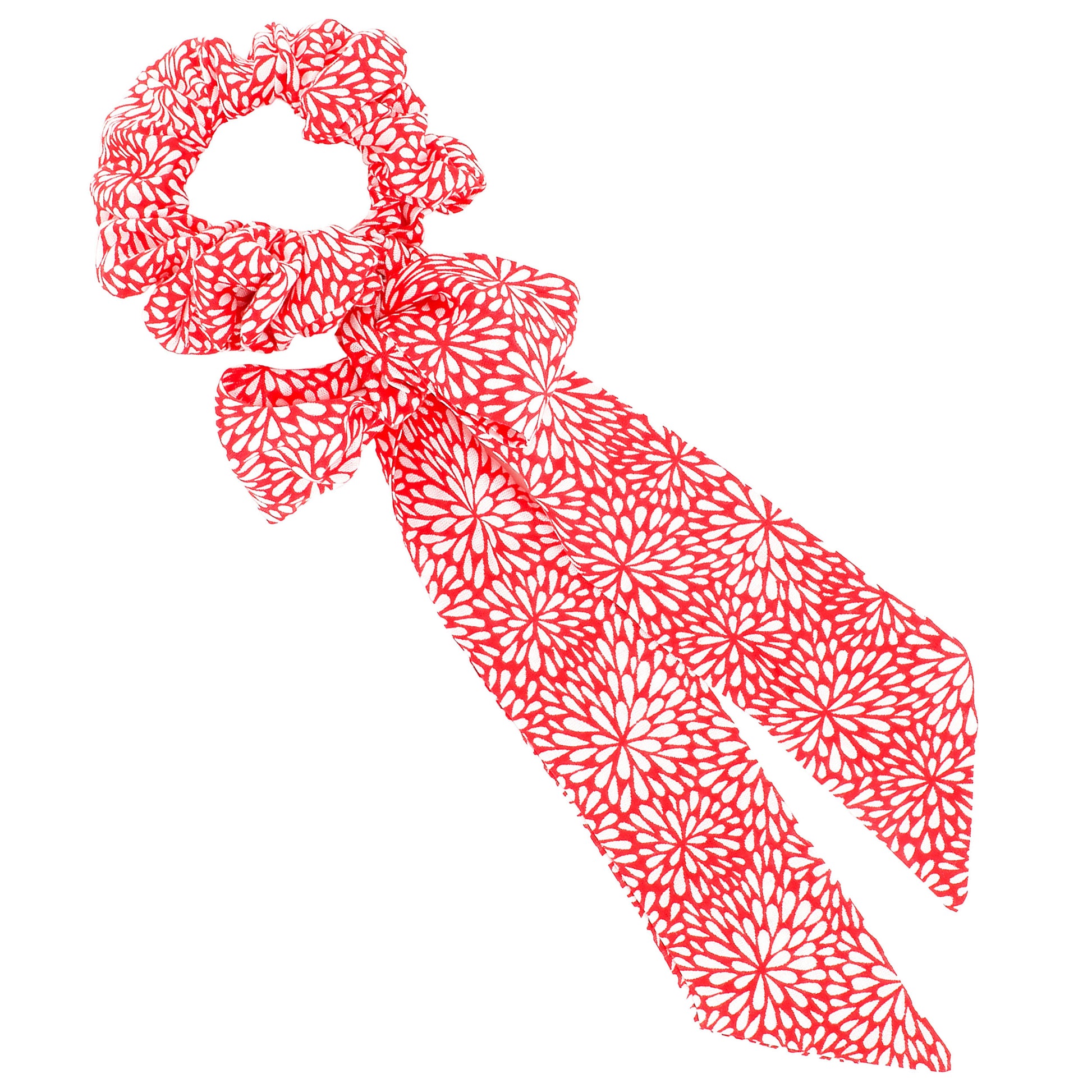 Elastico per capelli in rayon stampato con fiocco removibile. Composizione: 100% rayon. Provenienza: India. Lavare a 40°.
