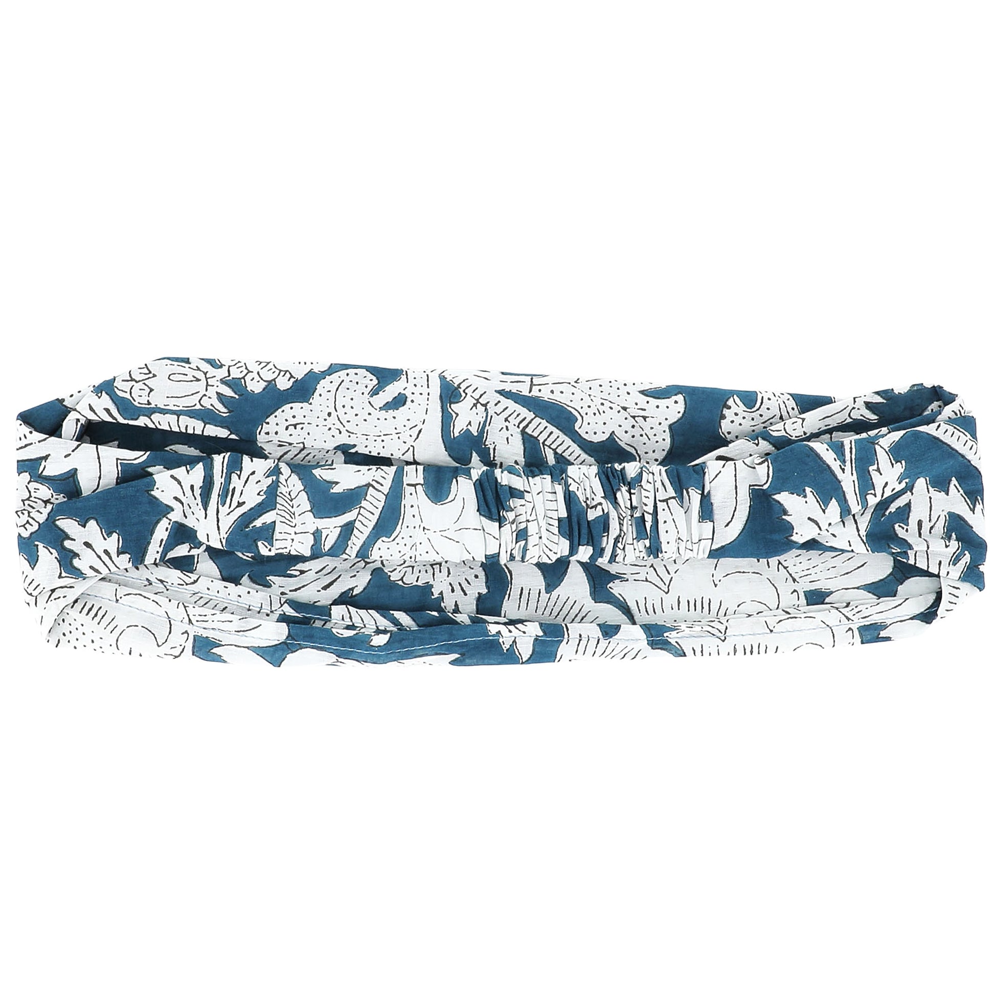 Fascia per capelli in cotone stampato con tessuto intrecciato ed elasticizzato sul dietro. Composizione: 100% cotone. Provenienza: India. Lavare a 40°.