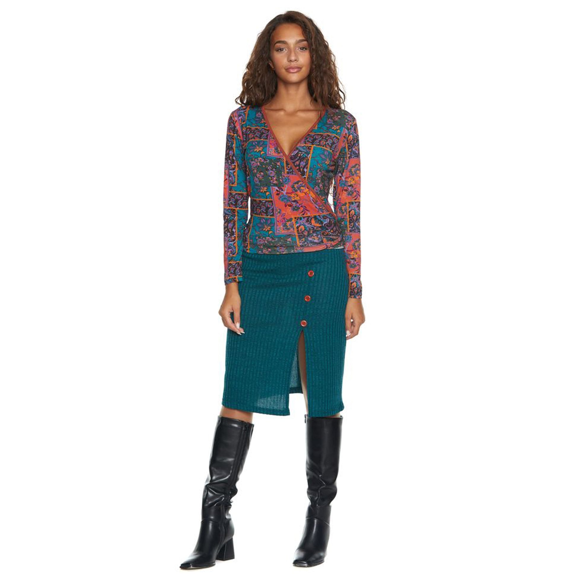 Gonna Warsaw Patchwork di BABA Design. Maglina a coste. Bottoni applicati. Lunghezza cm. 100. Composizione: 65% Acrilico, 305% Poliestere, 5% Spandex. Le misure indicate corrispondono alla taglia S-M. Le foto del capo indossato dalla modella potrebbero essere di un colore diverso.Made in Nepal, da design italiano: realizzato a mano e tinto con colori naturali, e senza sfruttamento minorile.