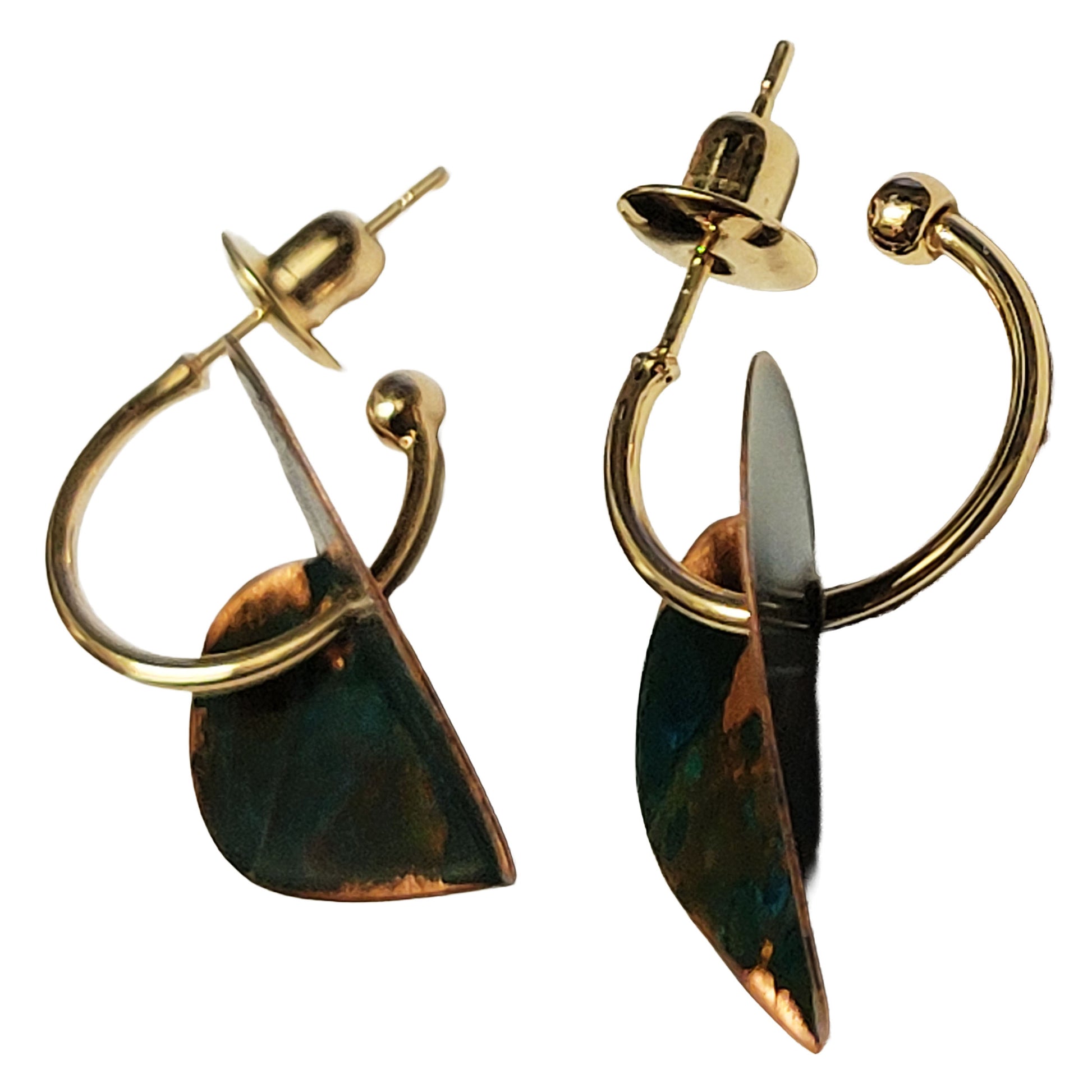 Piccoli cerchi a forma di cuore. Ritagliati, ossidati. Cerchio aperto con placcatura in oro.