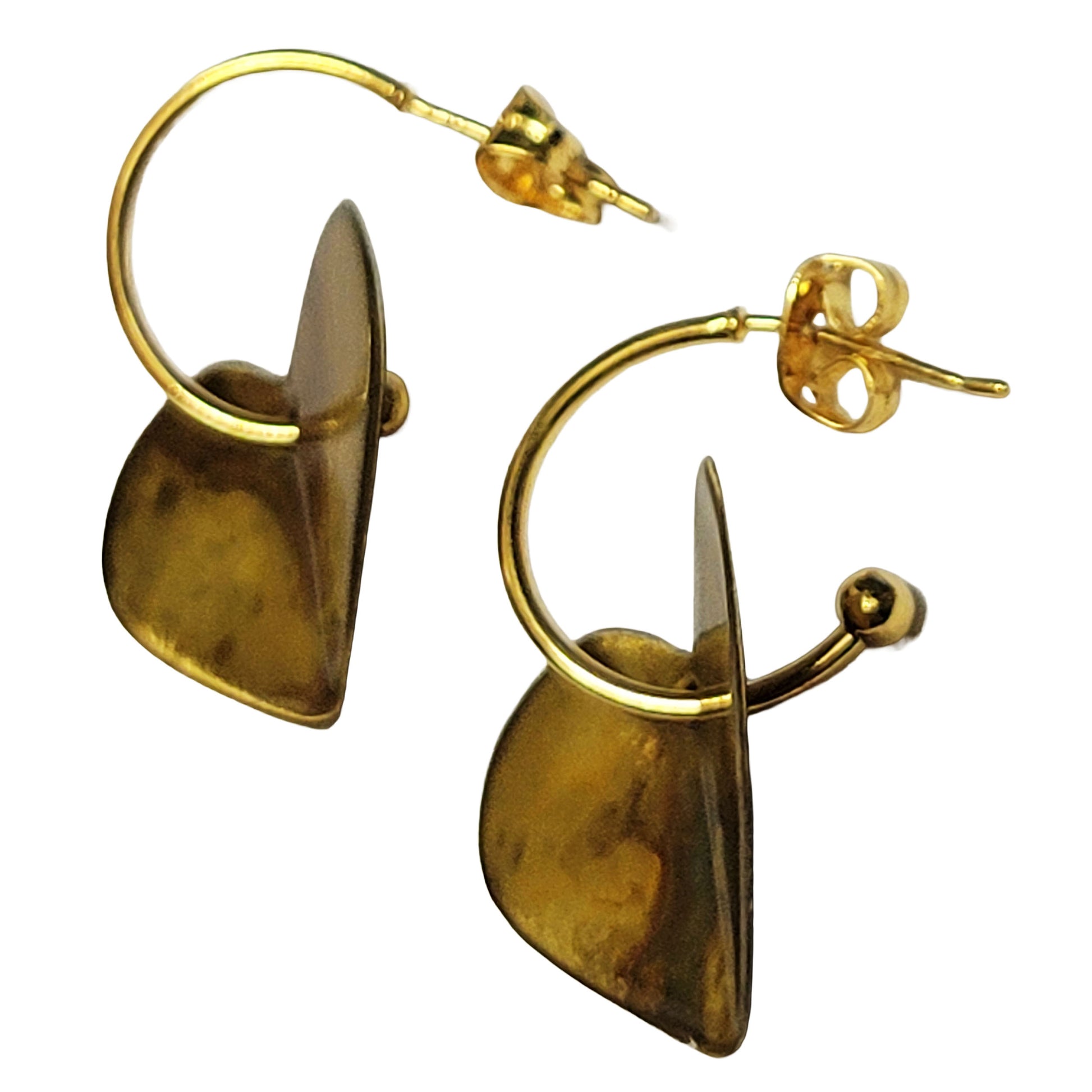 Piccoli cerchi a forma di cuore. Ritagliati, ossidati. Cerchio aperto con placcatura in oro.