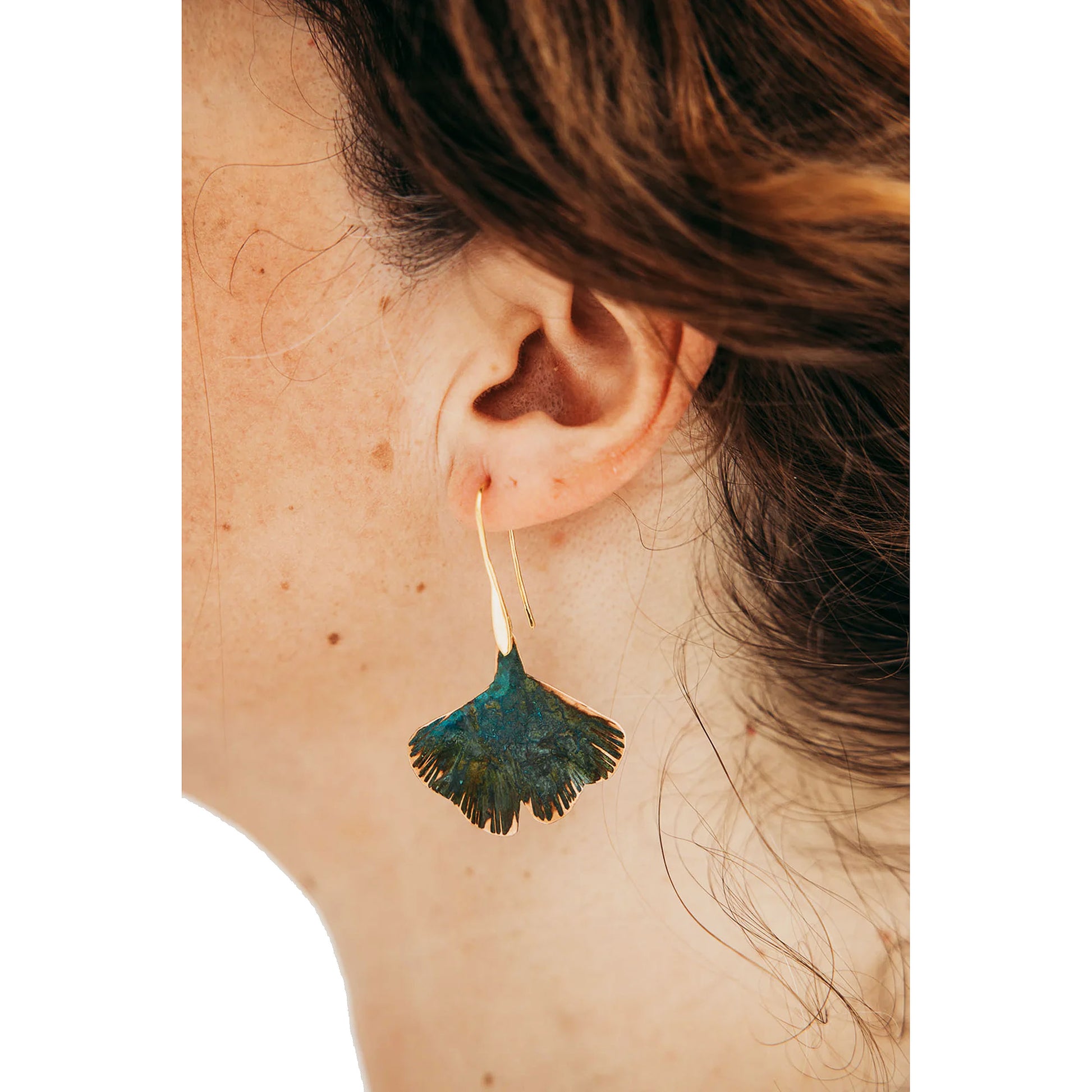 HOIKO Orecchini in rame e ottone foglia di Ginko 03