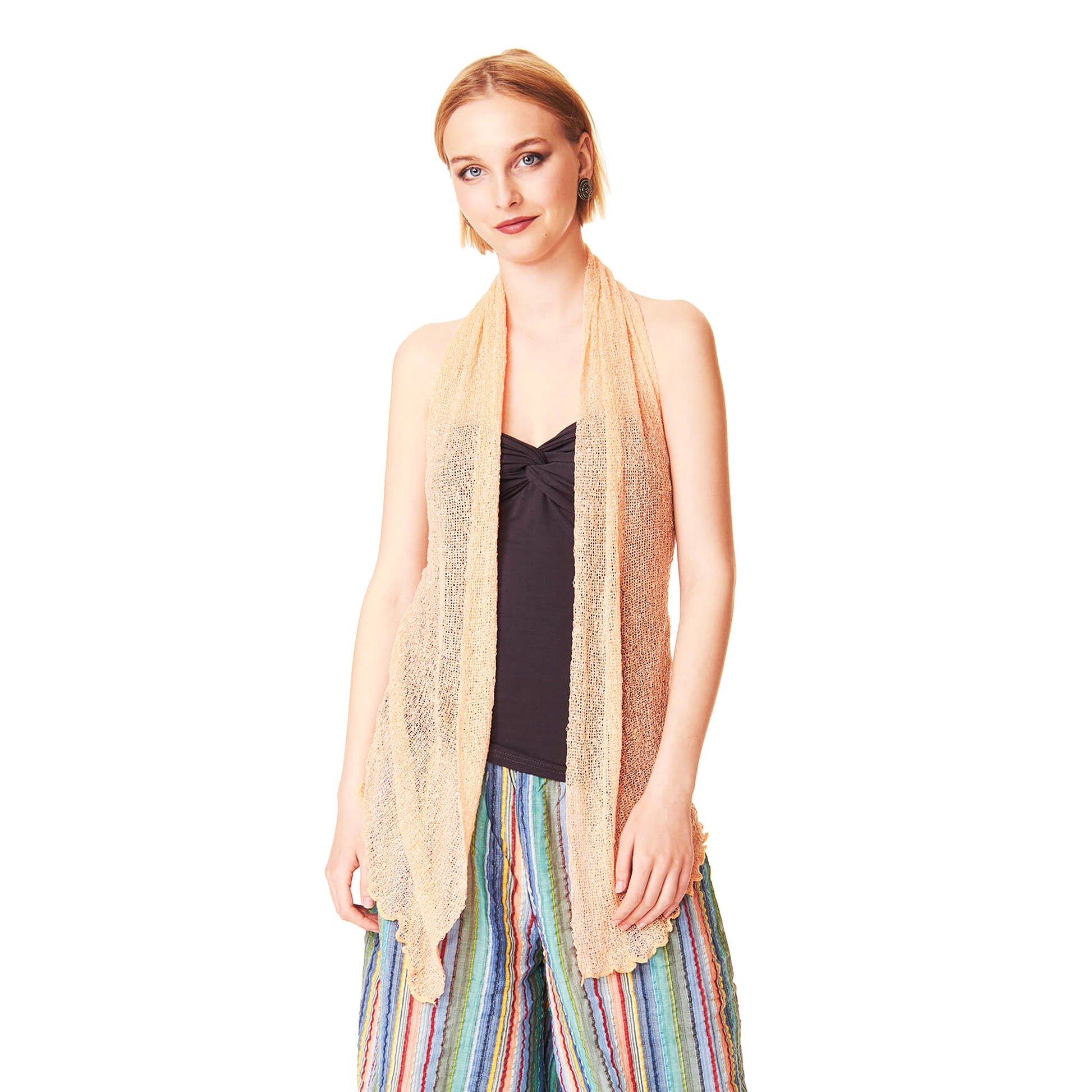 Un capo versatile da indossare aperto, come maxi scialle, annodato dietro come top.