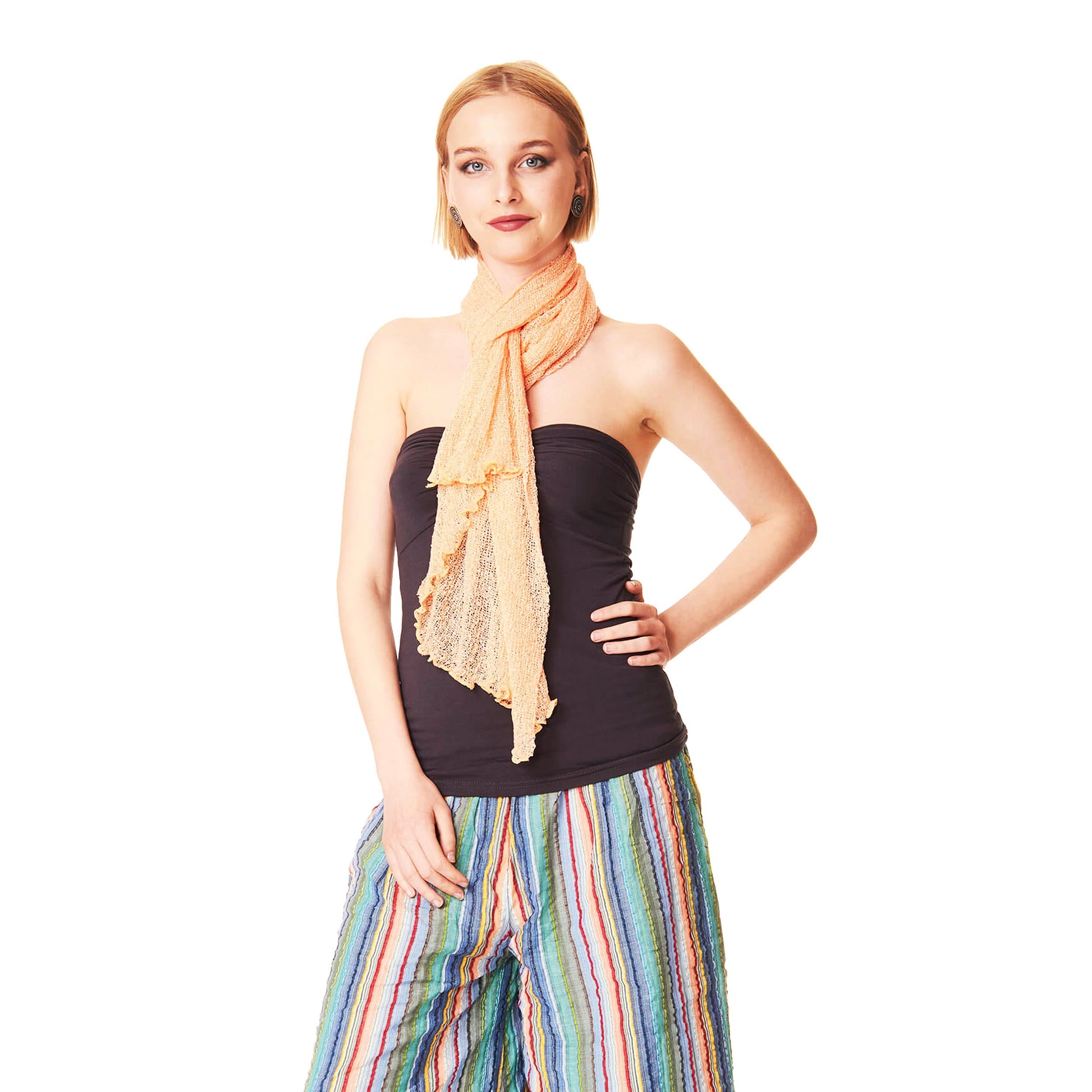 Maxi scialle in tessuto rayon, morbido, semitrasparente dalla texture leggera e retata.