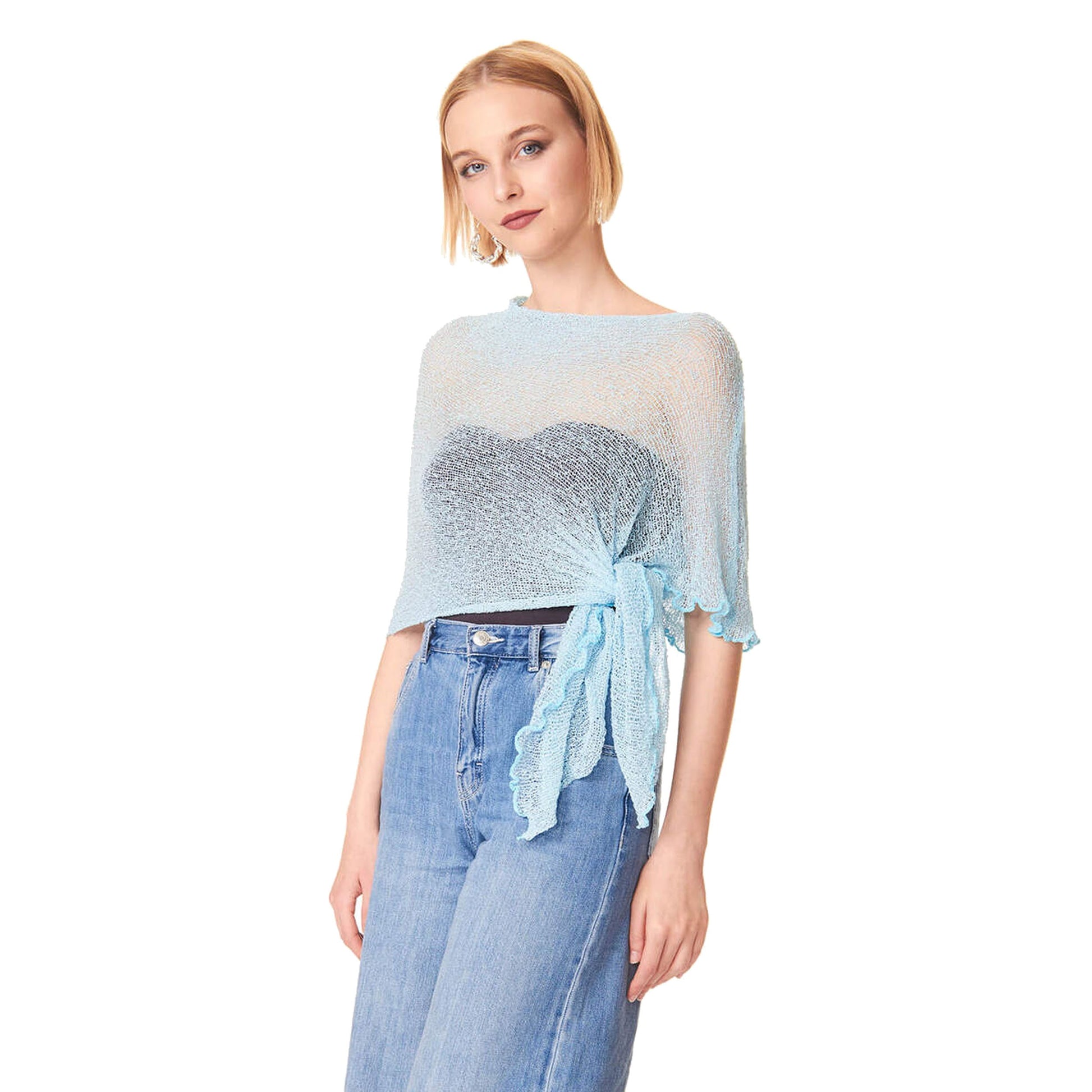 Un capo versatile da indossare aperto, come maxi scialle, annodato dietro come top.