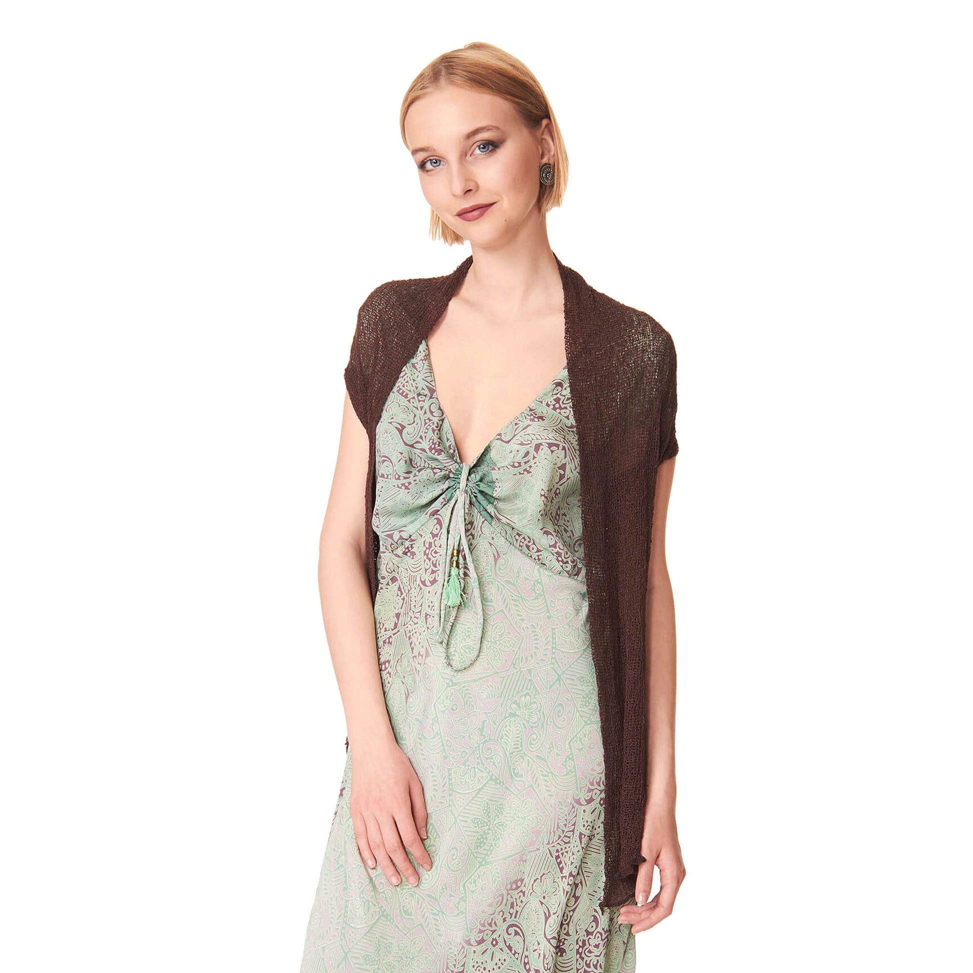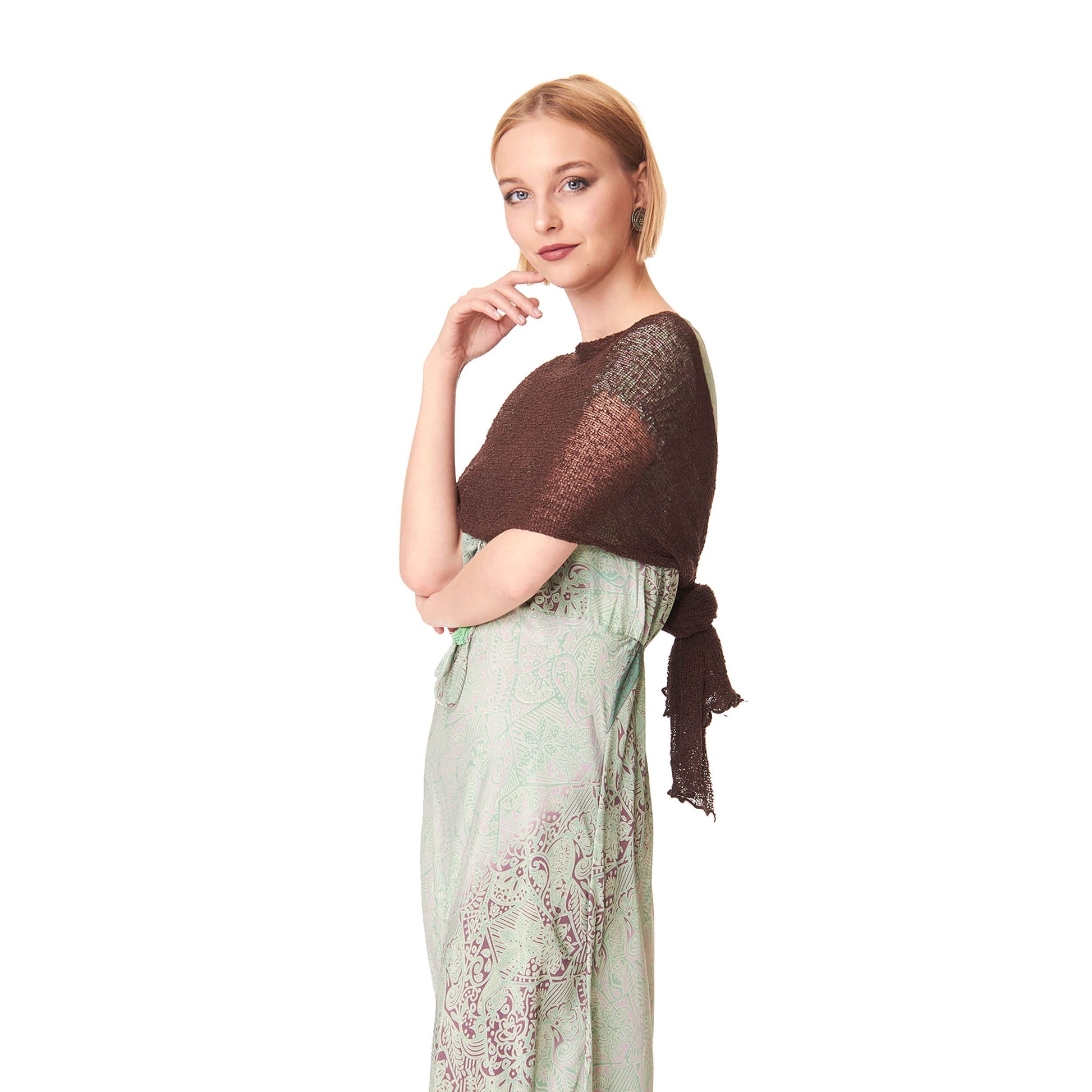 Un capo versatile da indossare aperto, come maxi scialle, annodato dietro come top.