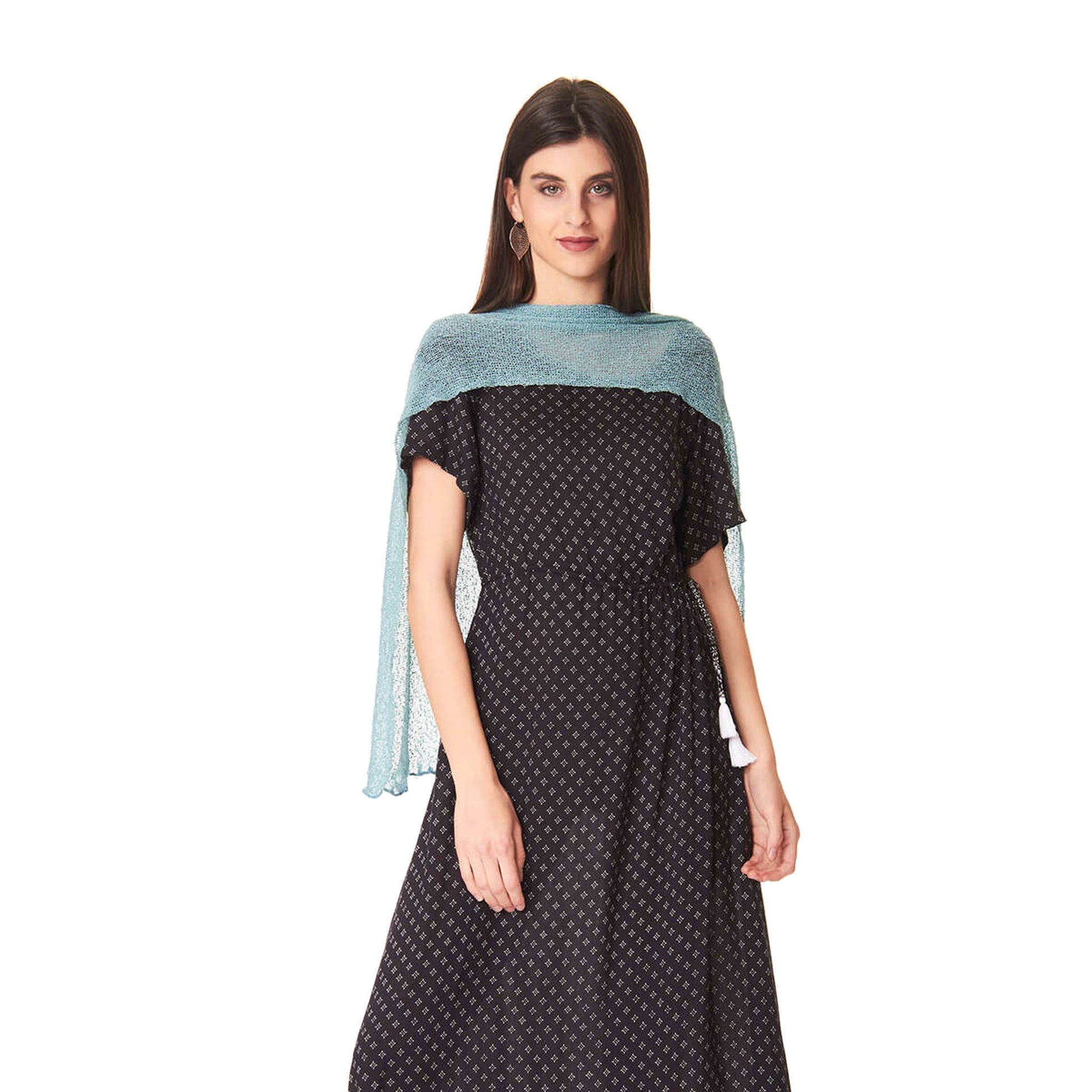 Maxi scialle in tessuto rayon, morbido, semitrasparente dalla texture leggera e retata.