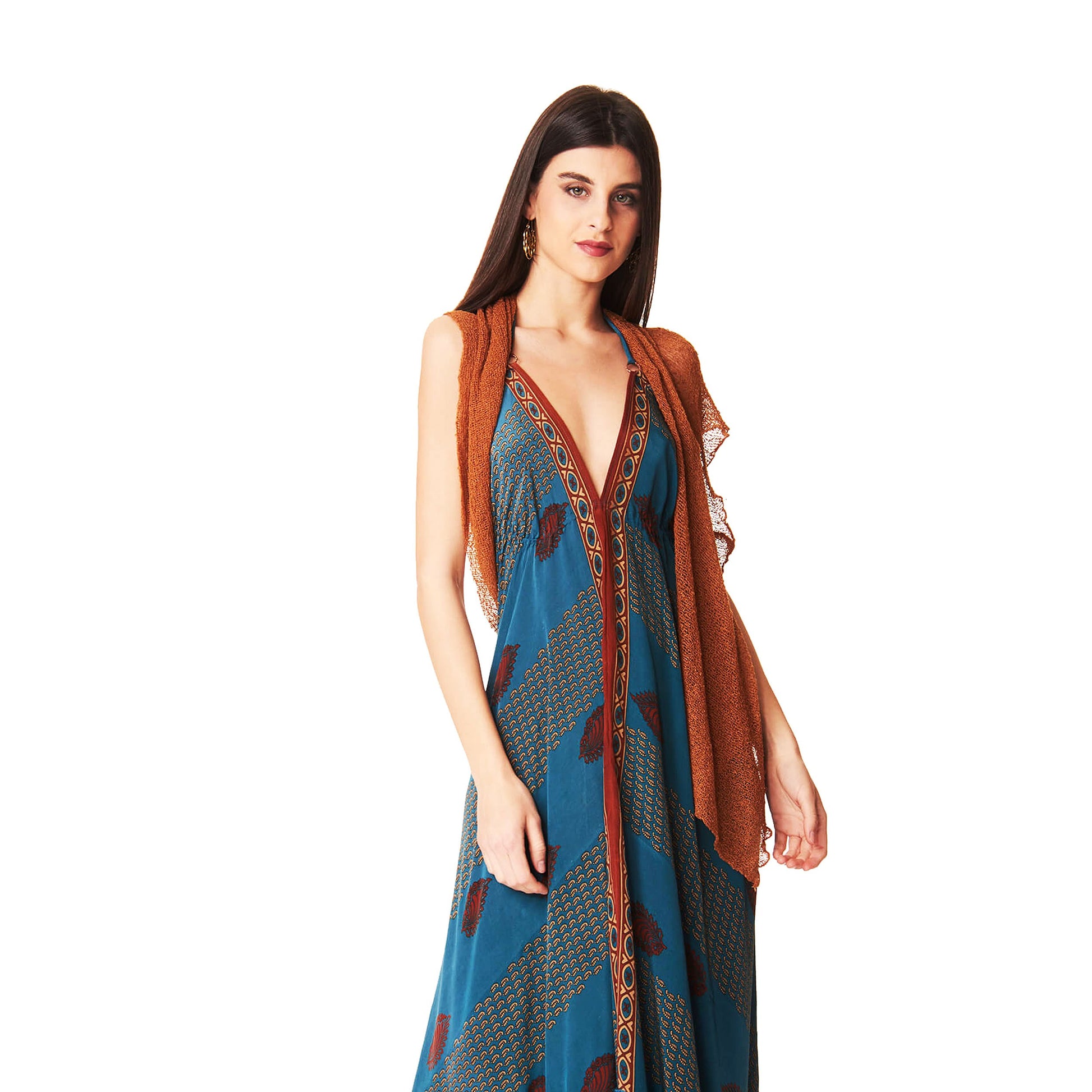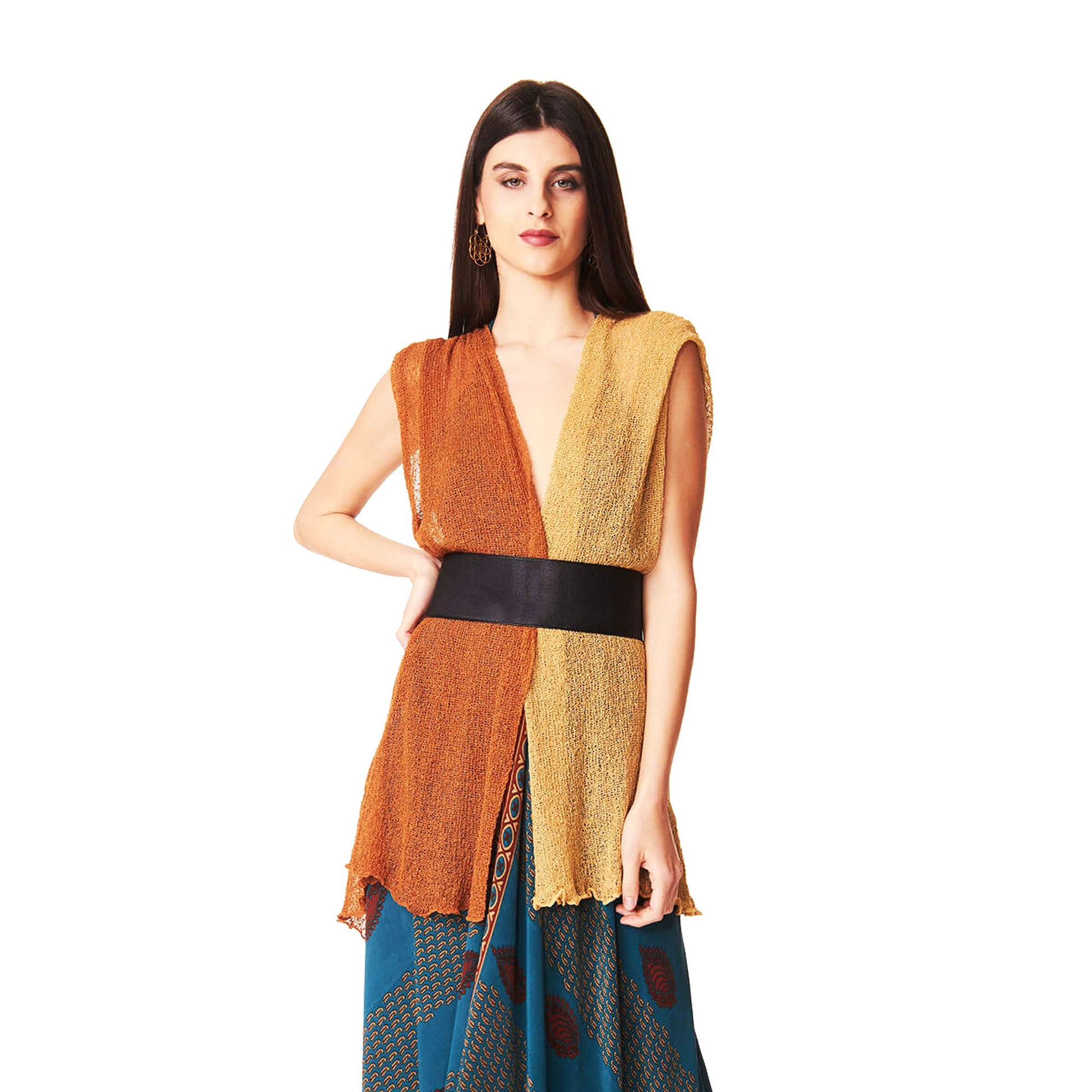 Un capo versatile da indossare aperto, come maxi scialle, annodato dietro come top.
