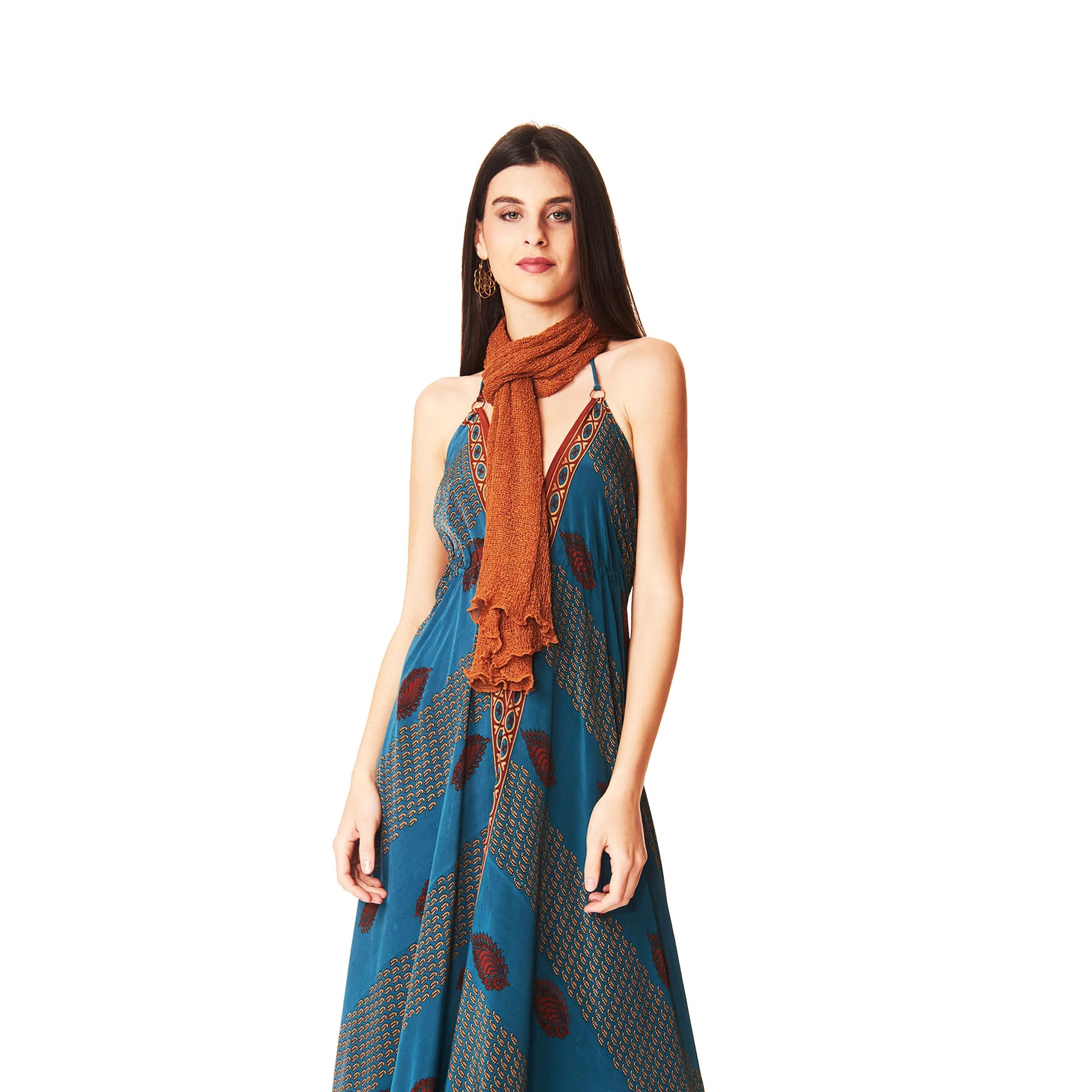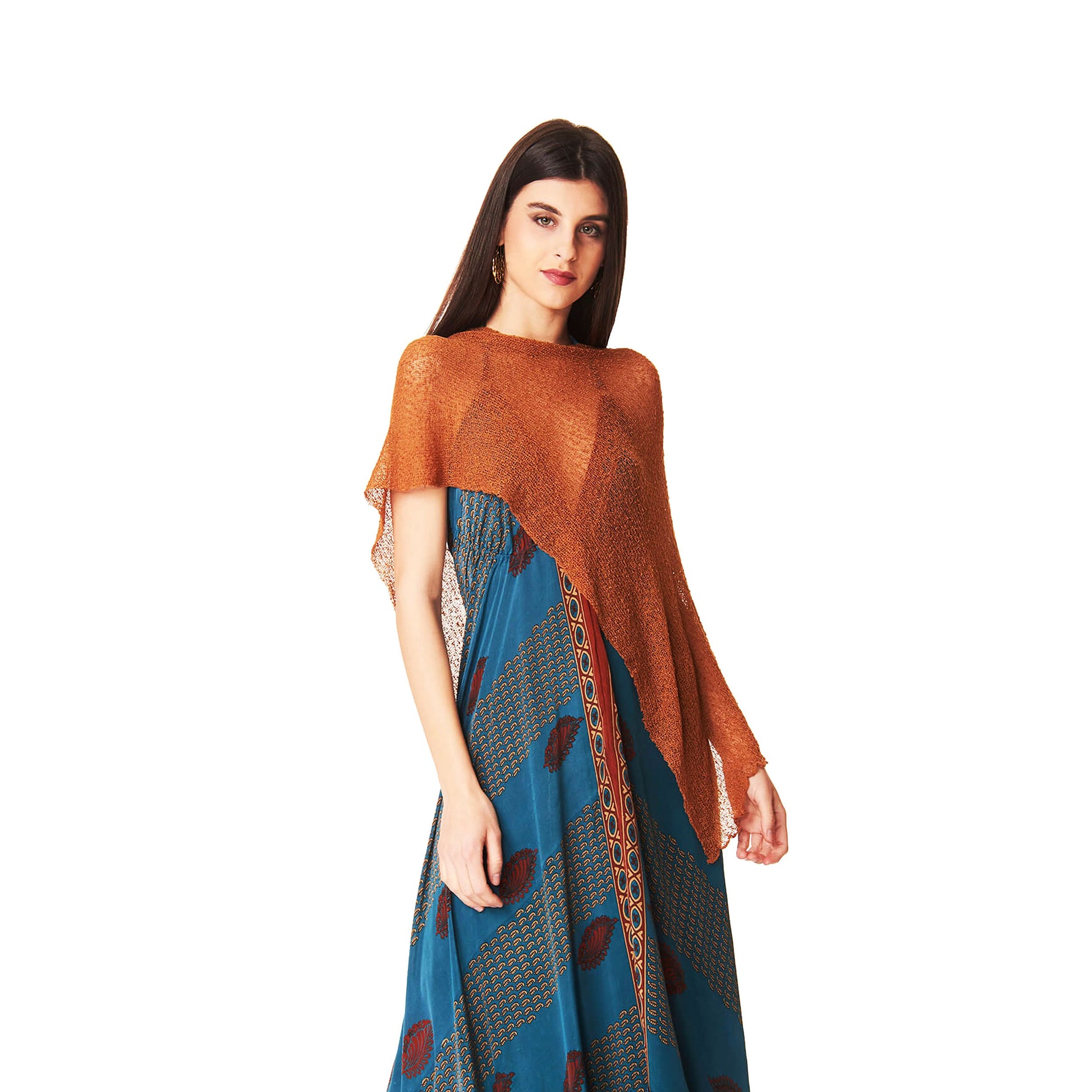 Maxi scialle in tessuto rayon, morbido, semitrasparente dalla texture leggera e retata.