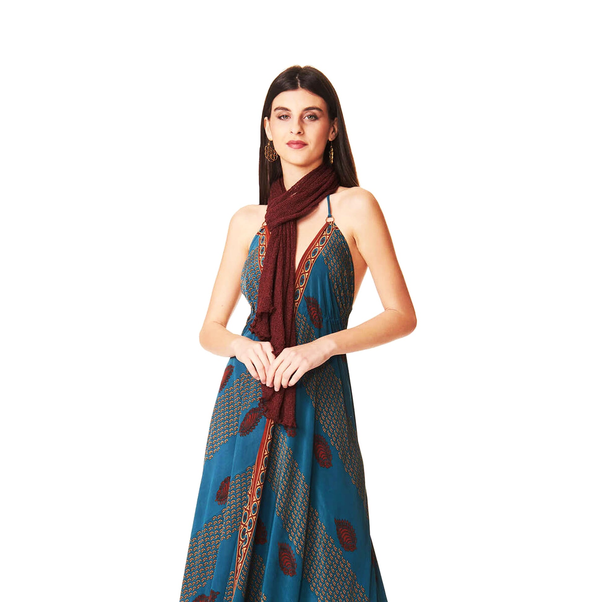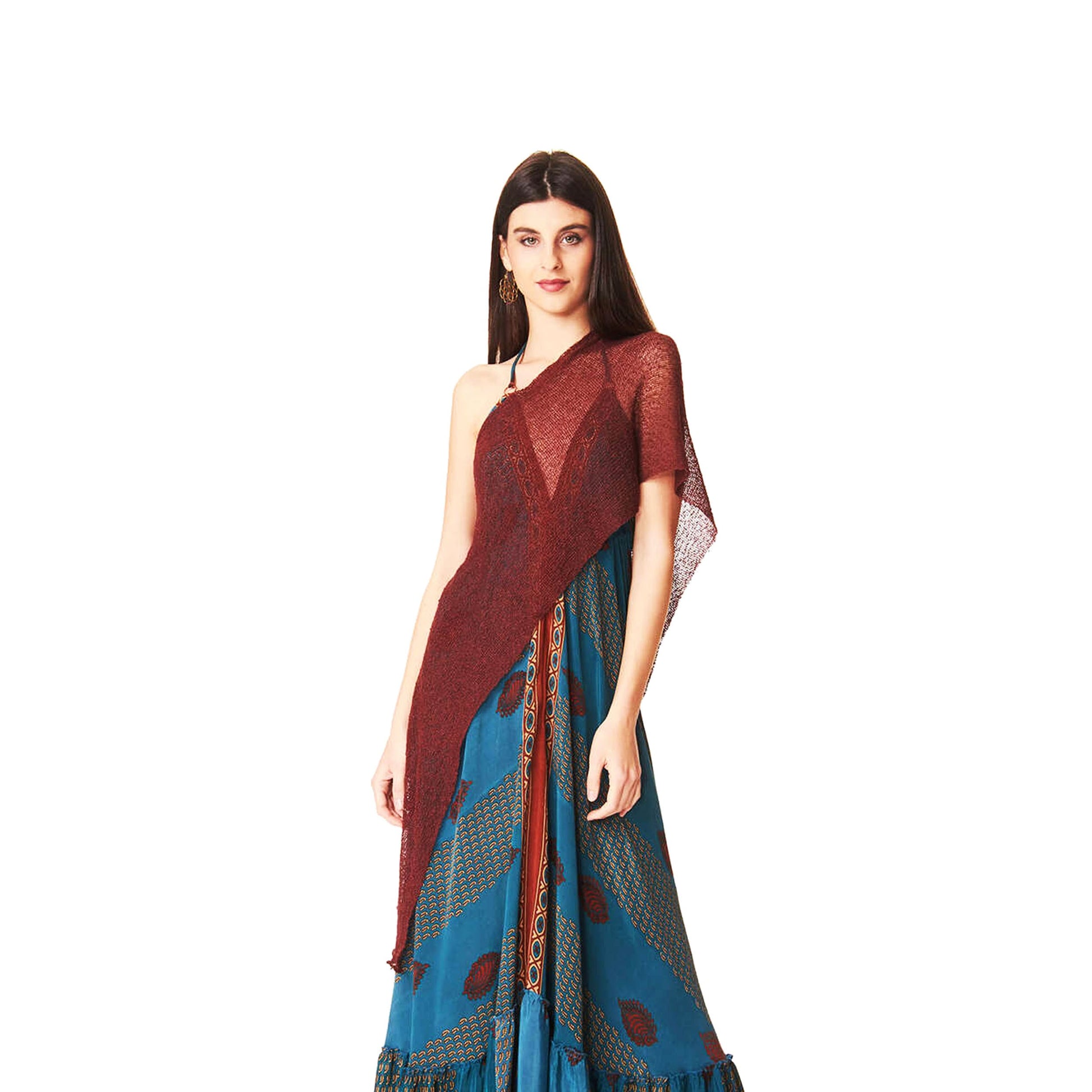 Maxi scialle in tessuto rayon, morbido, semitrasparente dalla texture leggera e retata.