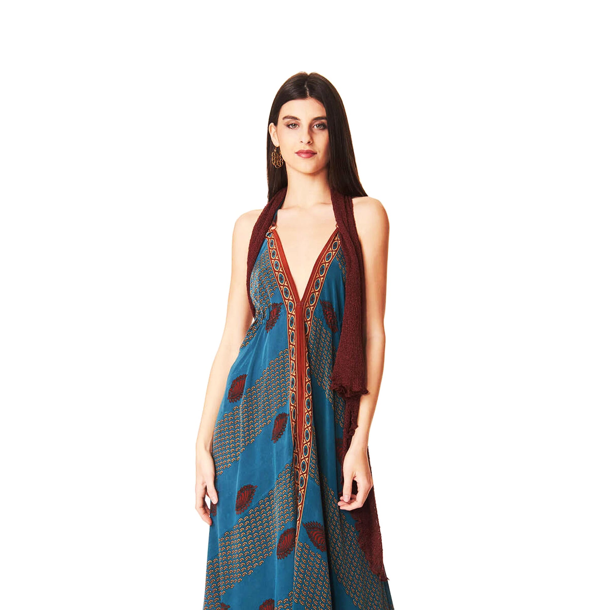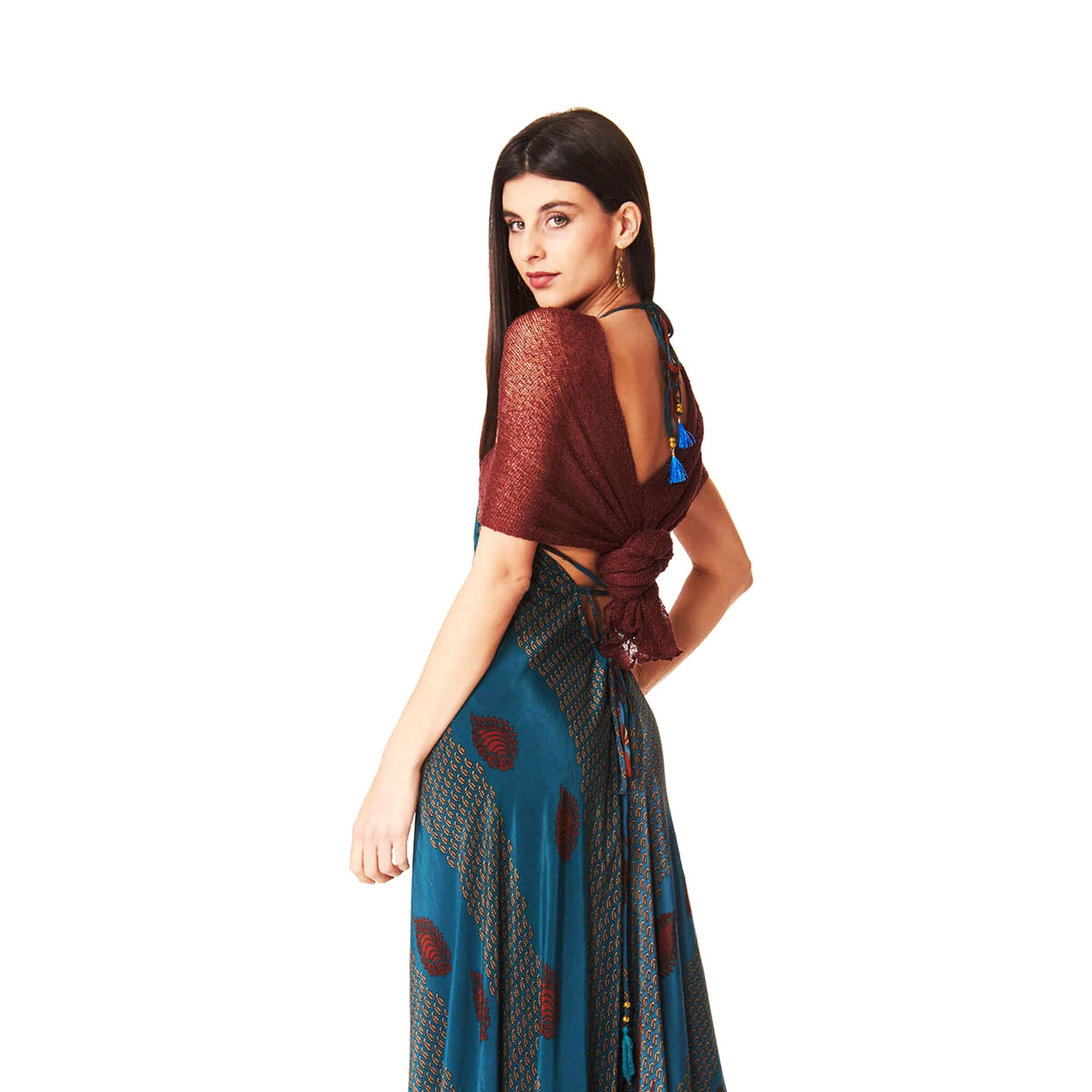 Un capo versatile da indossare aperto, come maxi scialle, annodato dietro come top.
