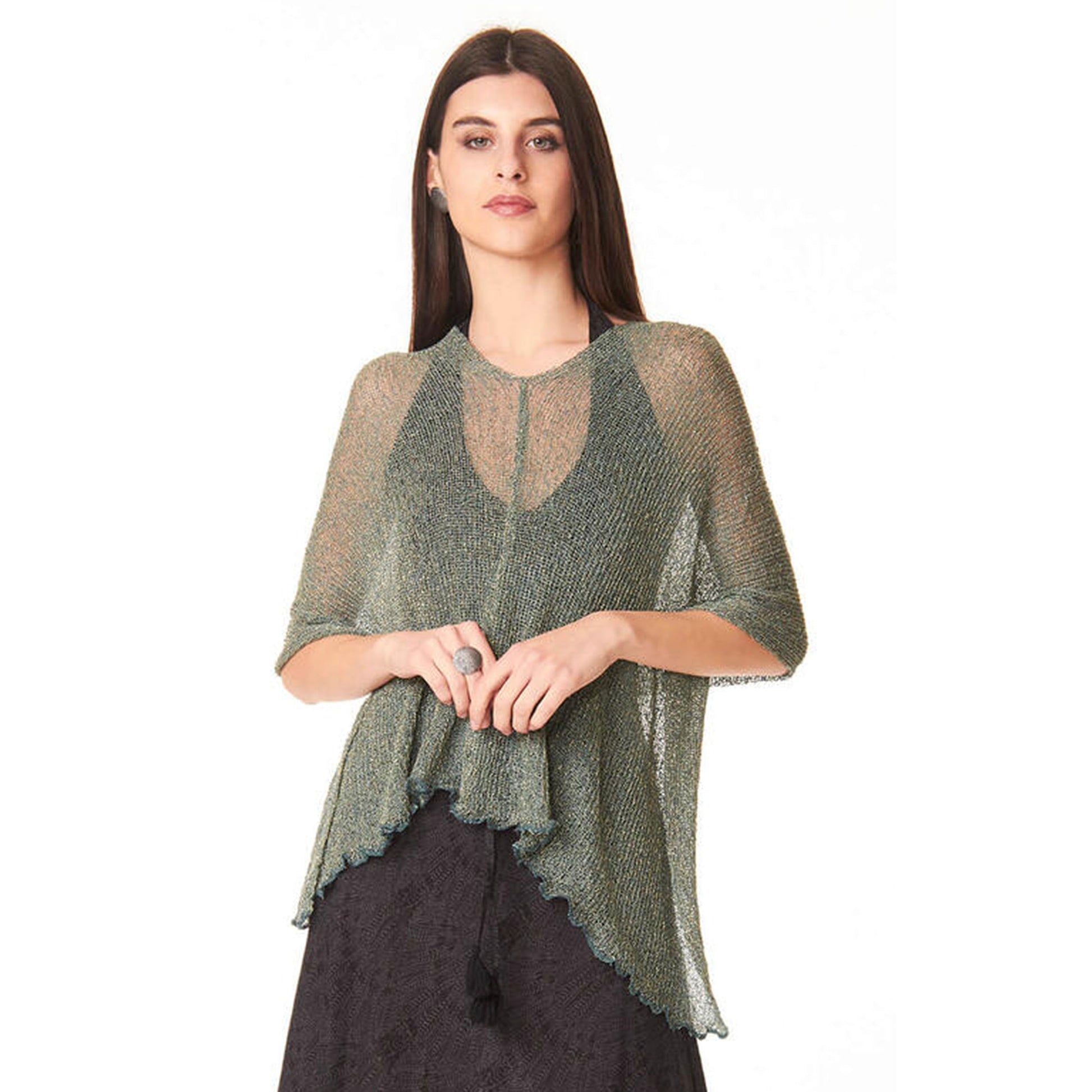 Un capo versatile da indossare aperto, come maxi scialle, annodato dietro come top.