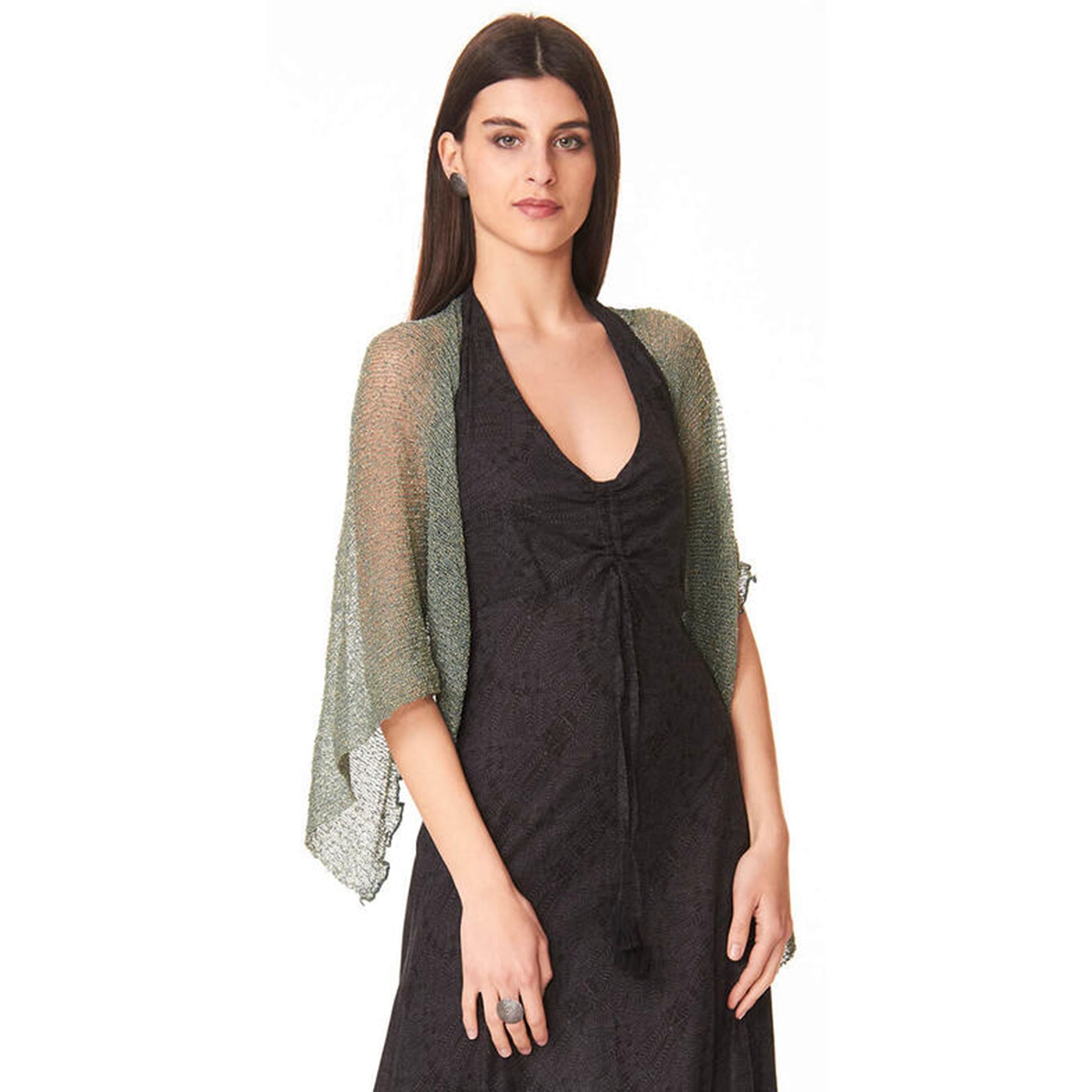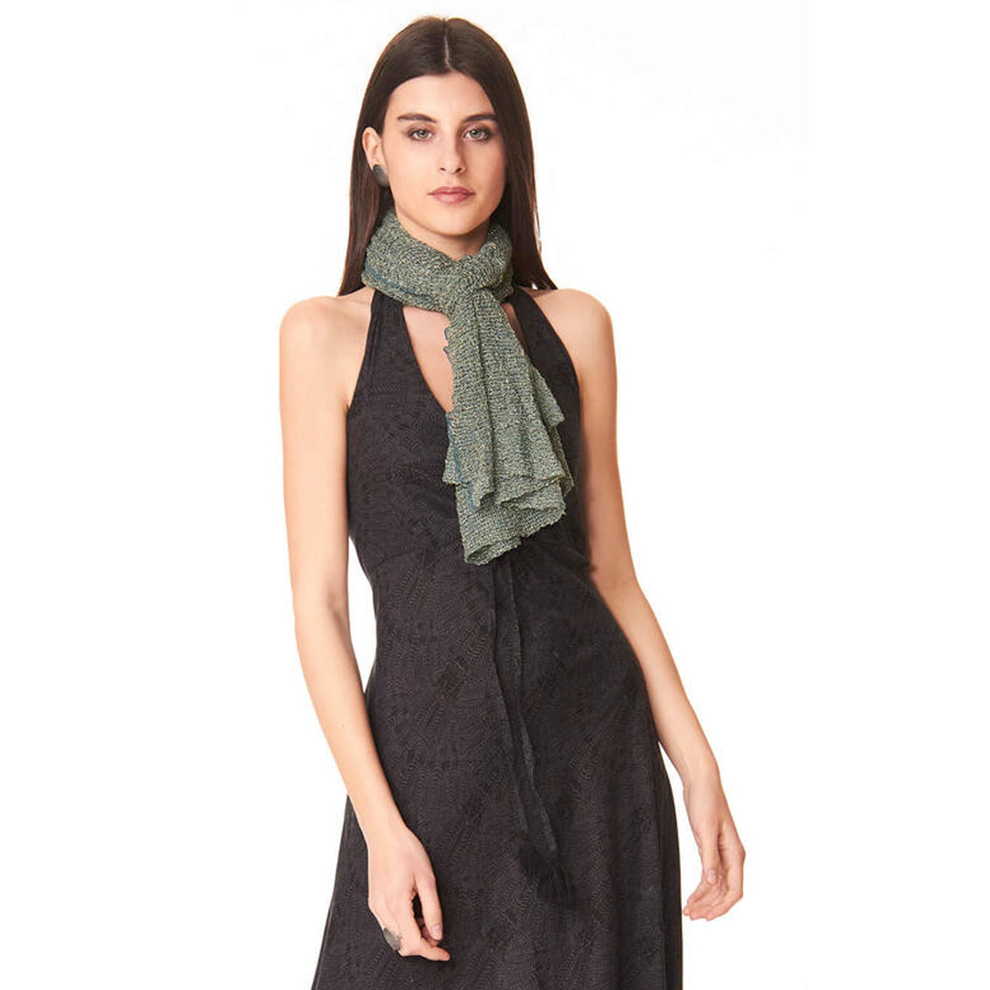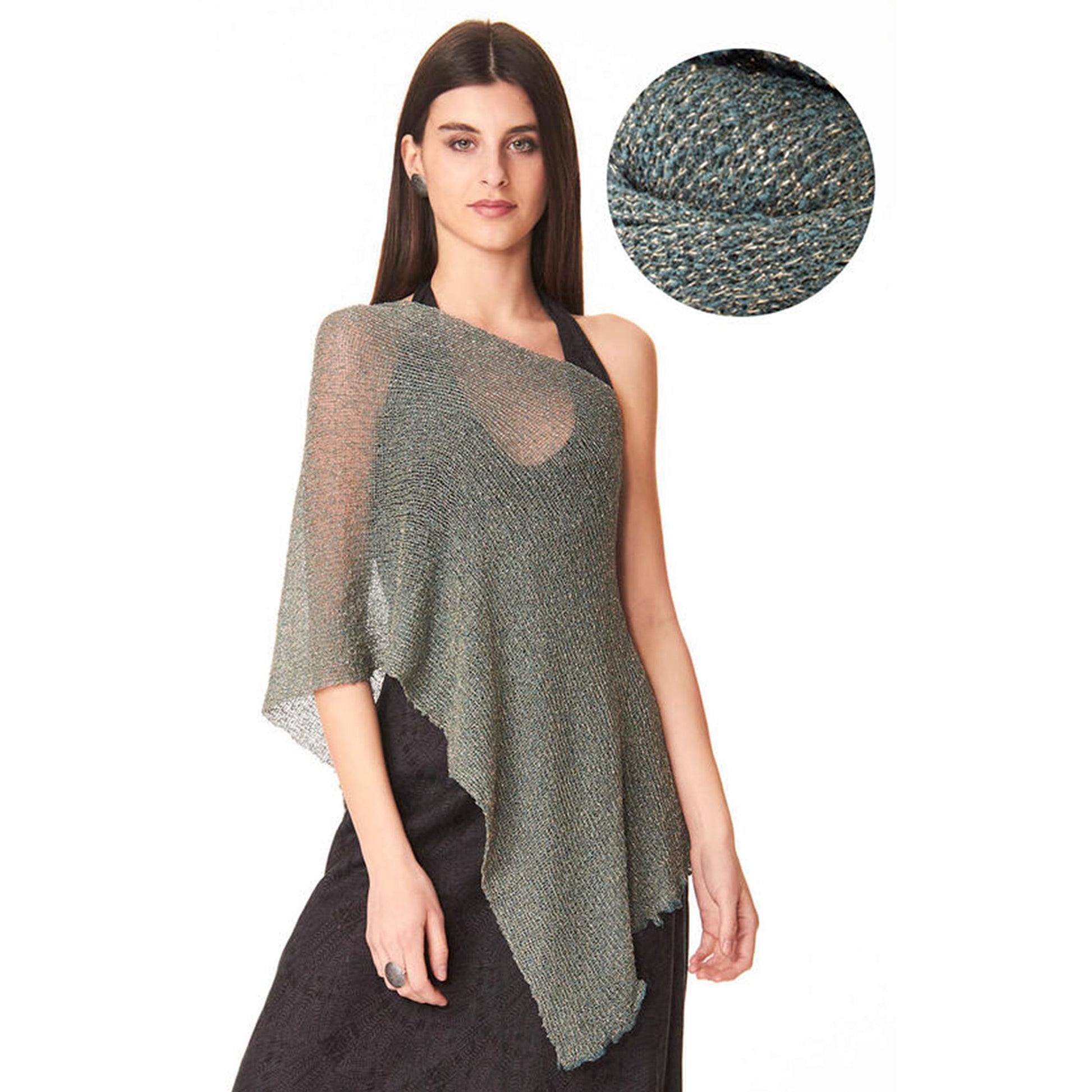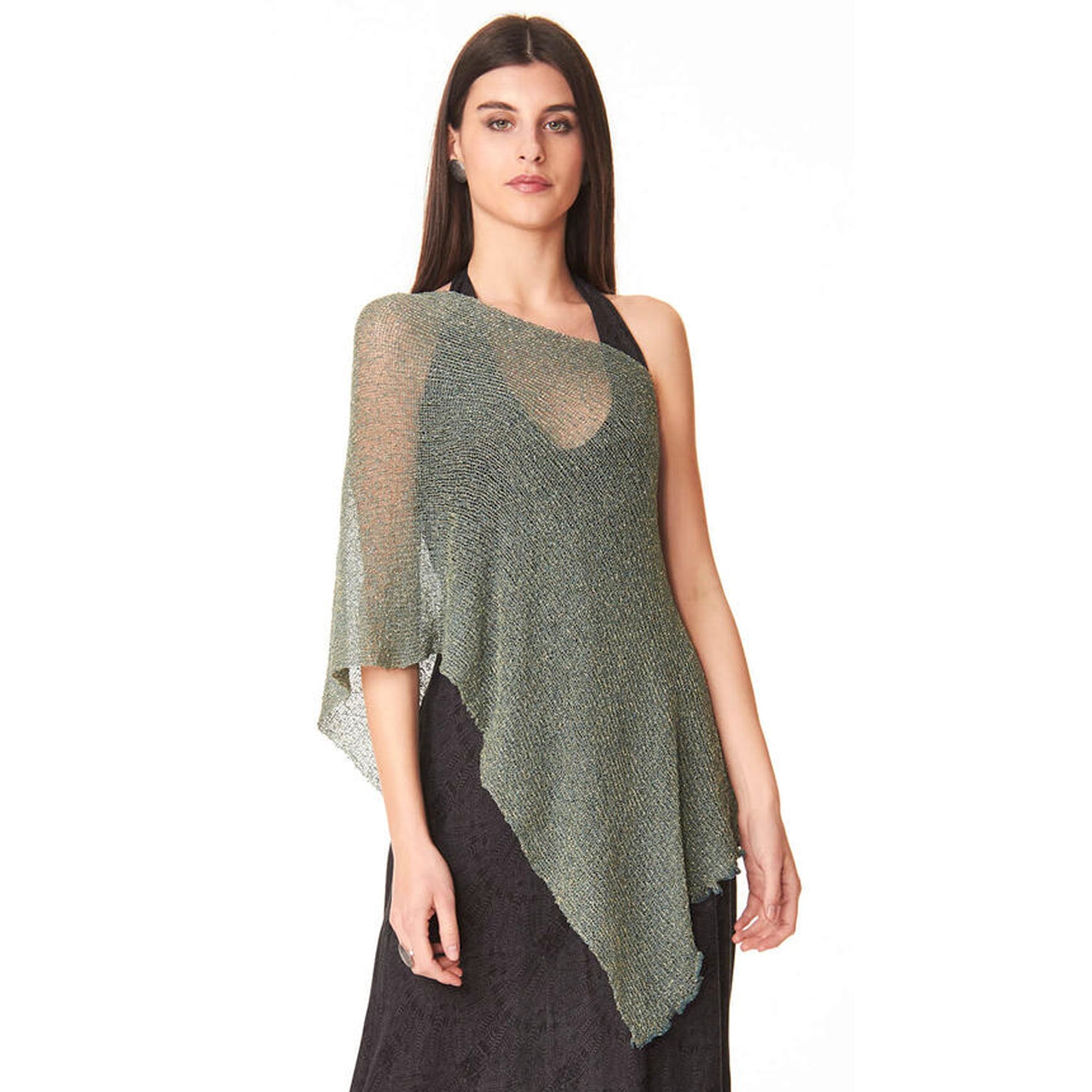 Maxi scialle in tessuto rayon con inserti lurex oro.