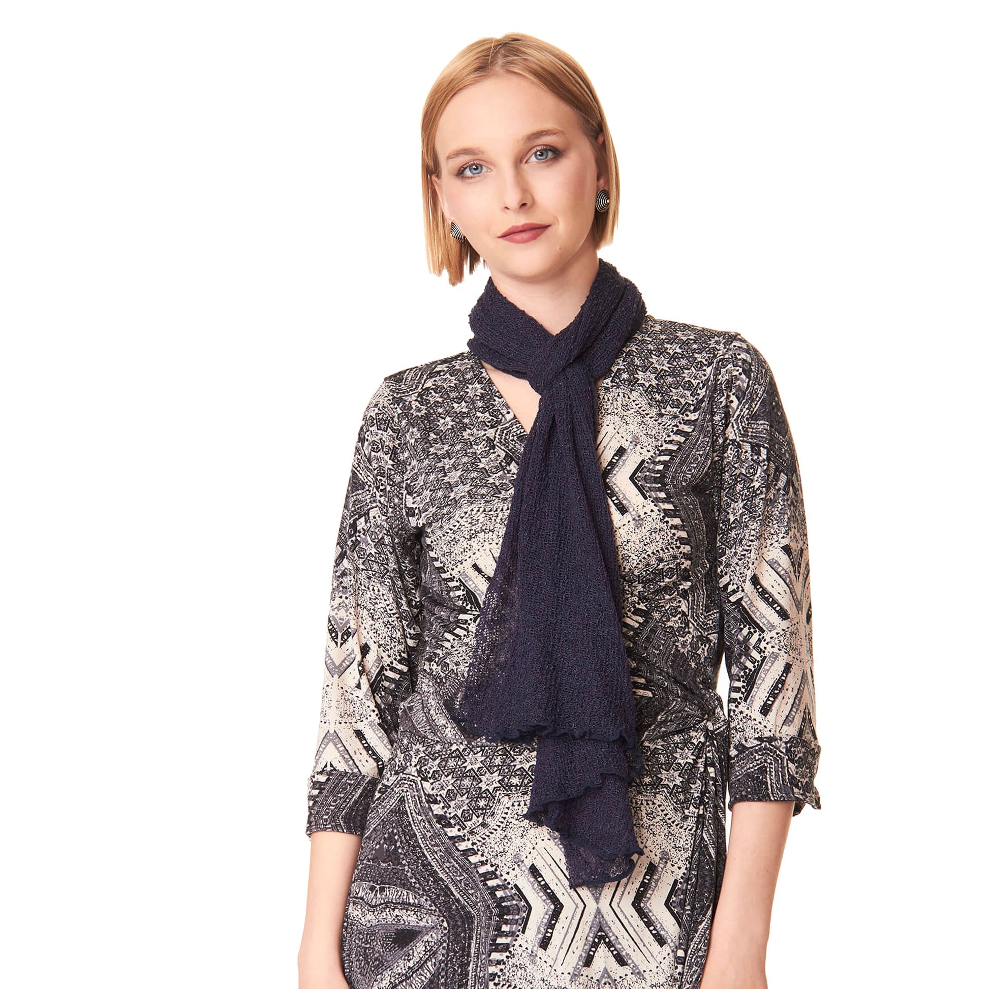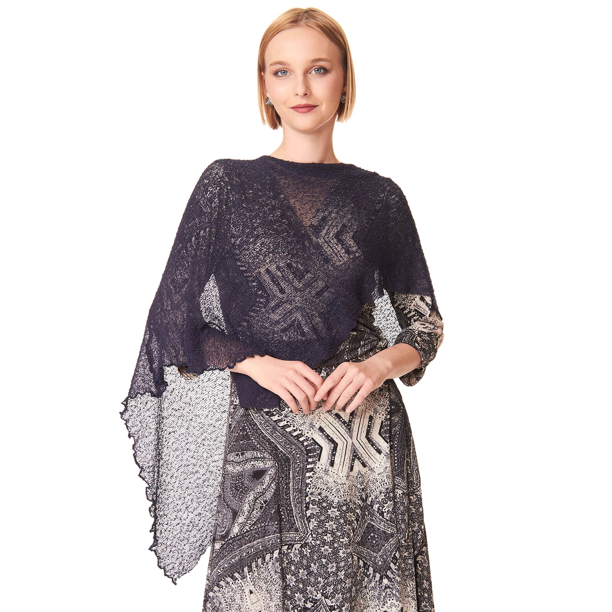 Maxi scialle in tessuto rayon, morbido, semitrasparente dalla texture leggera e retata.
