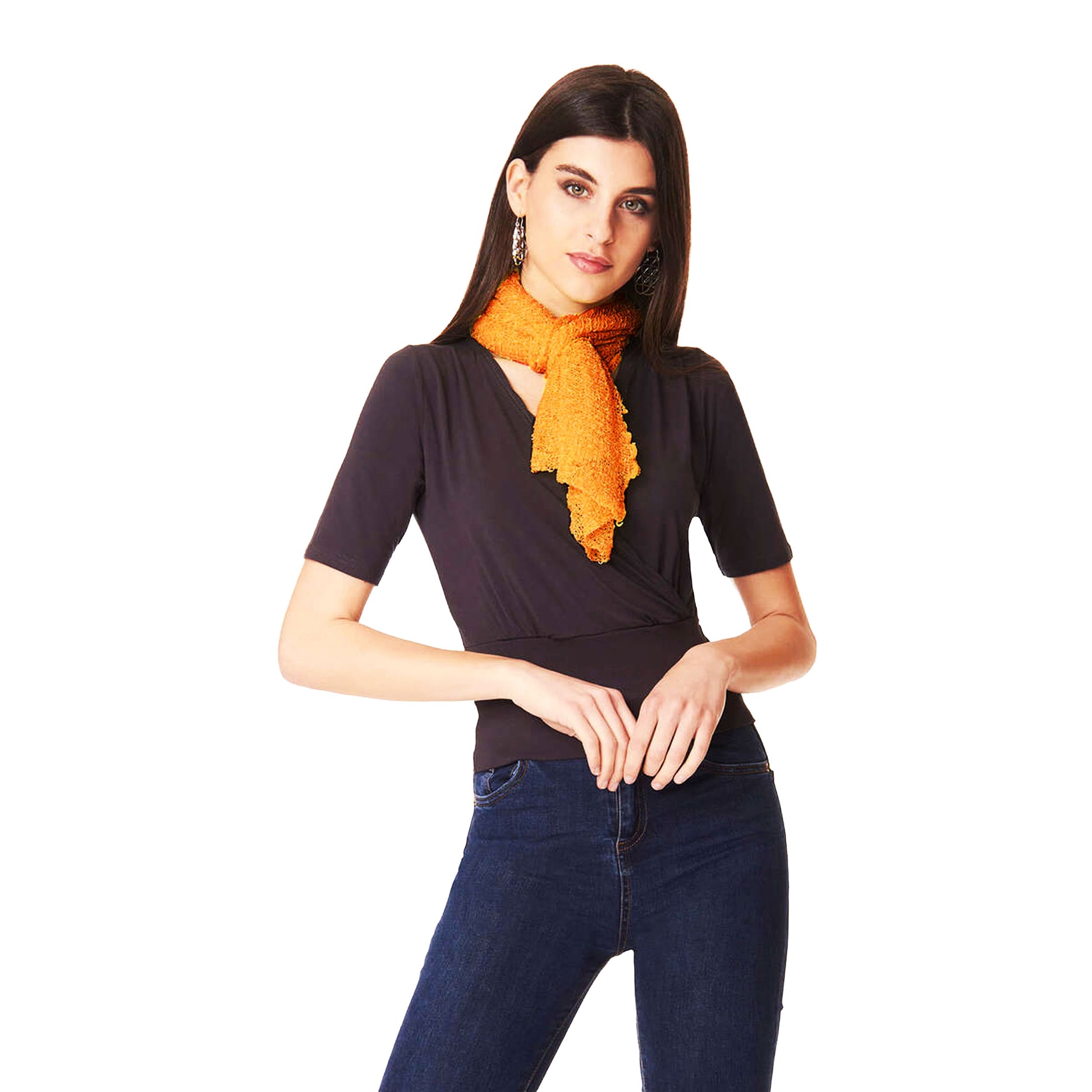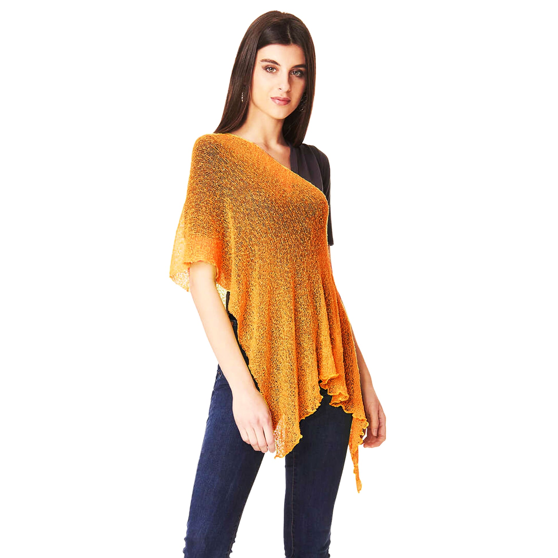 Un capo versatile da indossare aperto, come maxi scialle, annodato dietro come top.