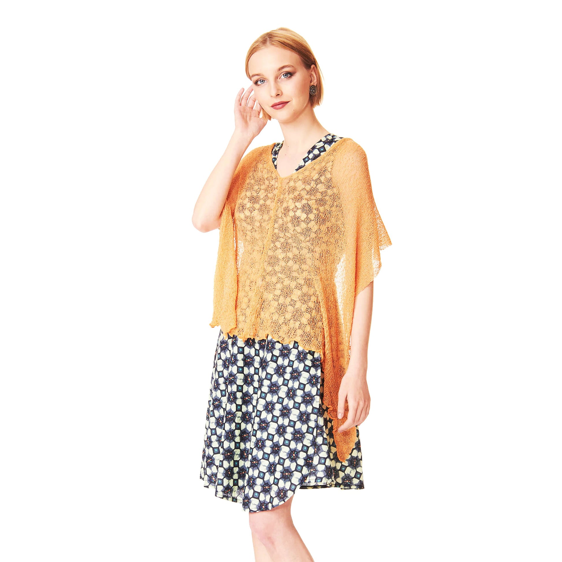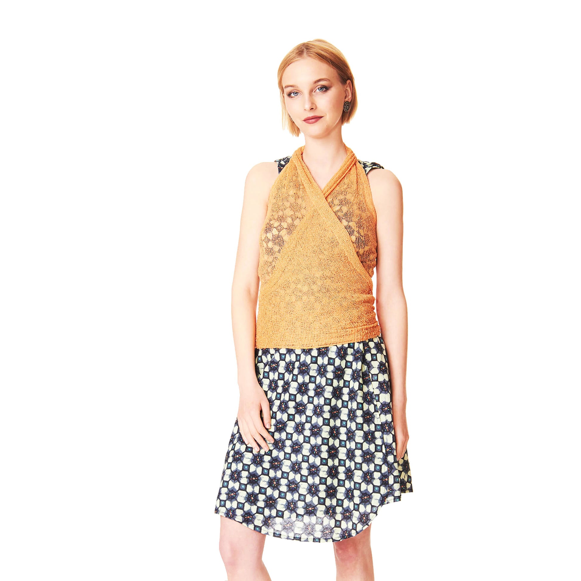 Un capo versatile da indossare aperto, come maxi scialle, annodato dietro come top.