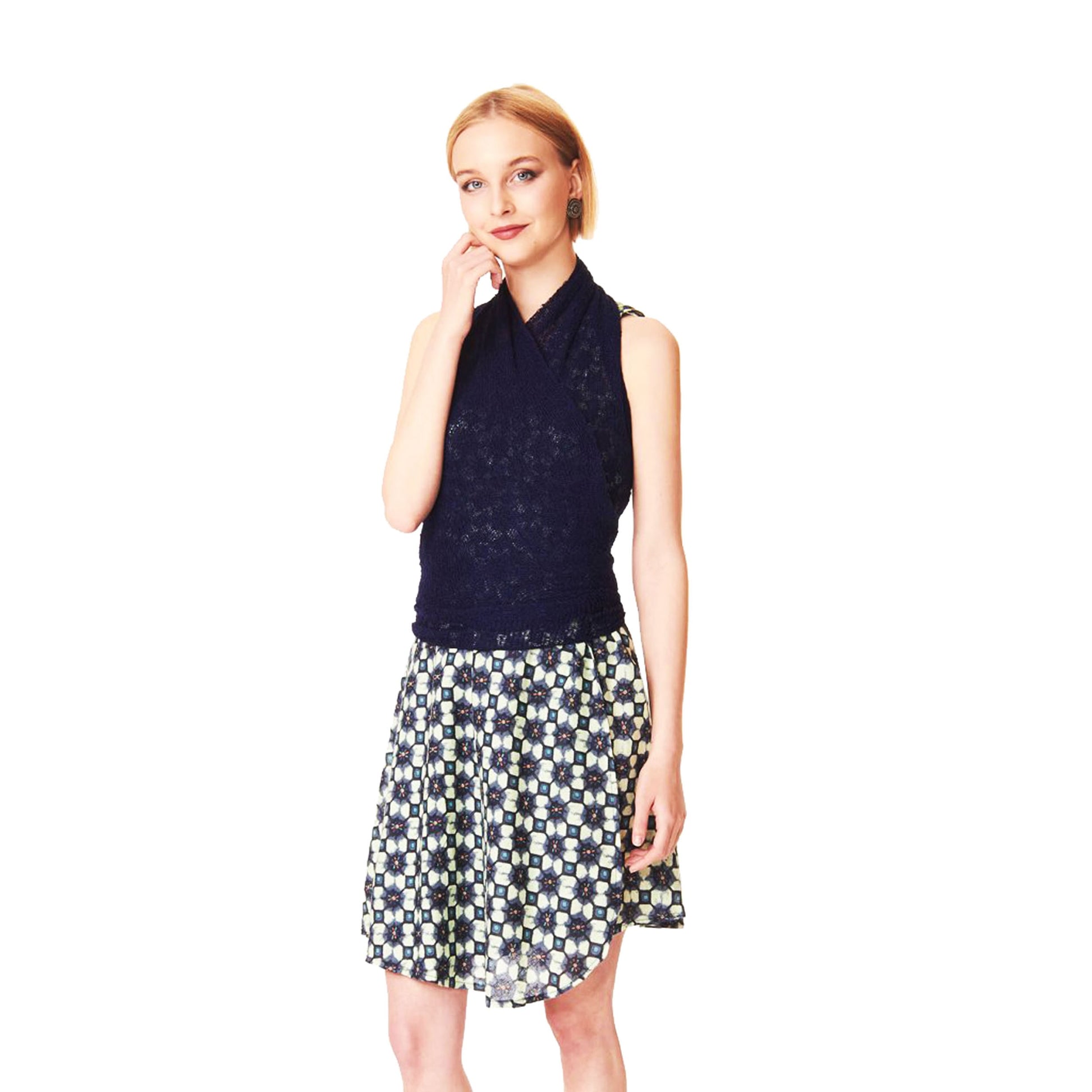 Un capo versatile da indossare aperto, come maxi scialle, annodato dietro come top.