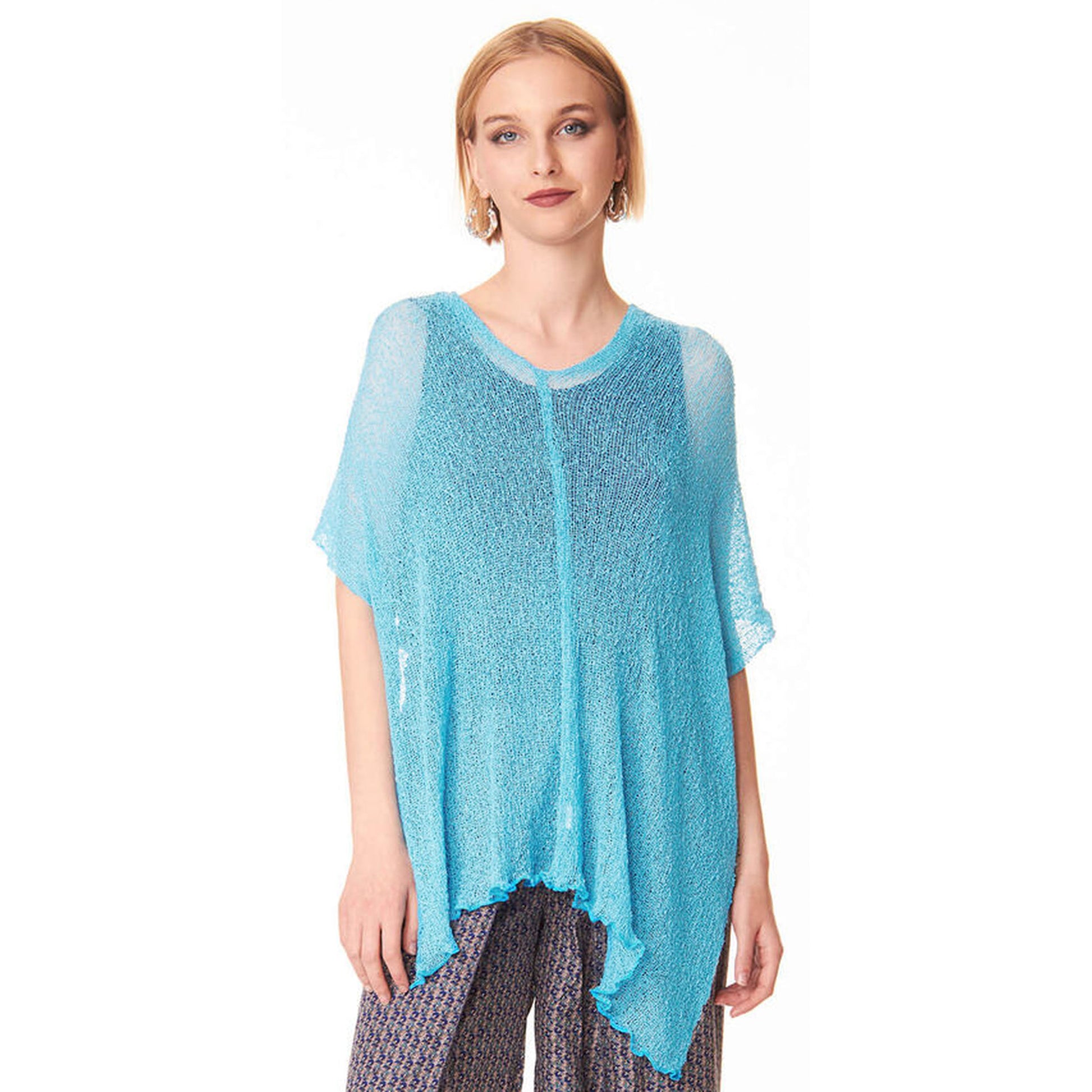 Un capo versatile da indossare aperto, come maxi scialle, annodato dietro come top.