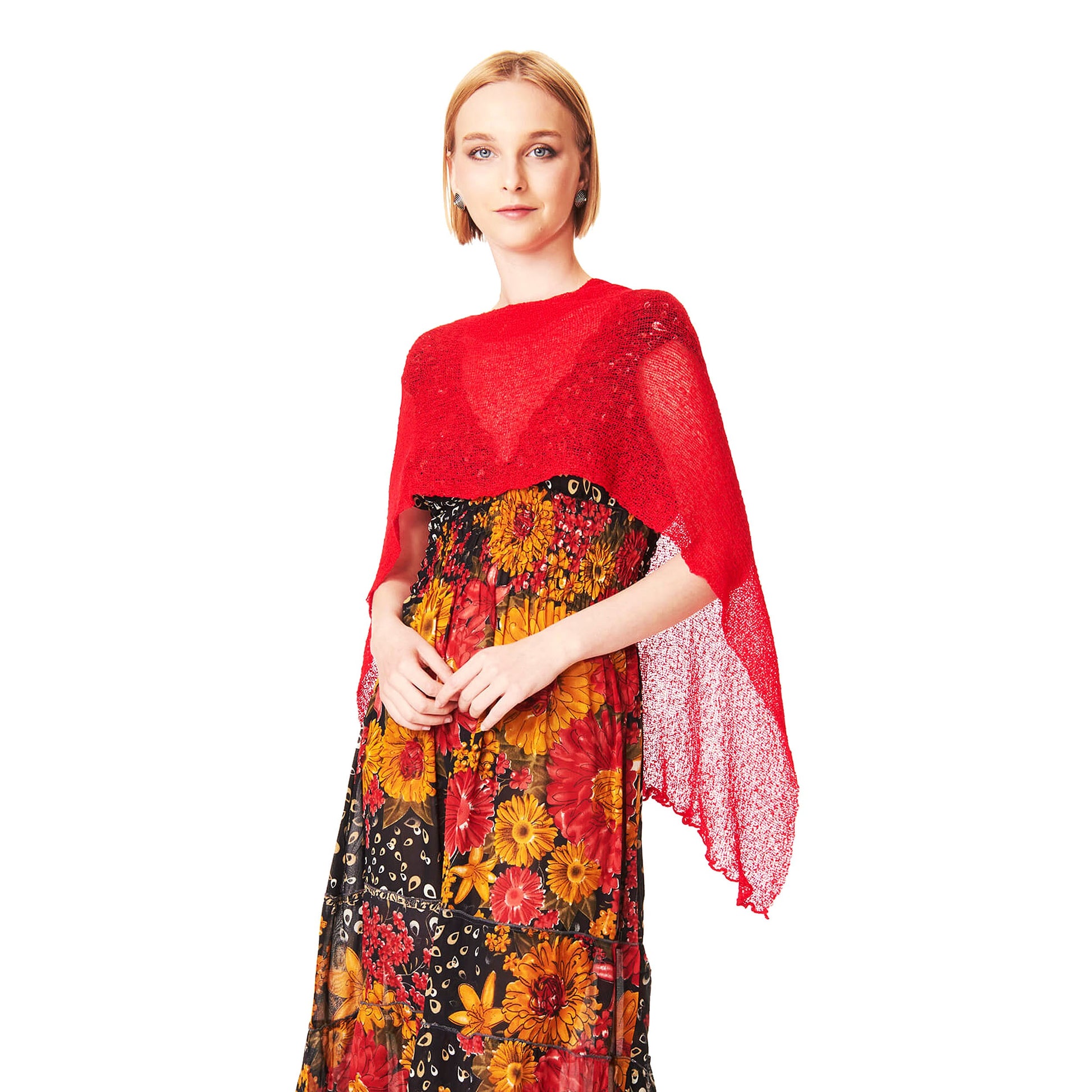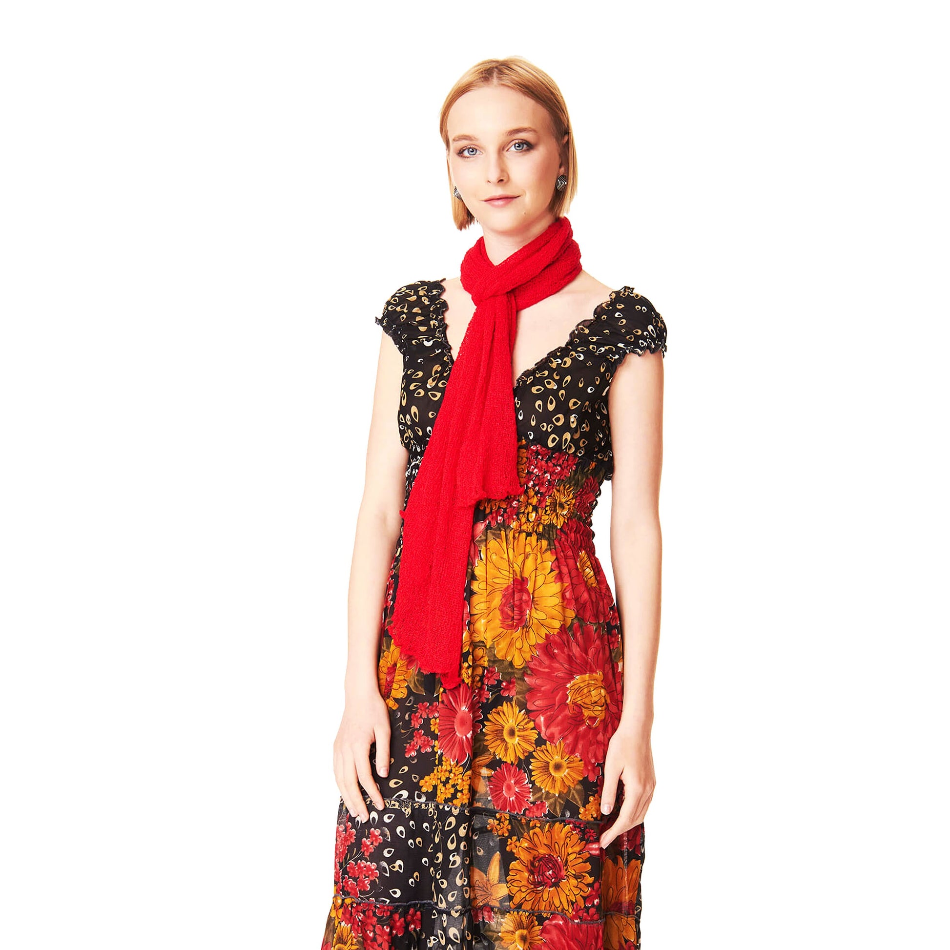 Maxi scialle in tessuto rayon, morbido, semitrasparente dalla texture leggera e retata.