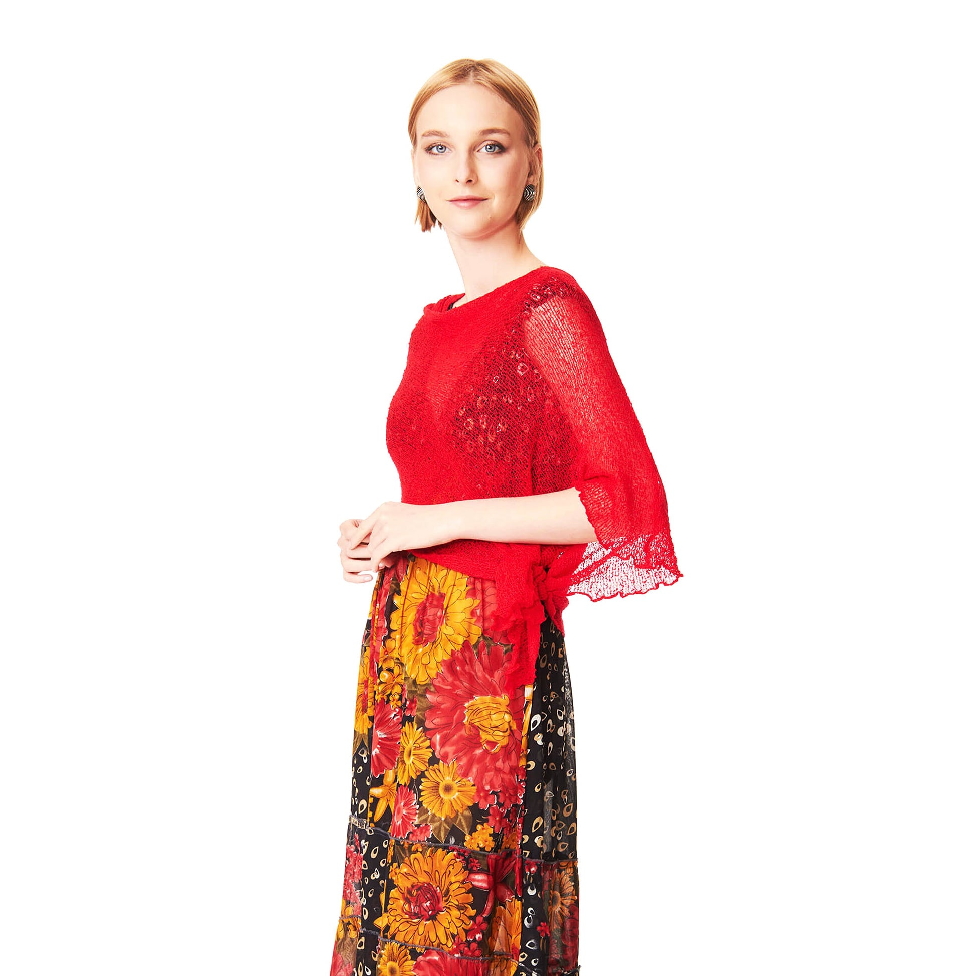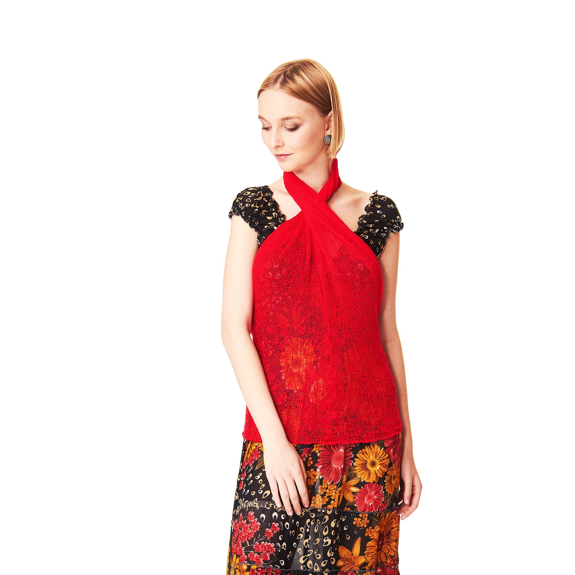 Un capo versatile da indossare aperto, come maxi scialle, annodato dietro come top.