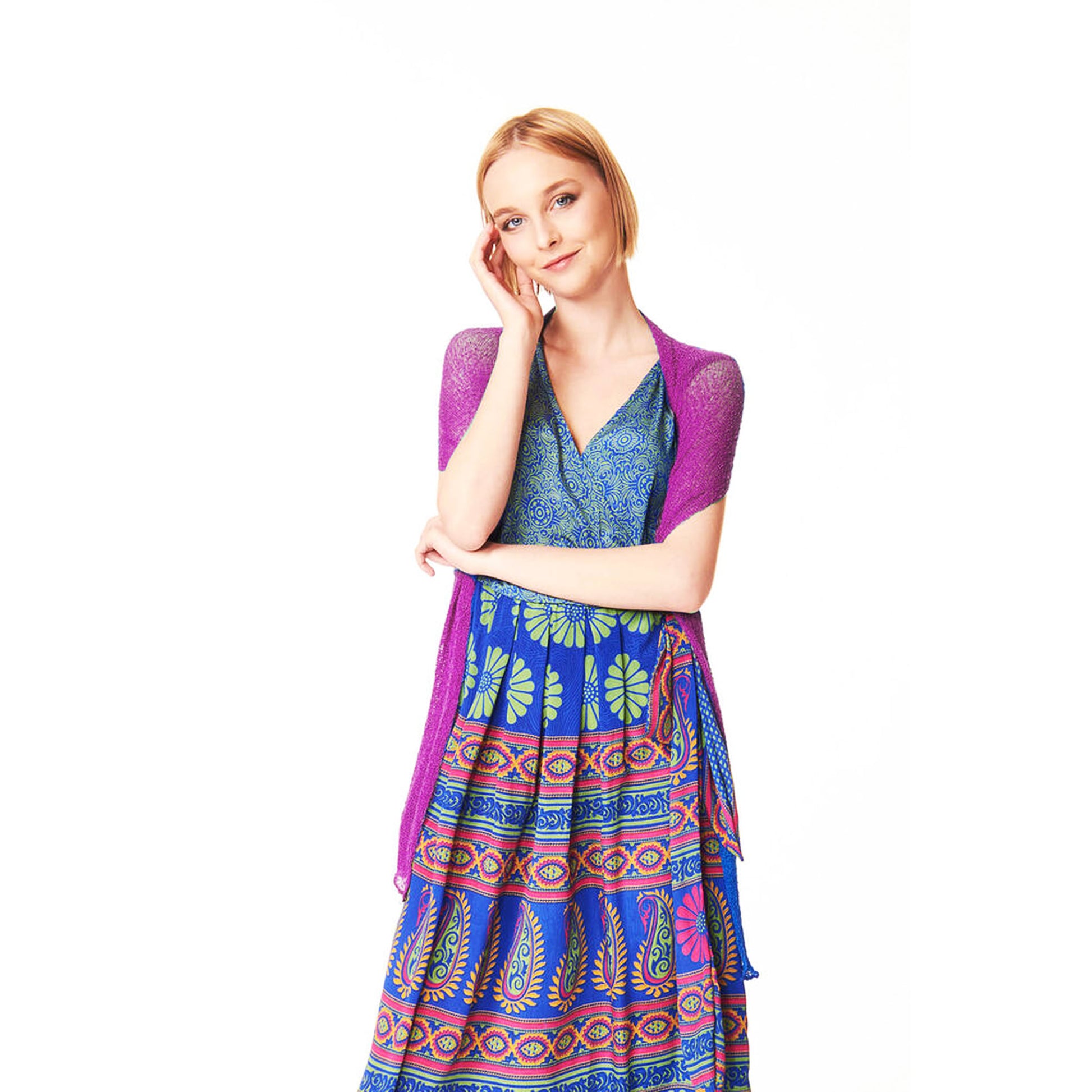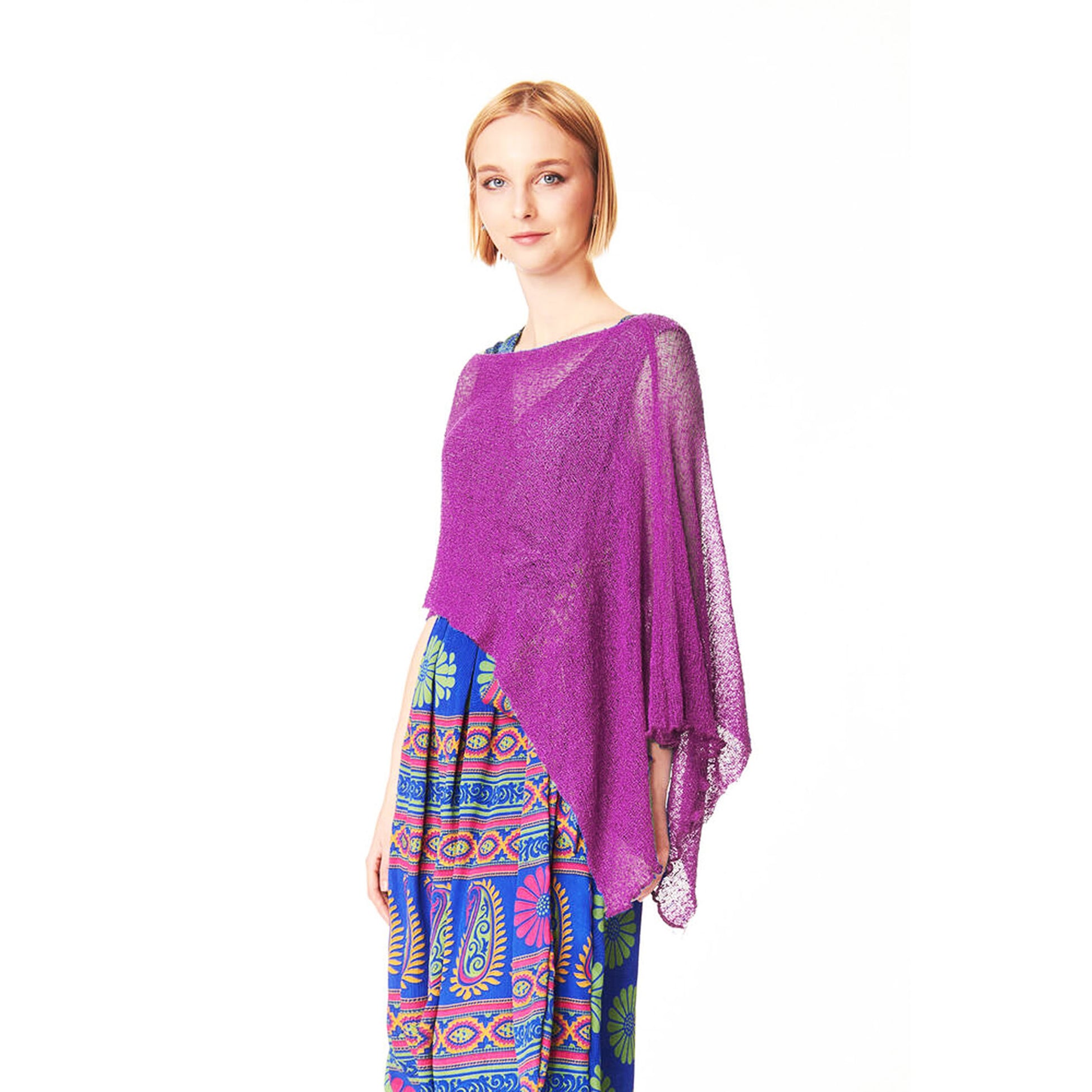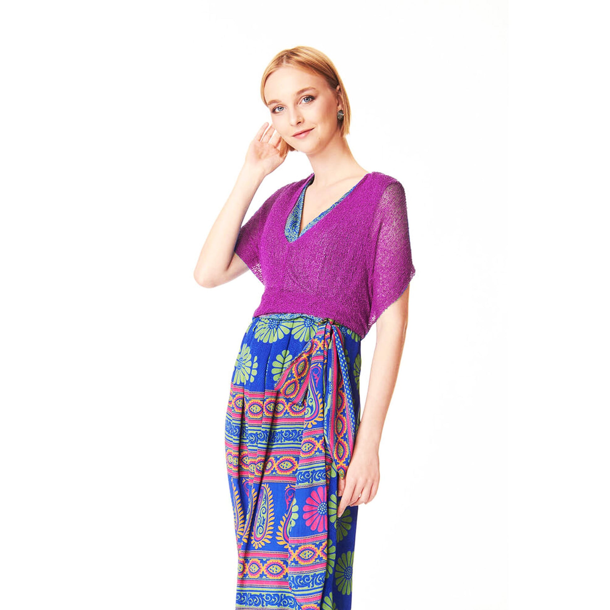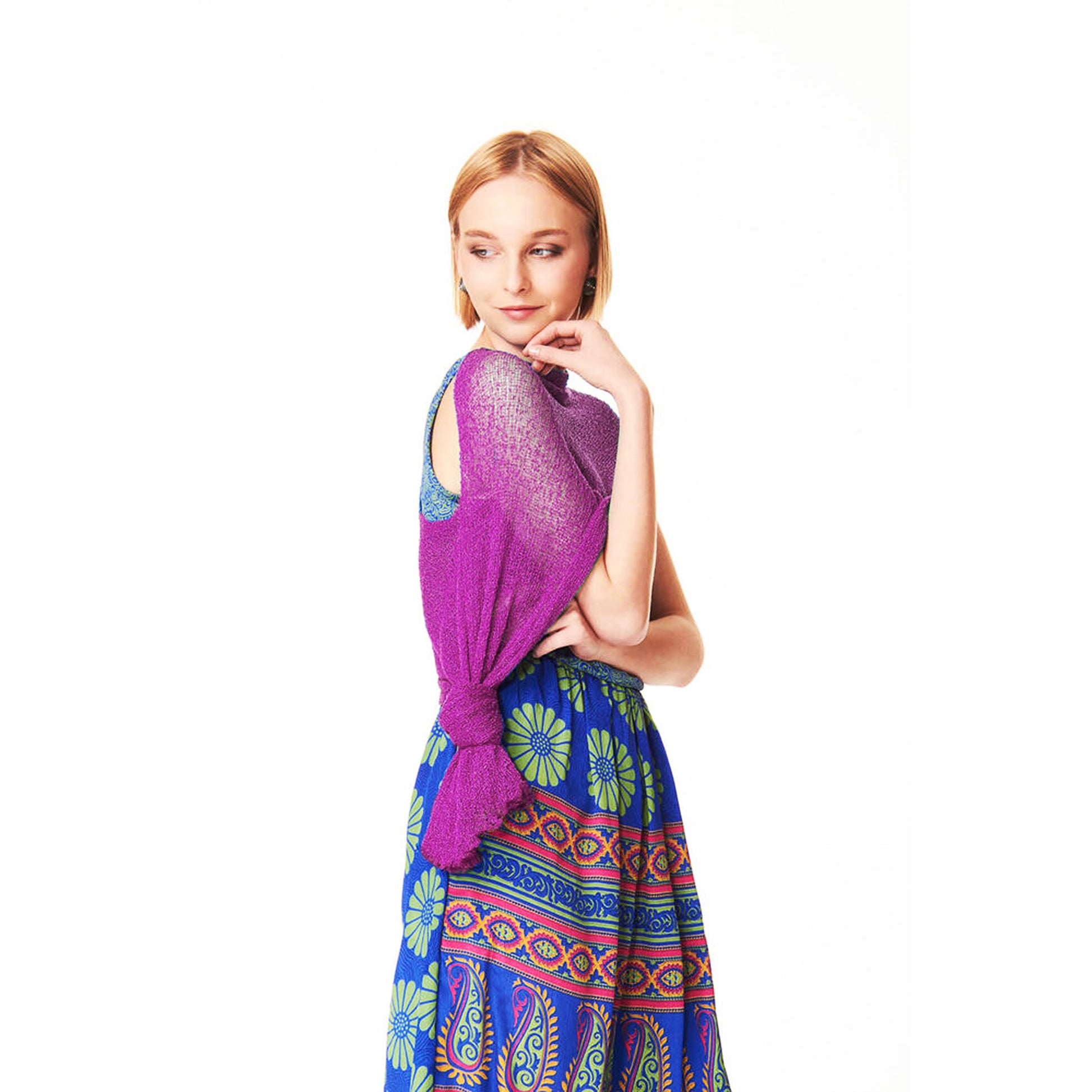 Un capo versatile da indossare aperto, come maxi scialle, annodato dietro come top.