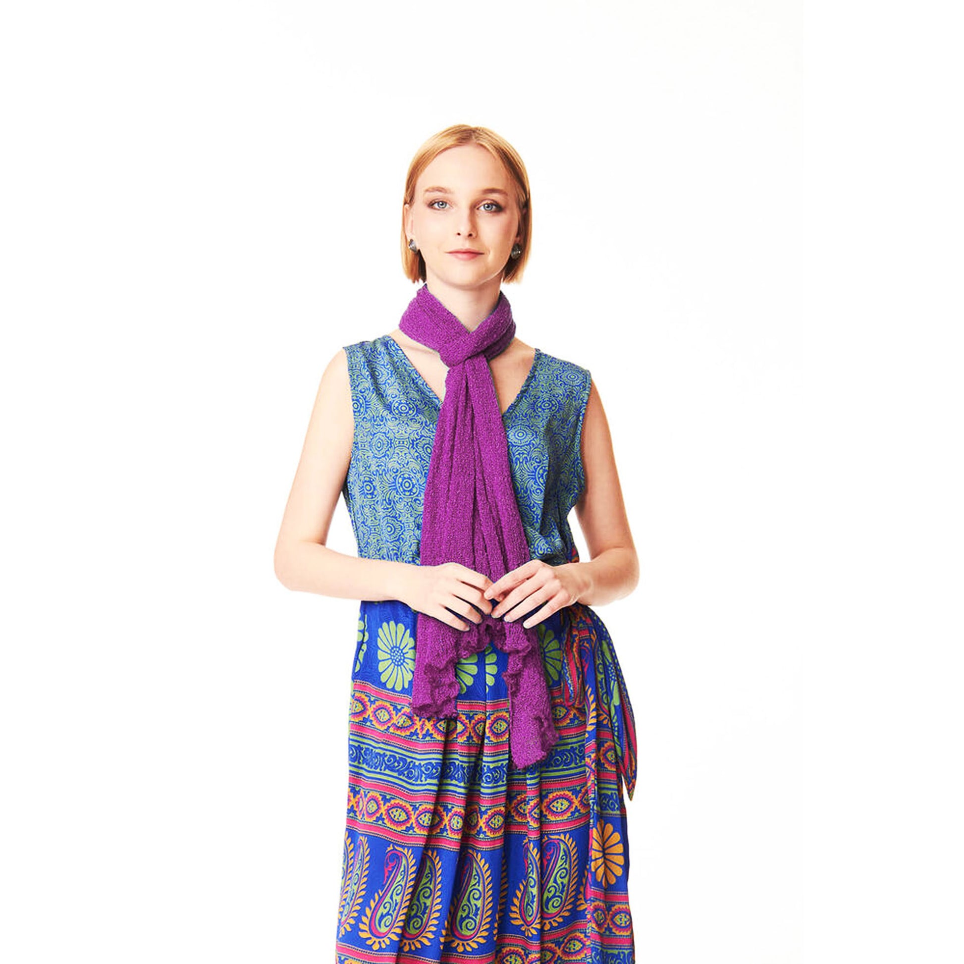 Maxi scialle in tessuto rayon, morbido, semitrasparente dalla texture leggera e retata.