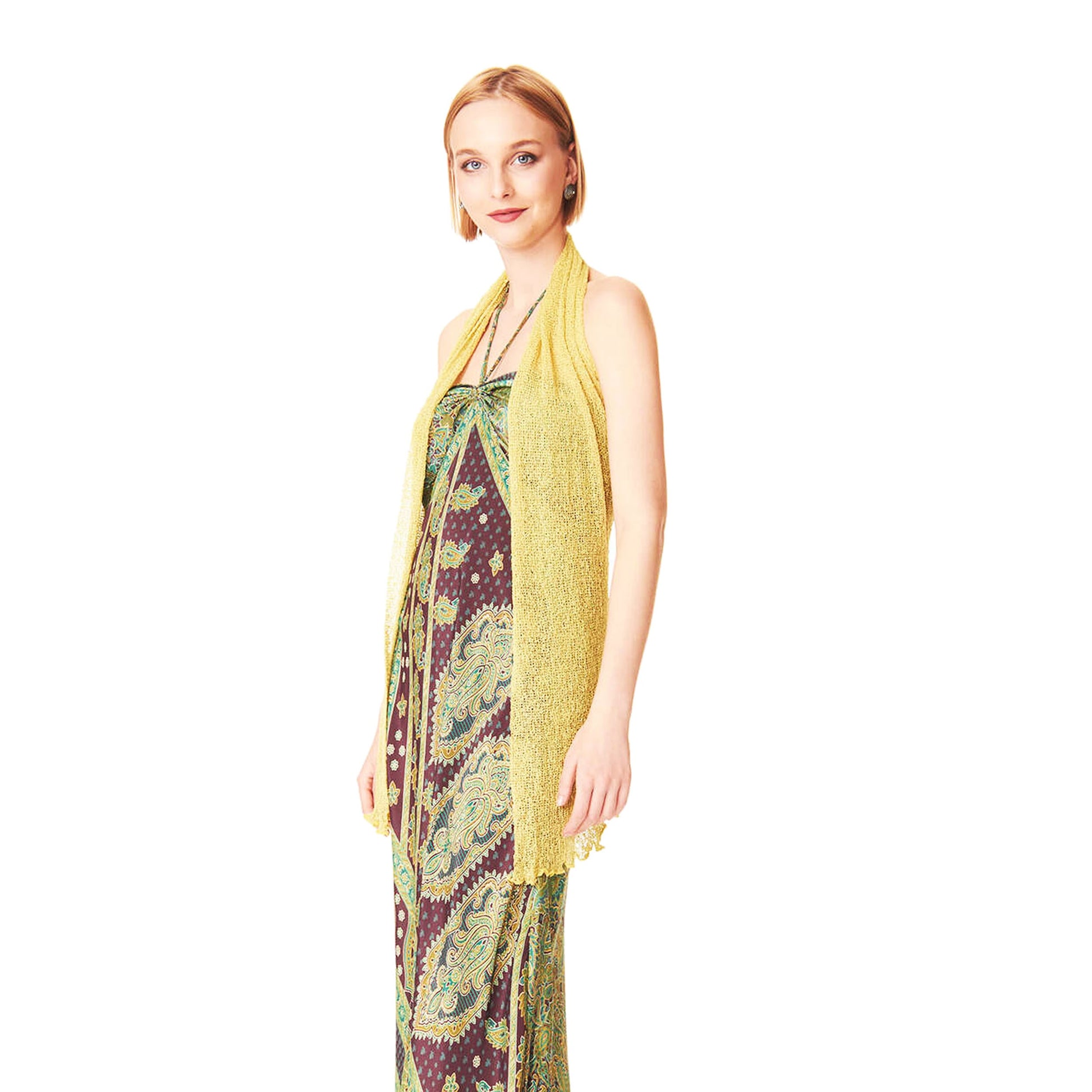 Maxi scialle in tessuto rayon, morbido, semitrasparente dalla texture leggera e retata.