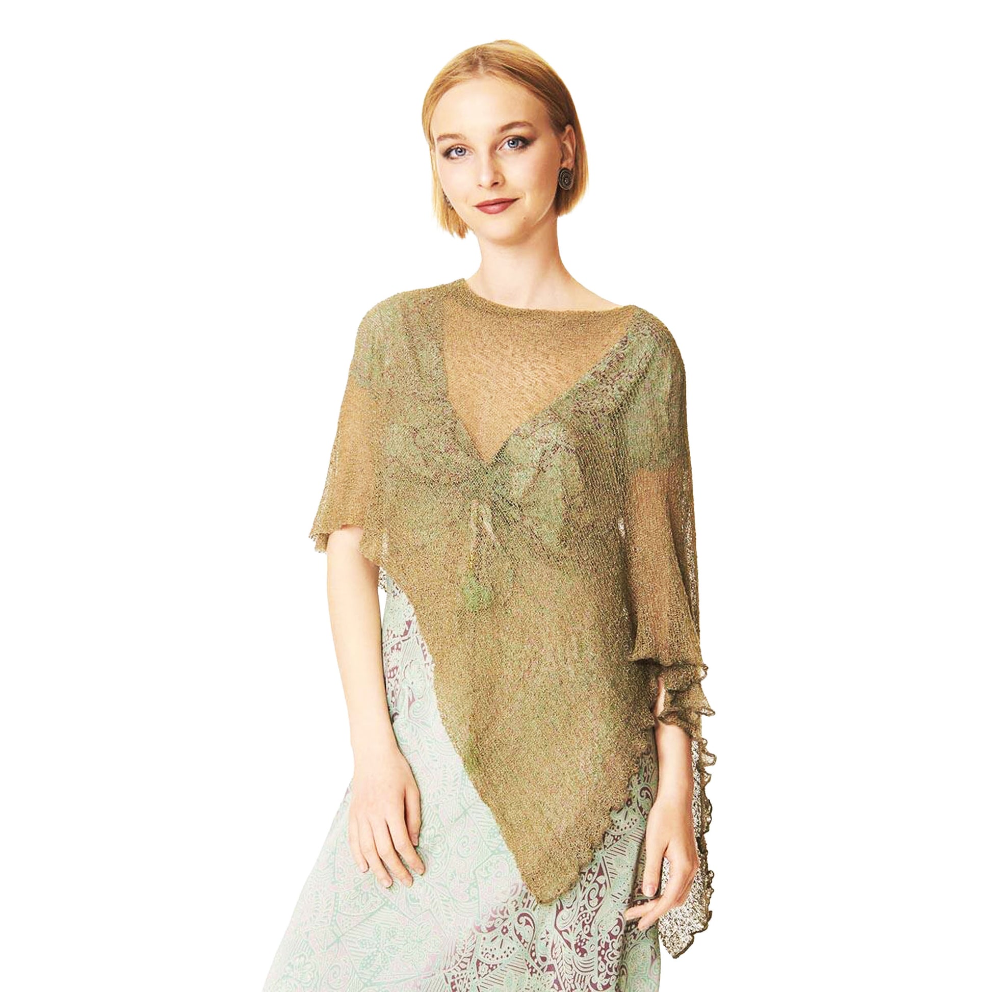 Maxi scialle in tessuto rayon con inserti lurex argento. Morbido, semitrasparente, e dalla texture leggera e retata.