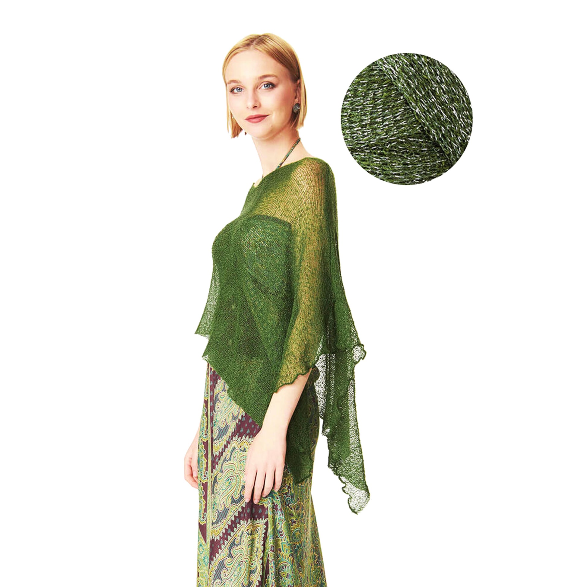 Maxi scialle in tessuto rayon con inserti lurex argento. Morbido, semitrasparente, e dalla texture leggera e retata.