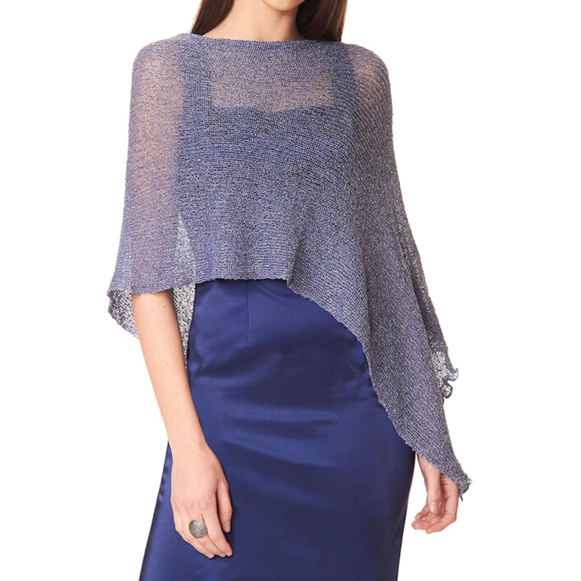 Maxi scialle in tessuto rayon con inserti lurex argento. Morbido, semitrasparente, e dalla texture leggera e retata.
