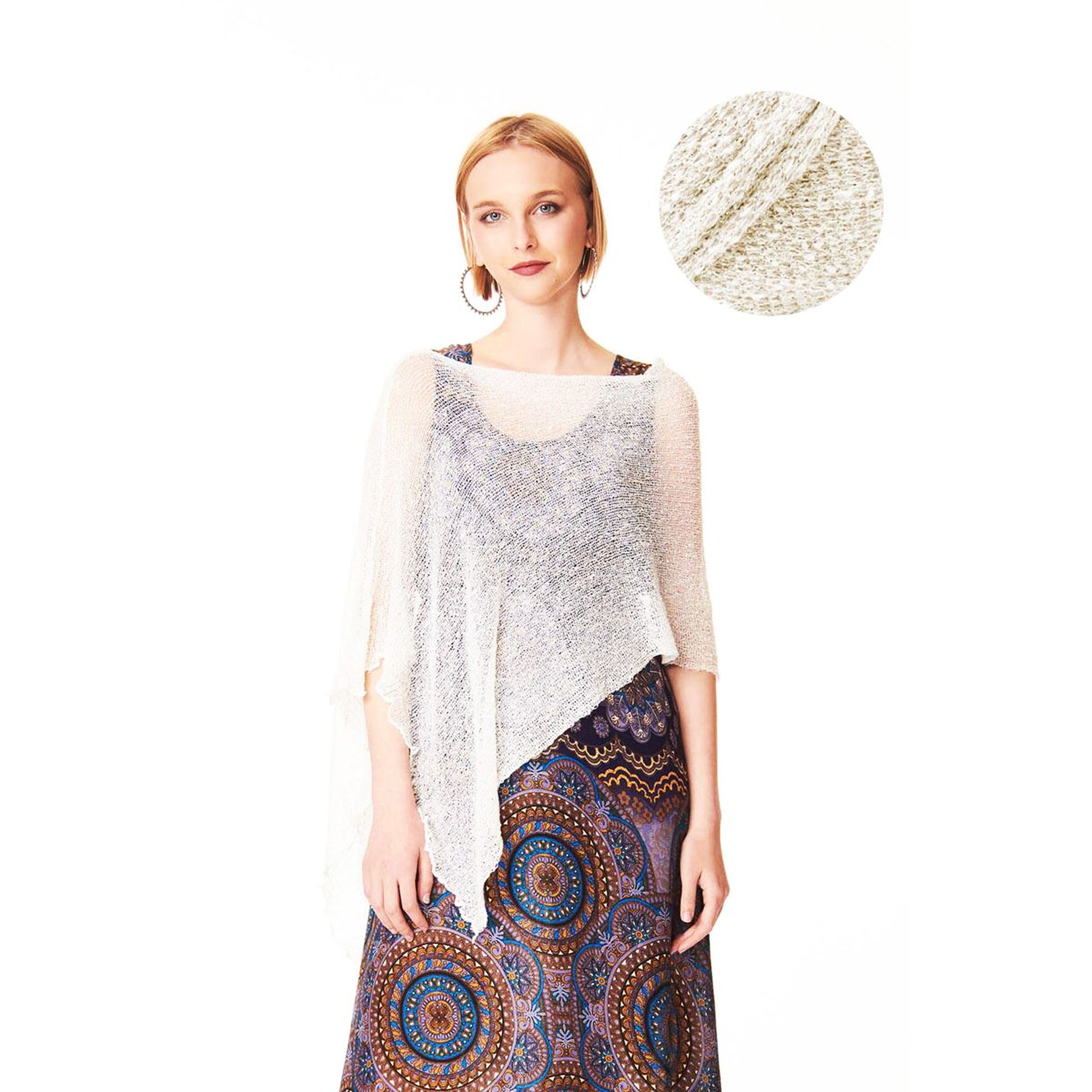Maxi scialle in tessuto rayon con inserti lurex argento. Morbido, semitrasparente, e dalla texture leggera e retata.