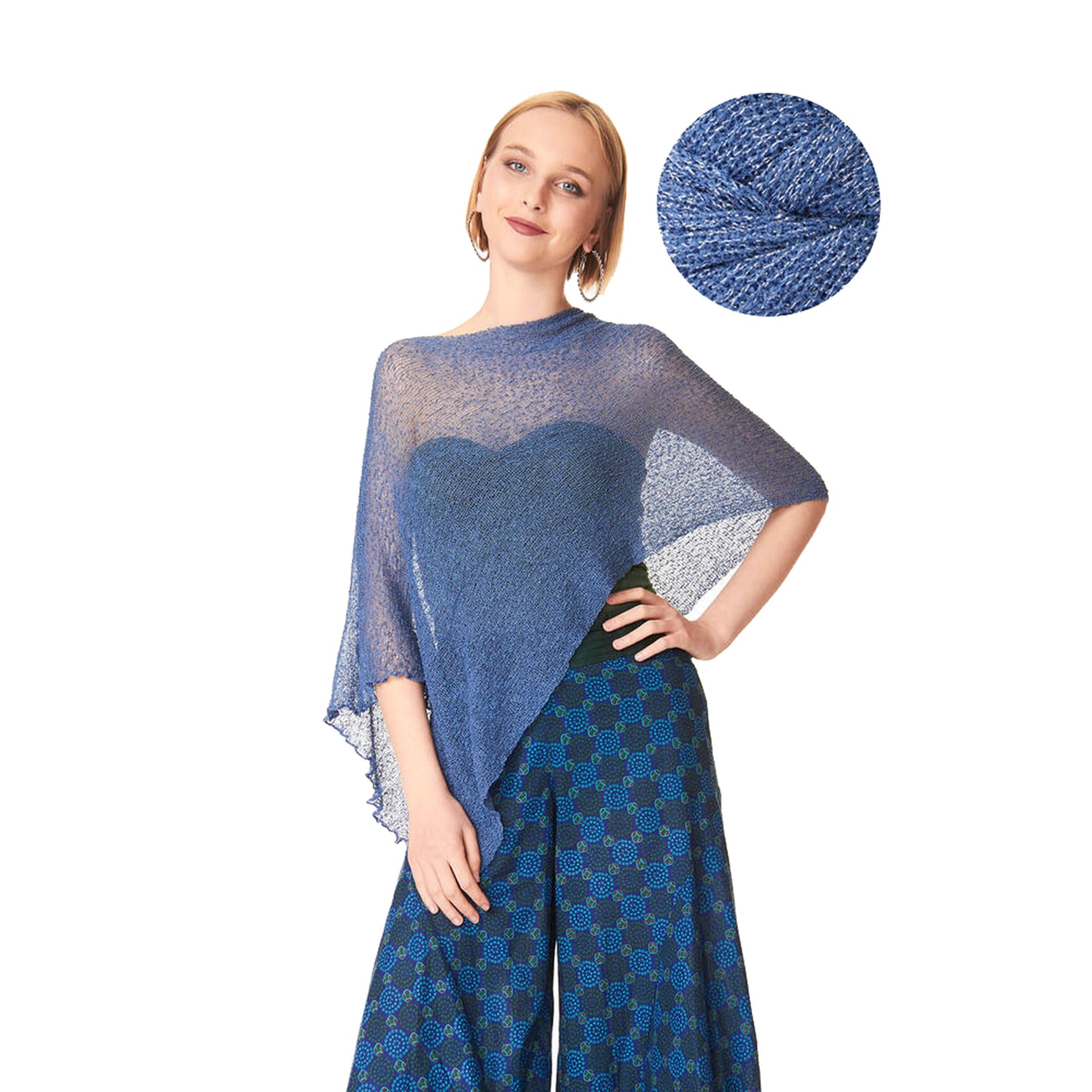 Un capo versatile da indossare aperto, come maxi scialle, annodato dietro come top.
