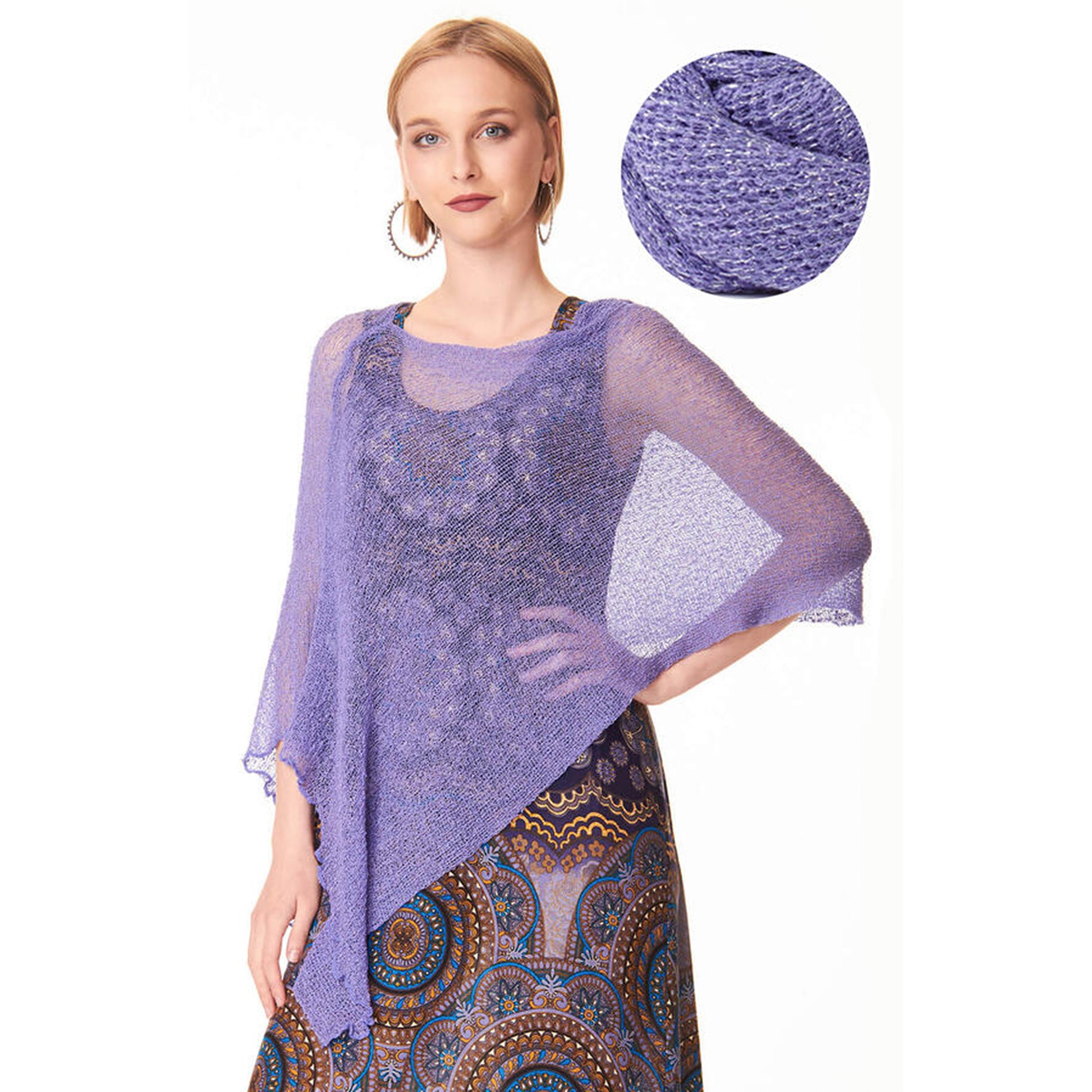 Maxi scialle in tessuto rayon con inserti lurex argento. Morbido, semitrasparente, e dalla texture leggera e retata.