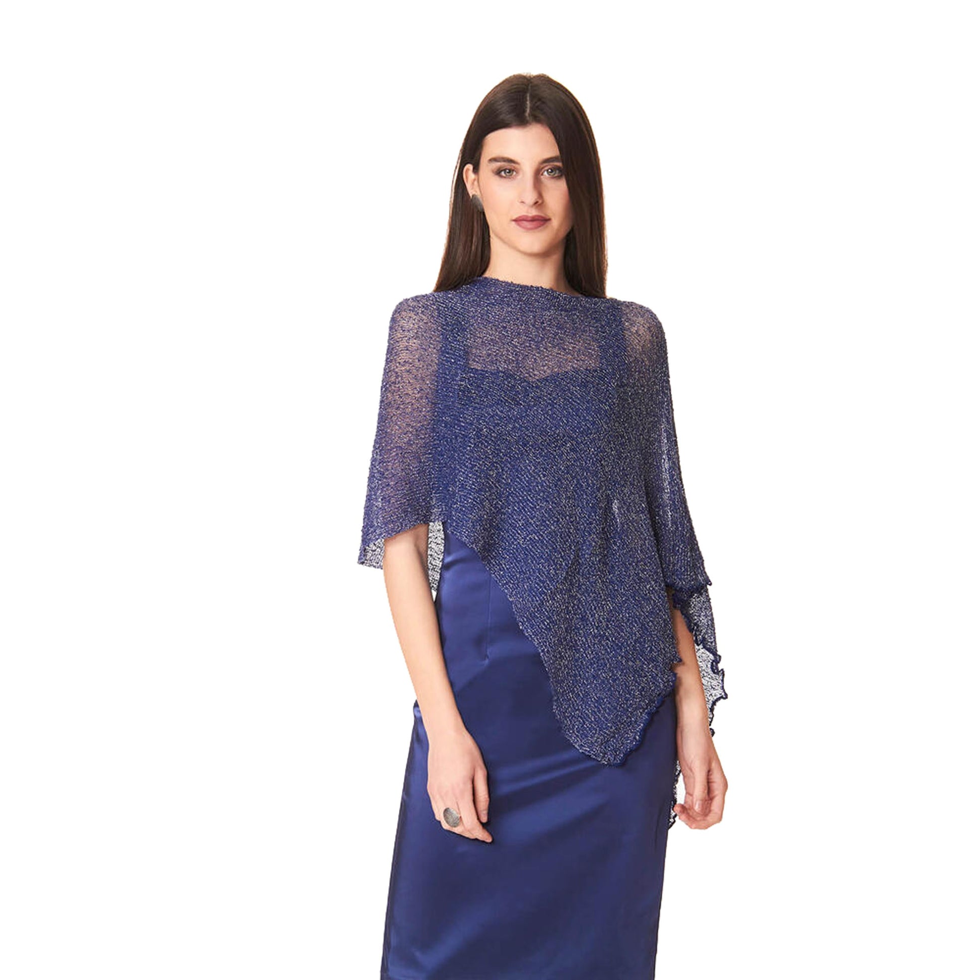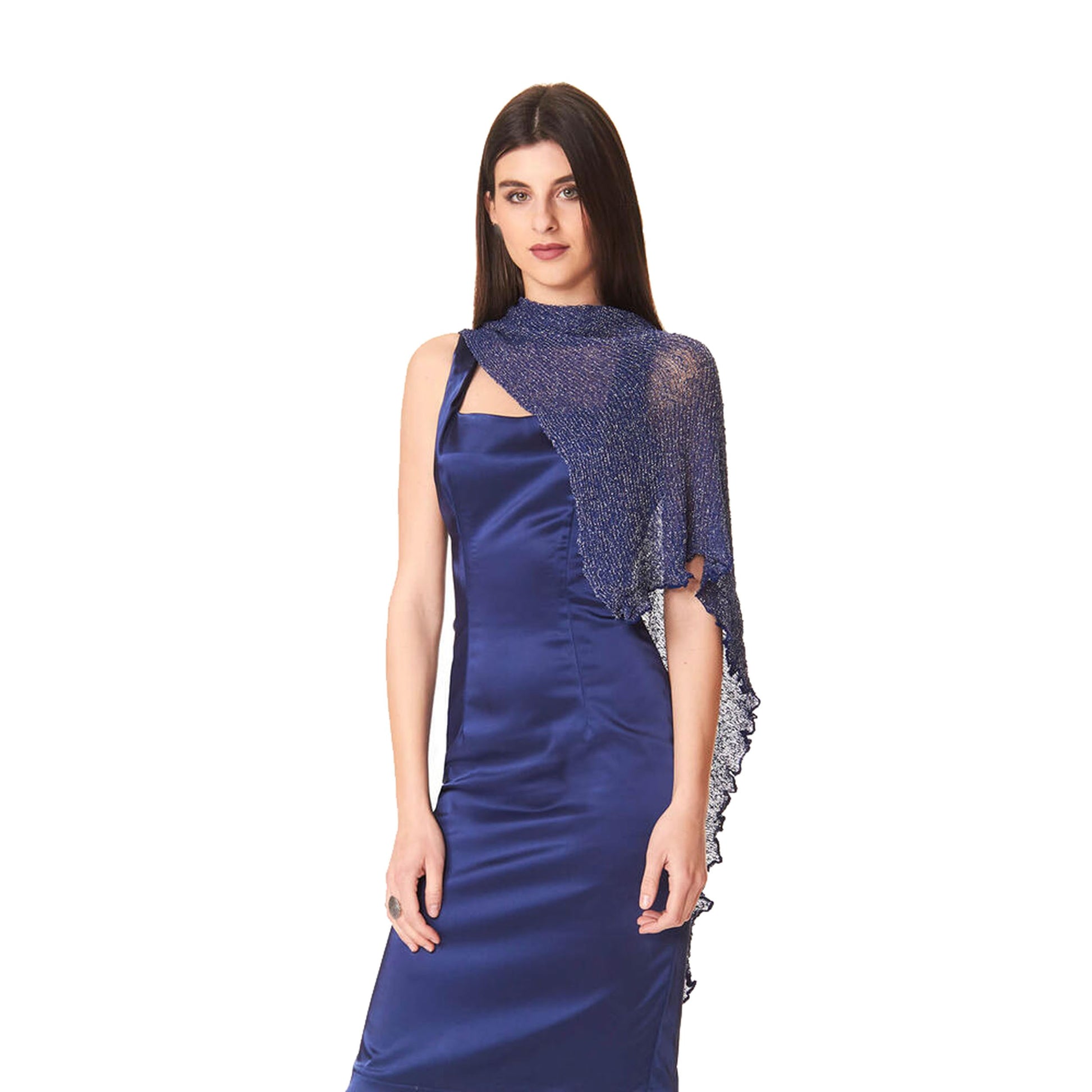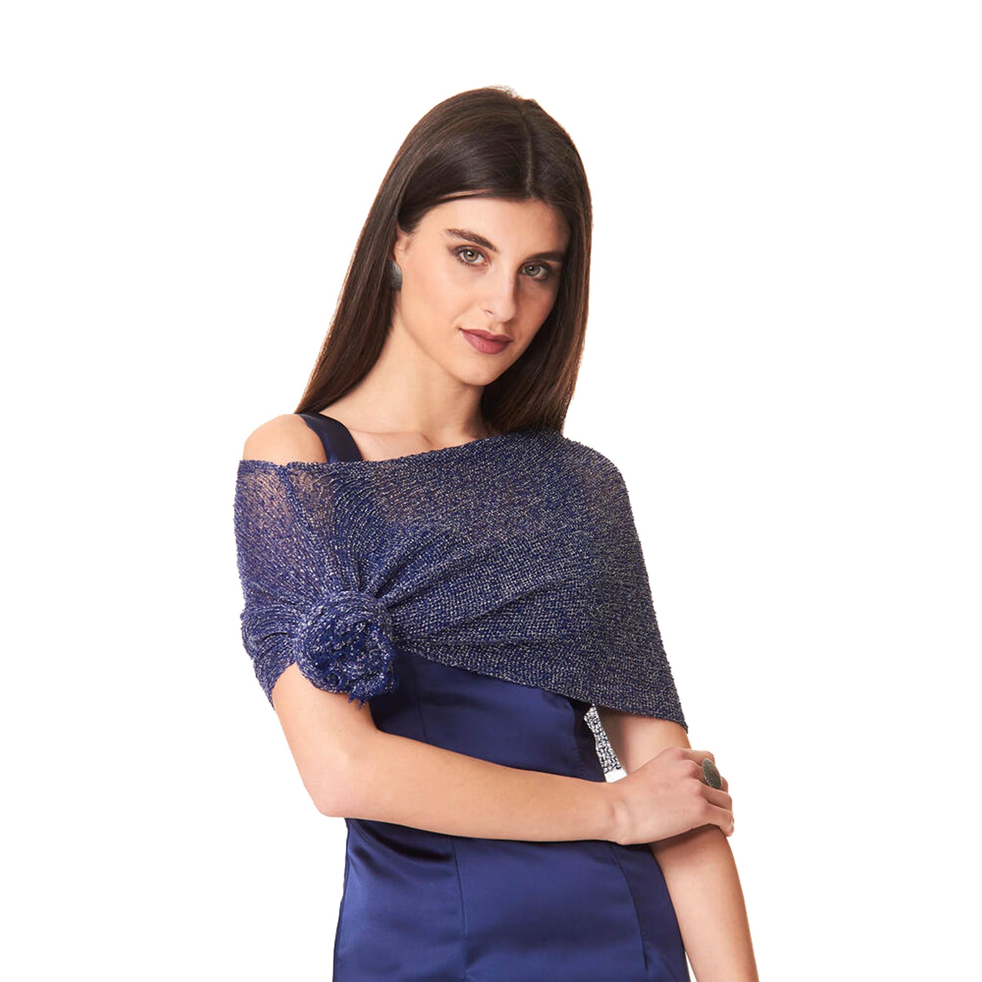 Maxi scialle in tessuto rayon con inserti lurex argento. Morbido, semitrasparente, e dalla texture leggera e retata.