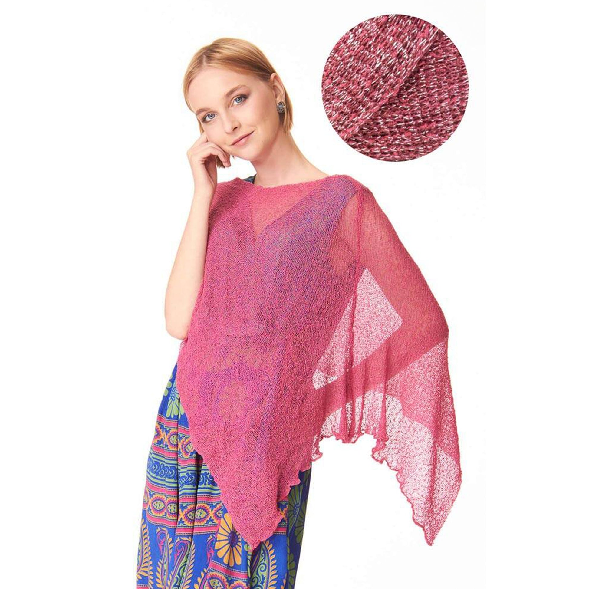 Maxi scialle in tessuto rayon con inserti lurex argento. Morbido, semitrasparente, e dalla texture leggera e retata.