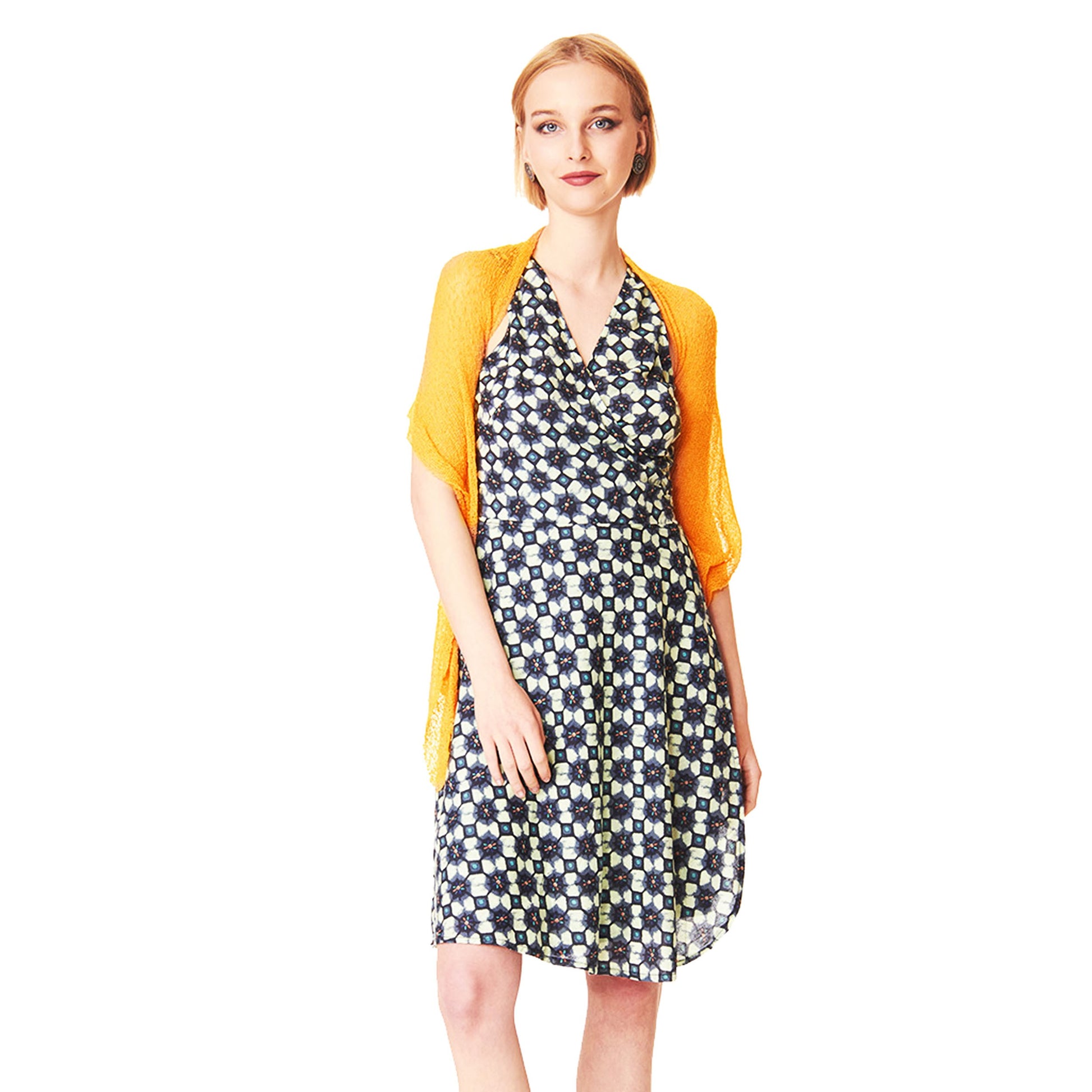 Un capo versatile da indossare aperto, come maxi scialle, annodato dietro come top.