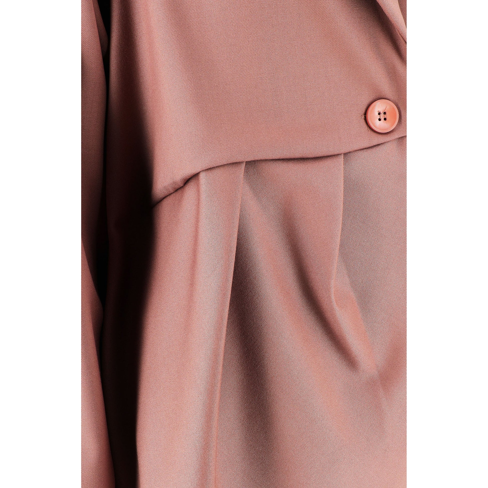 Giacca in morbido tessuto, dal modello ampio, con maniche lunghe e scollo reverse dentellato. Lato destro con pences. Chiusura con bottone centrale e parte davanti dal taglio tondo. Composizione: 64% viscosa, 33% poliammidica, 3% elastan. Provenienza: Italia. Lavaggio a 30°.
